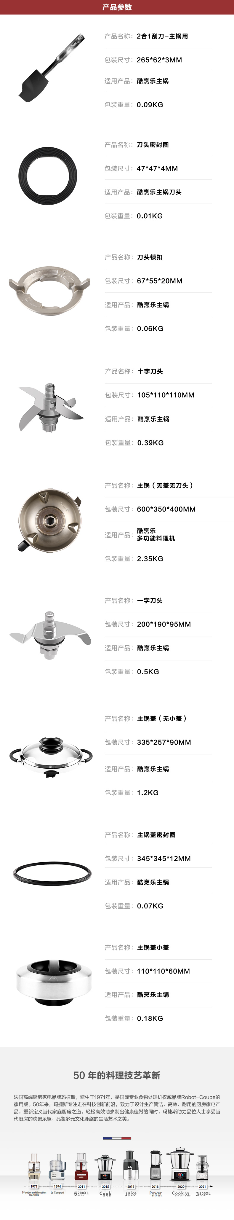 酷烹乐配件-主锅盖(无小盖)、主锅(无盖无刀头)、刀头锁扣、主锅盖小盖、刀头密封圈、十字刀头、一字刀头、2合1刮刀-主锅用、主锅盖密封圈