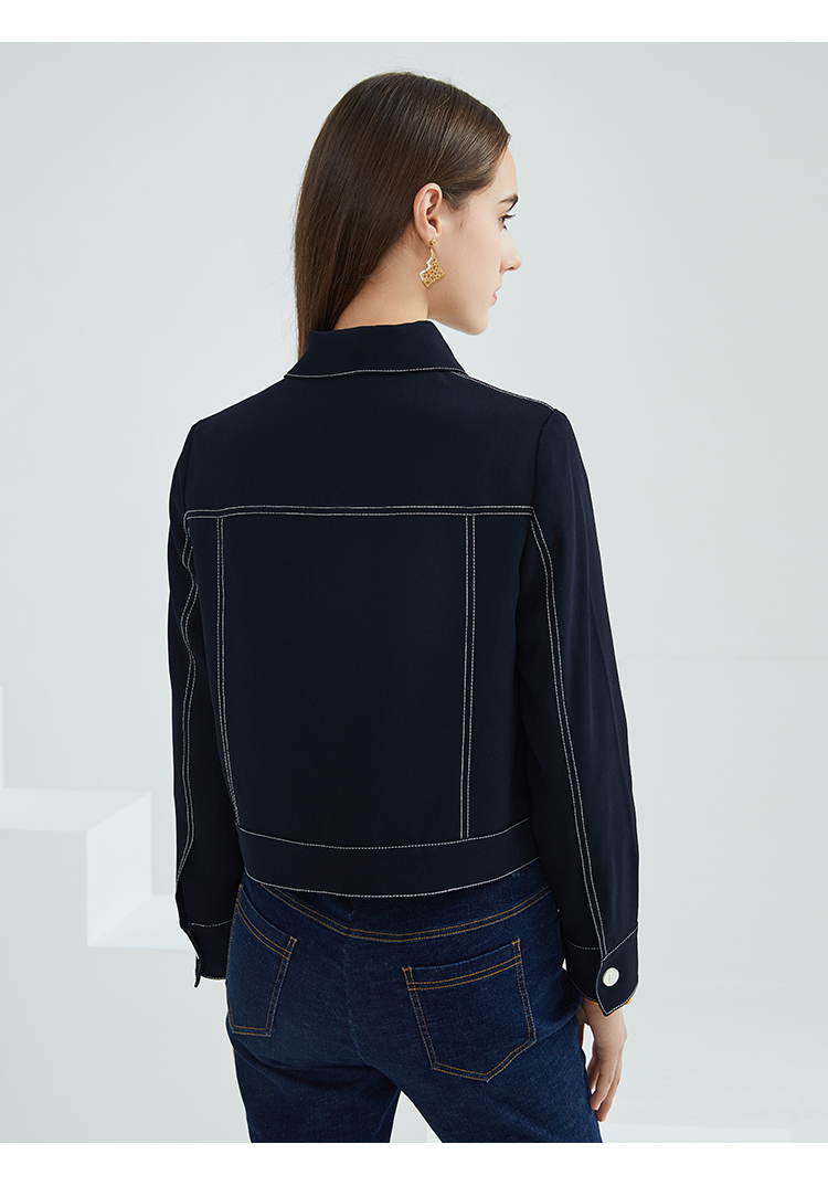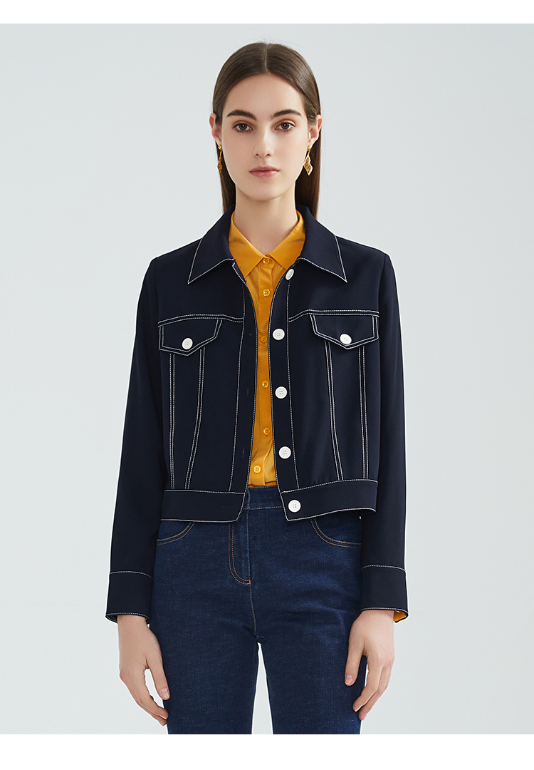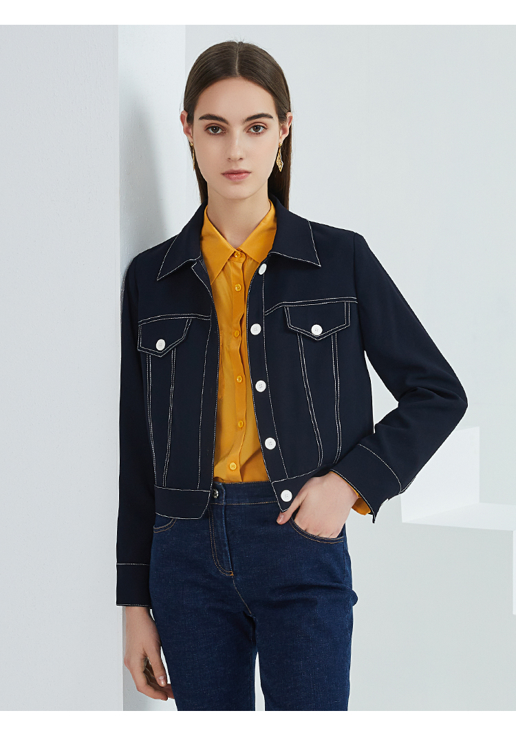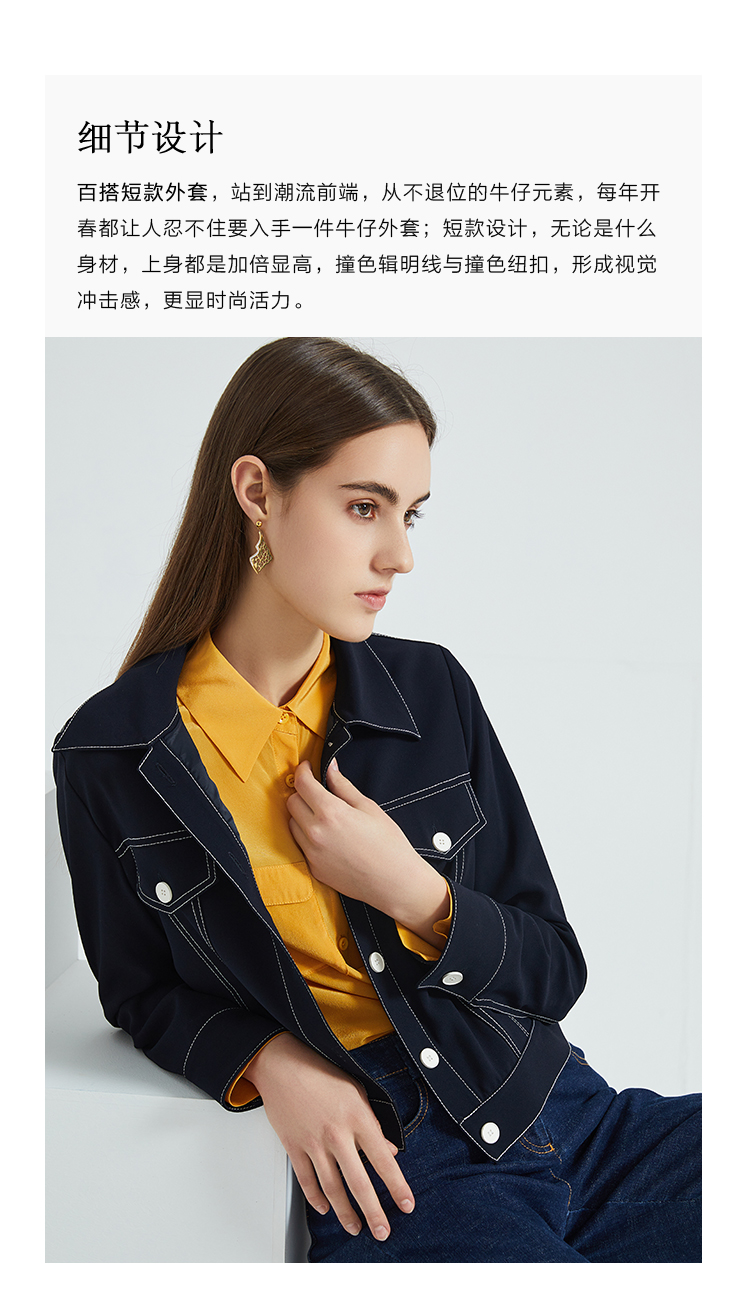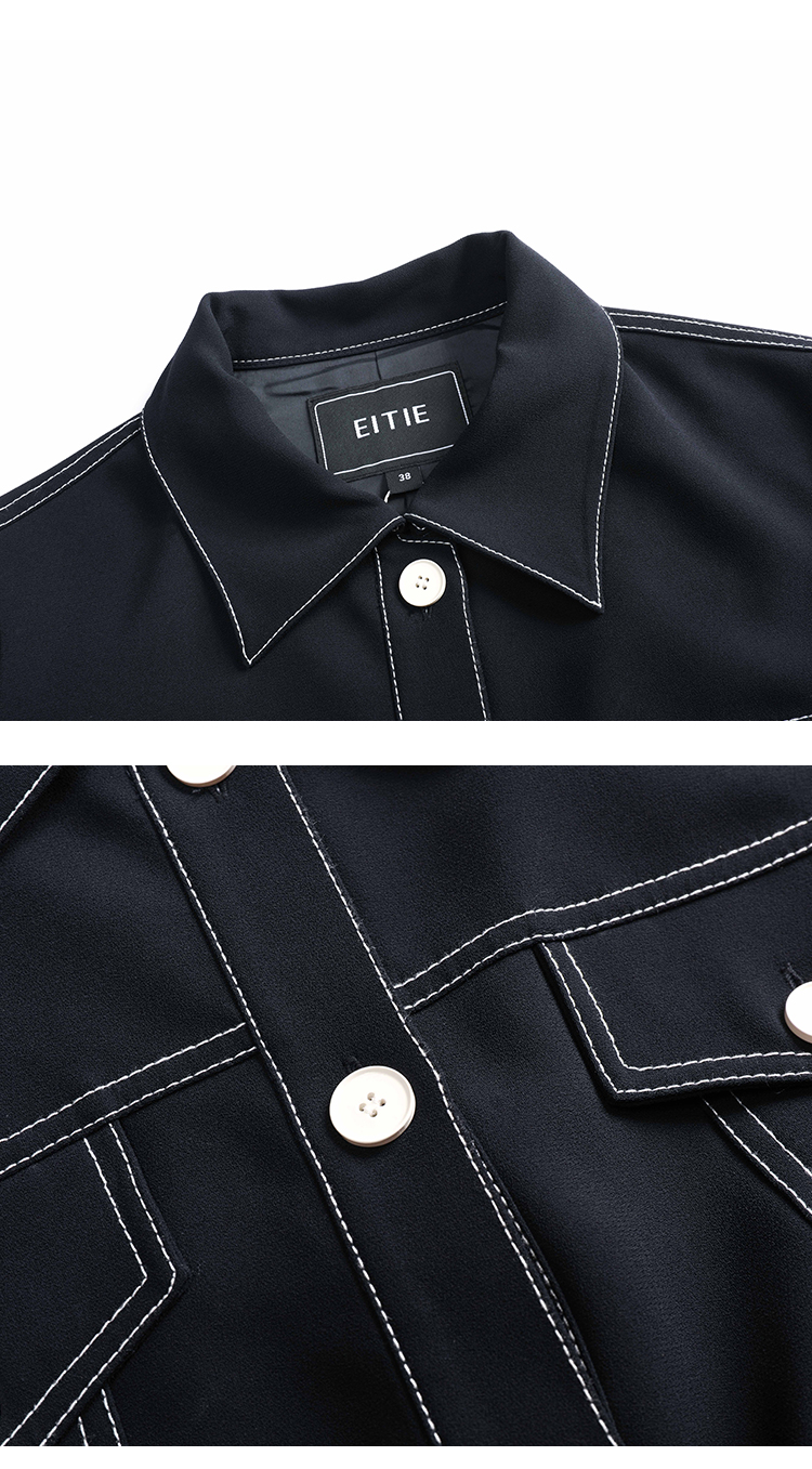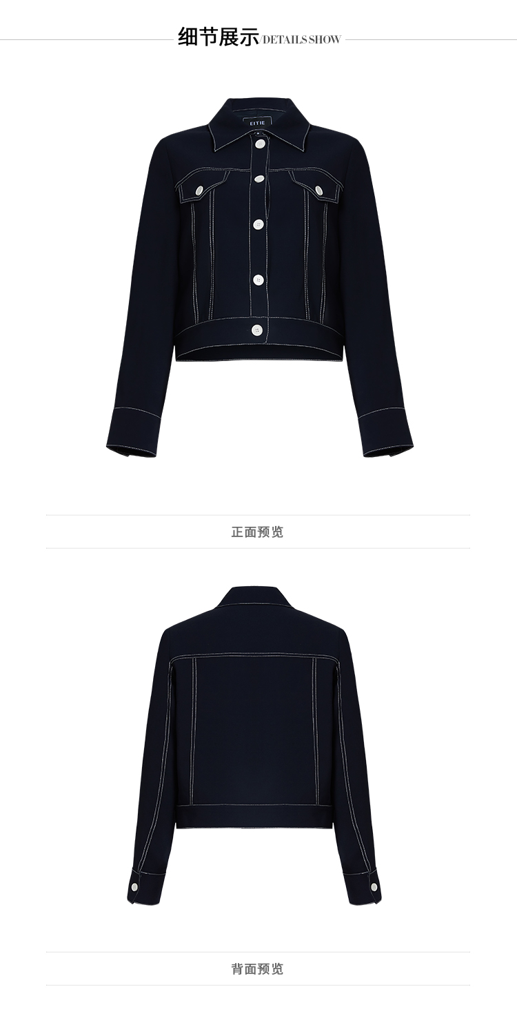 EITIE爱特爱春季新款洋气时尚简约撞色线条单排扣夹克短外套6303002