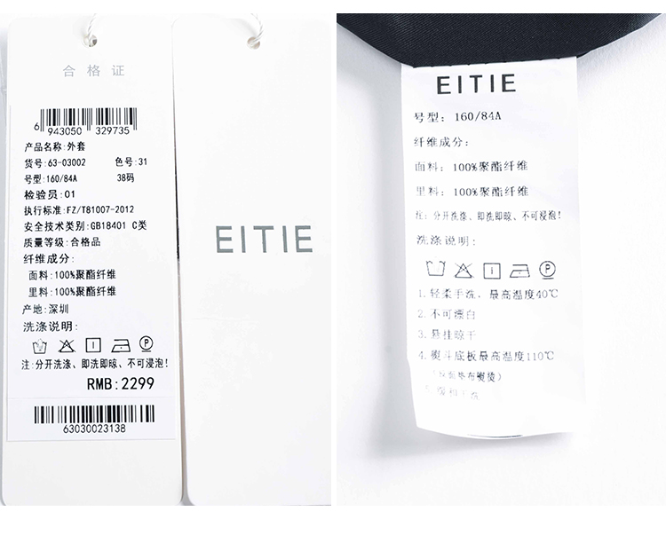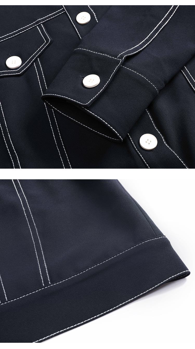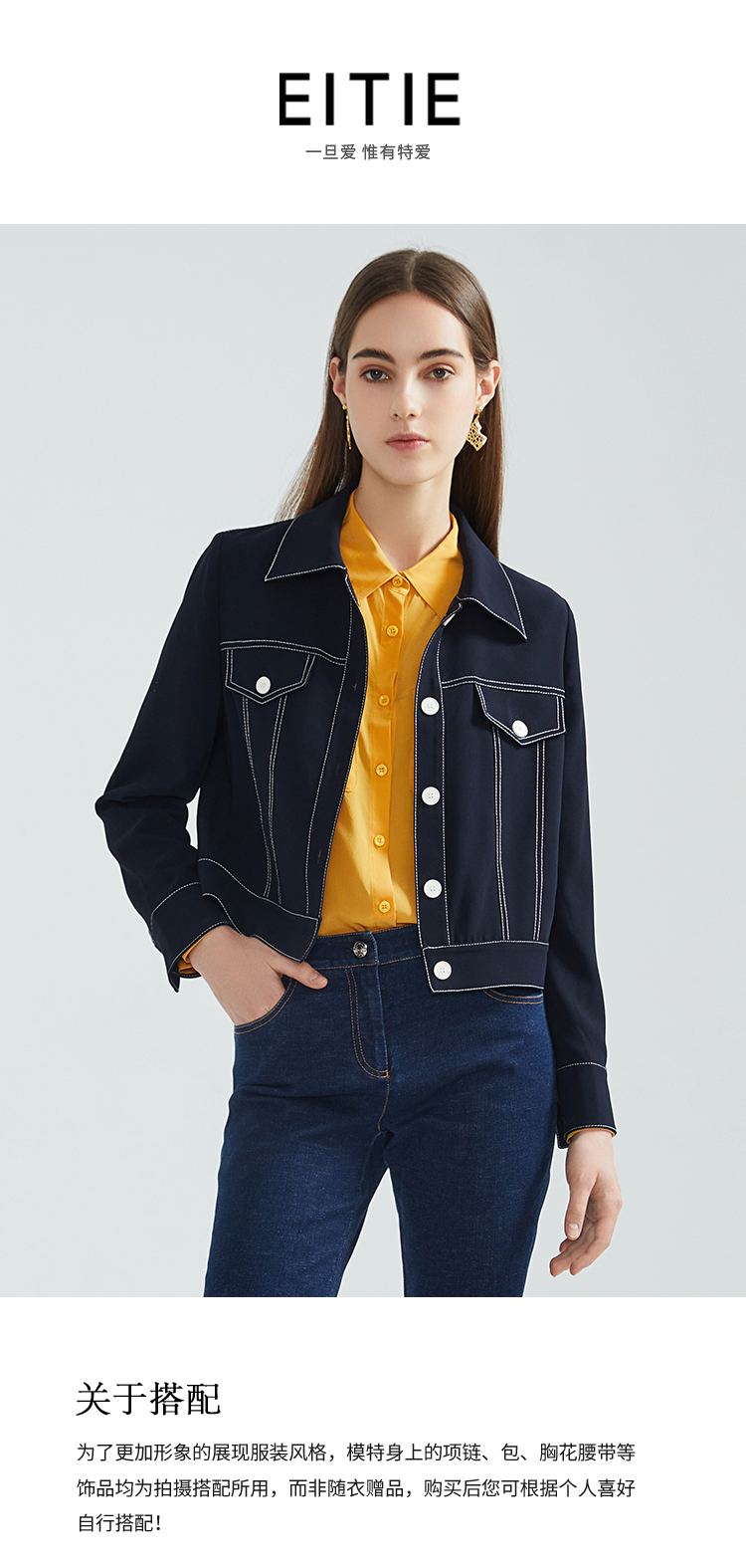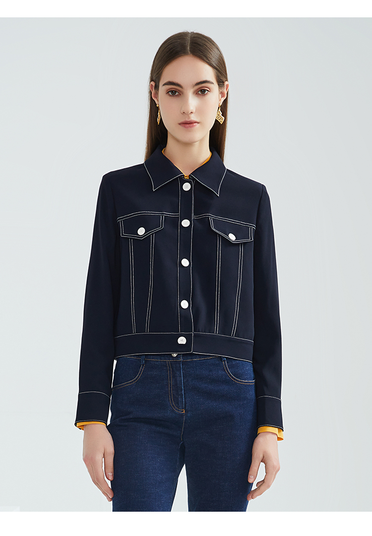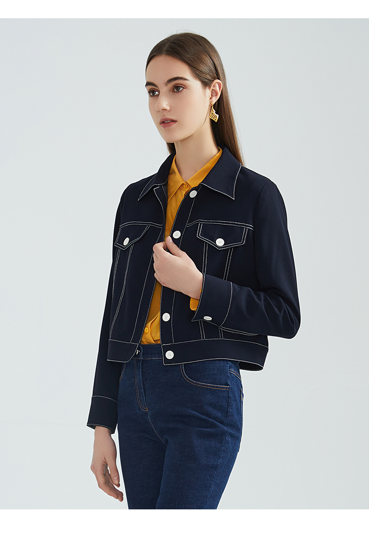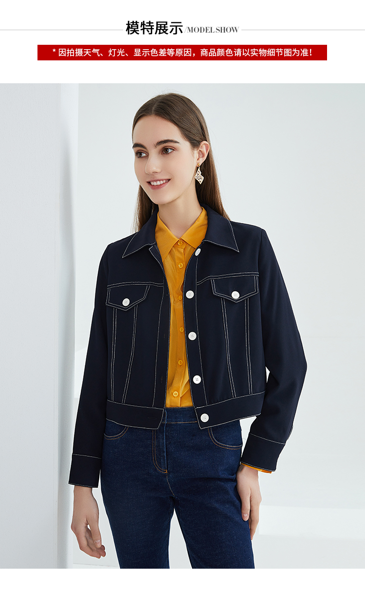 EITIE爱特爱春季新款洋气时尚简约撞色线条单排扣夹克短外套6303002