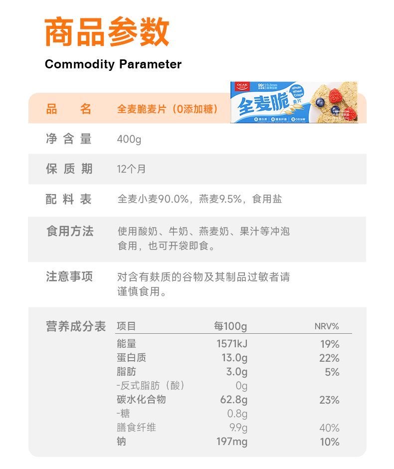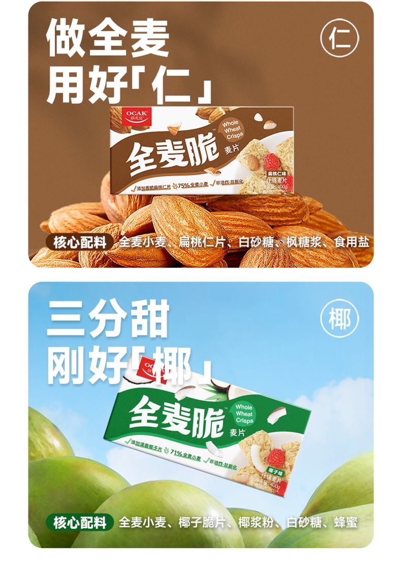 欧扎克全麦脆块麦片代餐干吃多口味400g