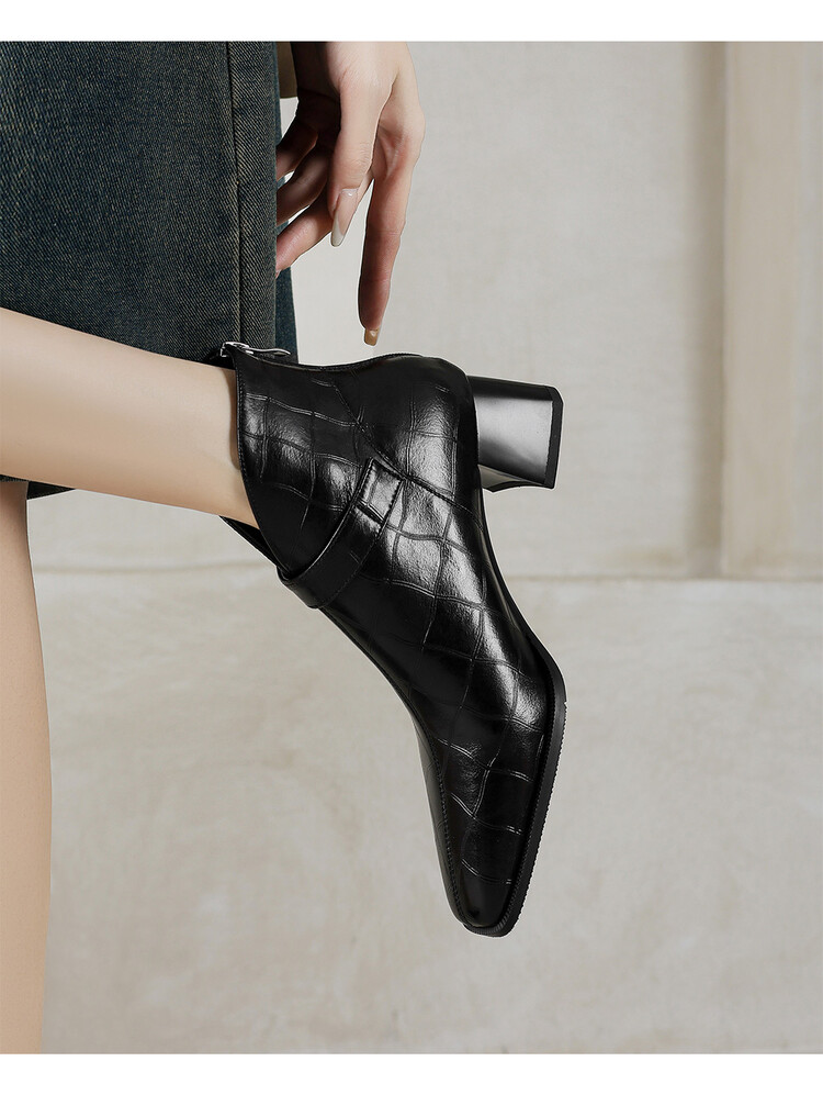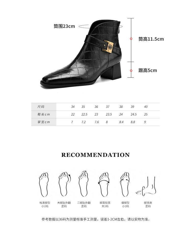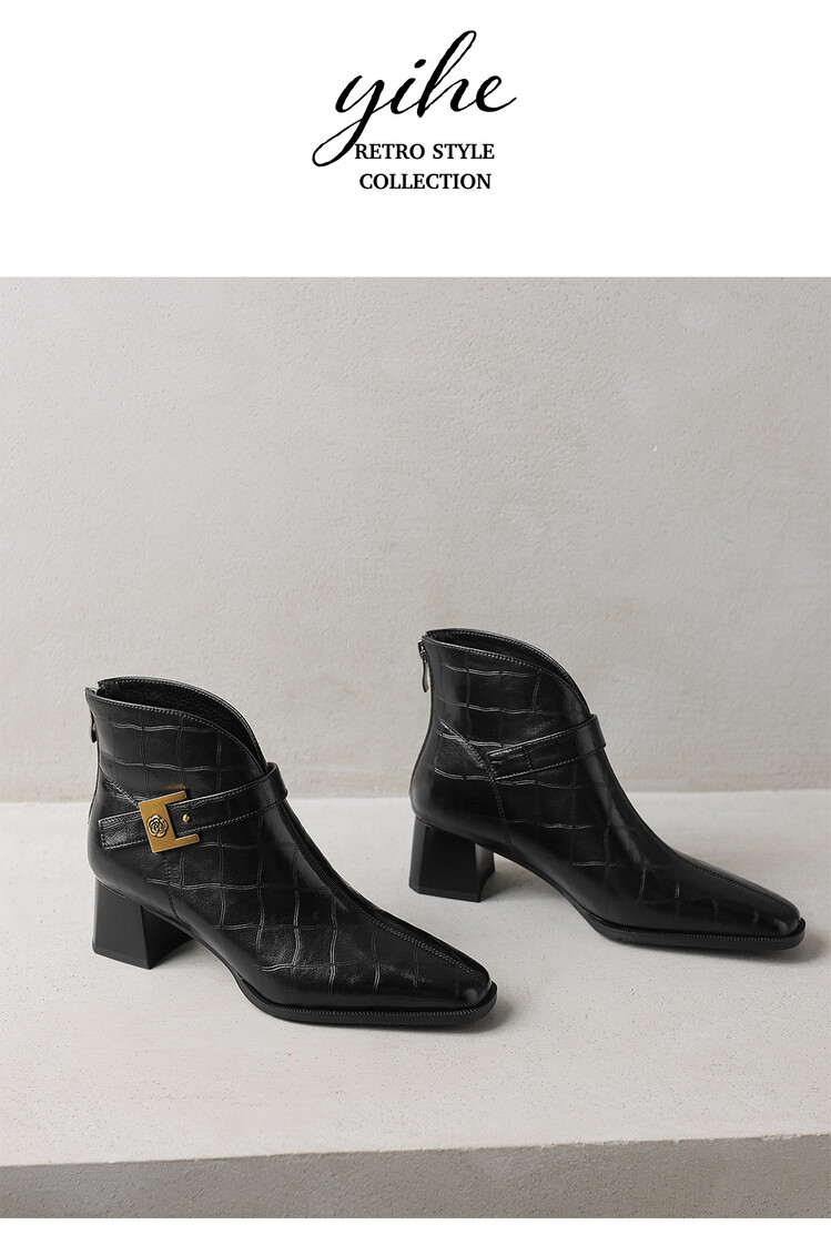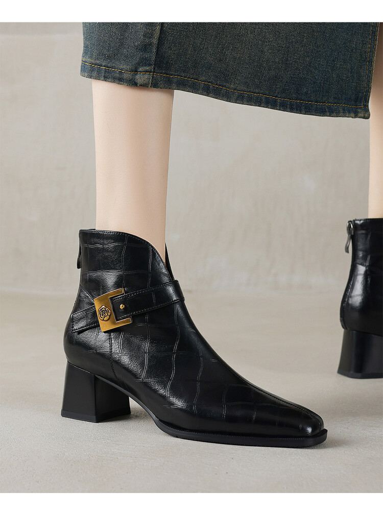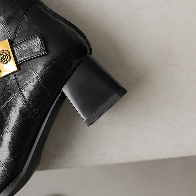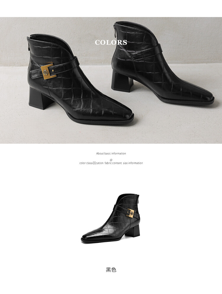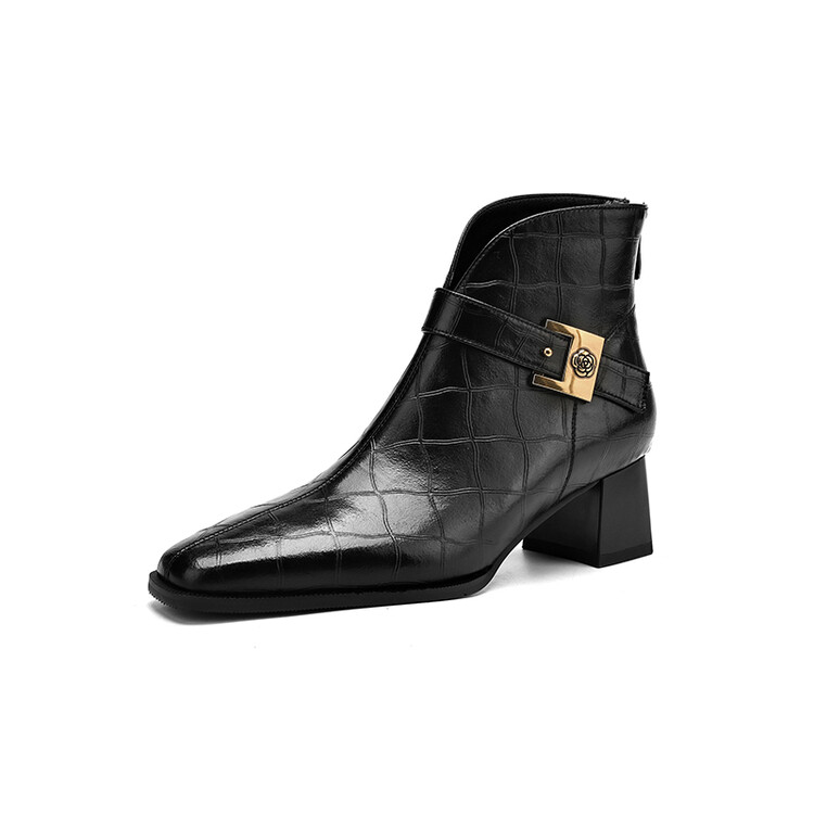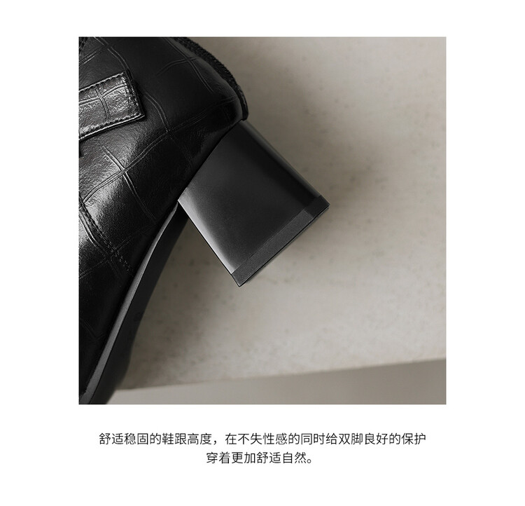 【预售5天】高跟短靴女秋冬季新款时尚粗跟短筒黑色加绒中跟单靴皮靴SL&072-11