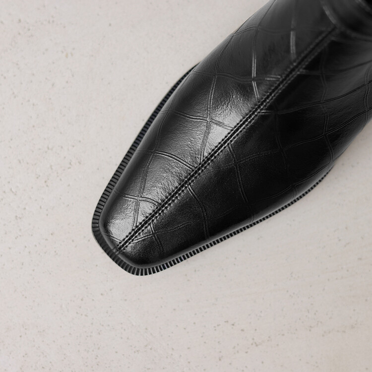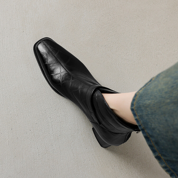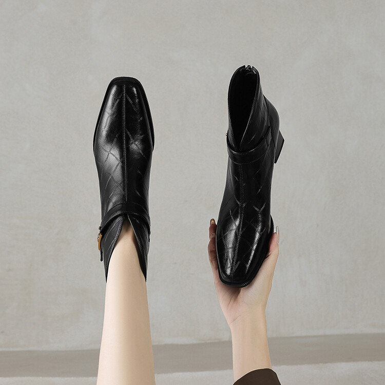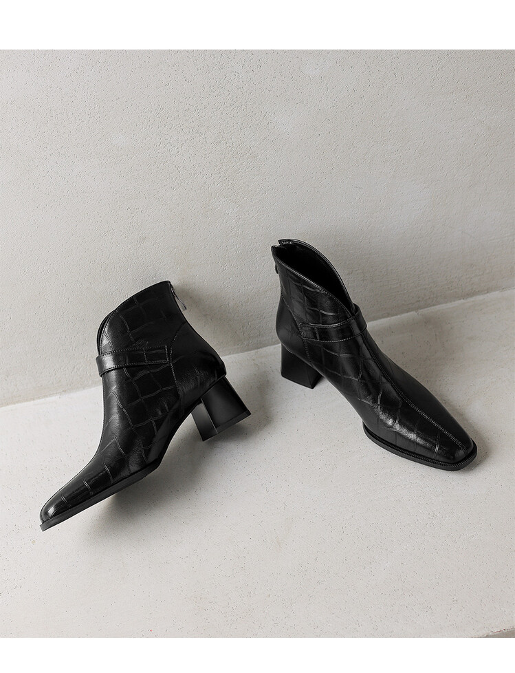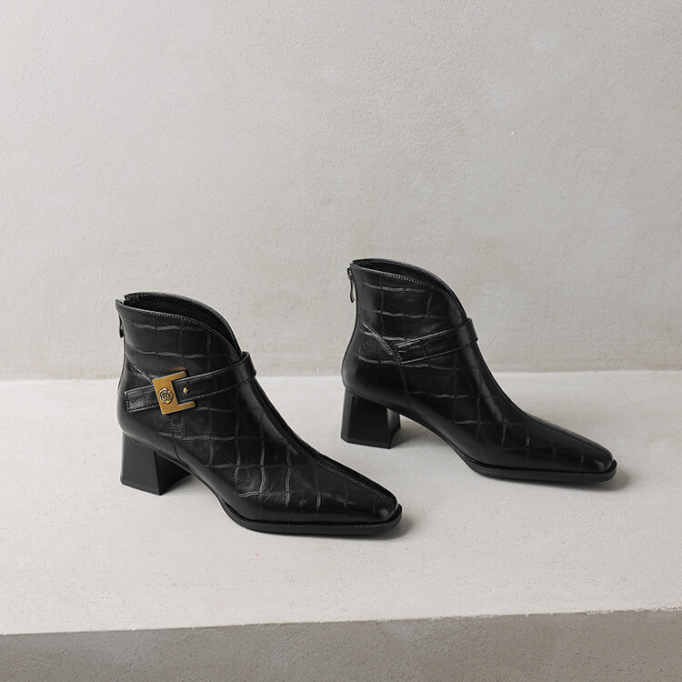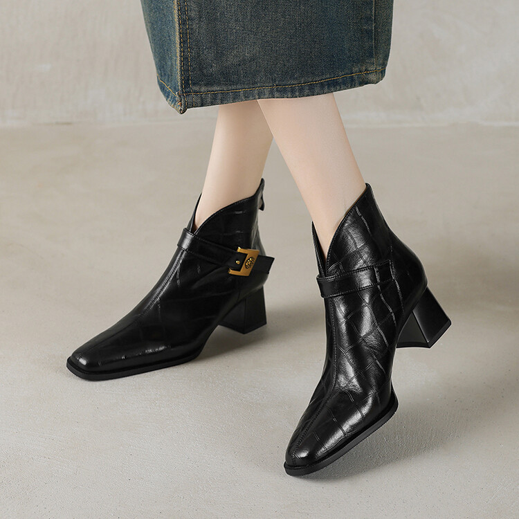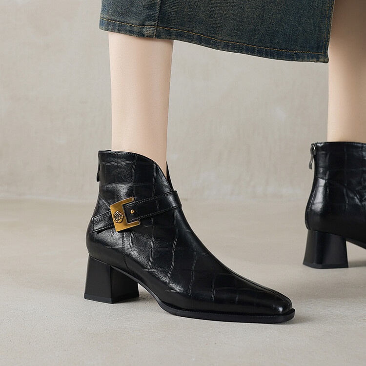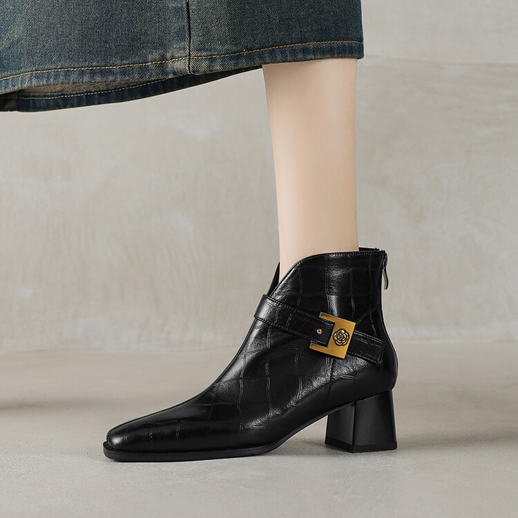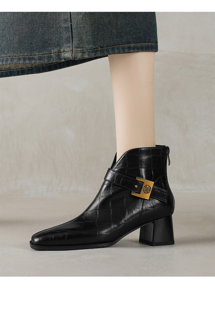 【预售5天】高跟短靴女秋冬季新款时尚粗跟短筒黑色加绒中跟单靴皮靴SL&072-11