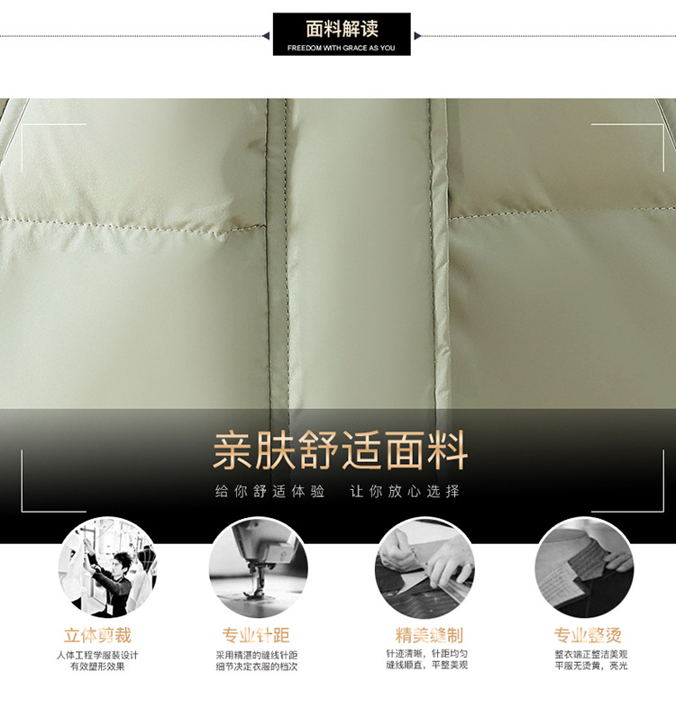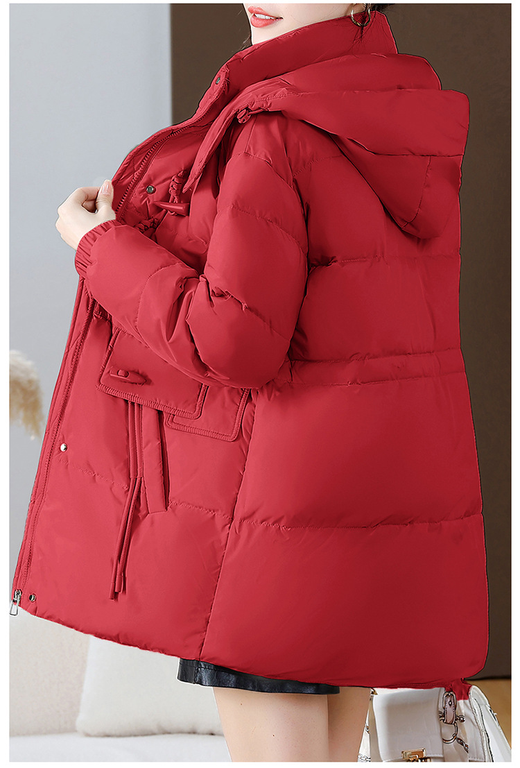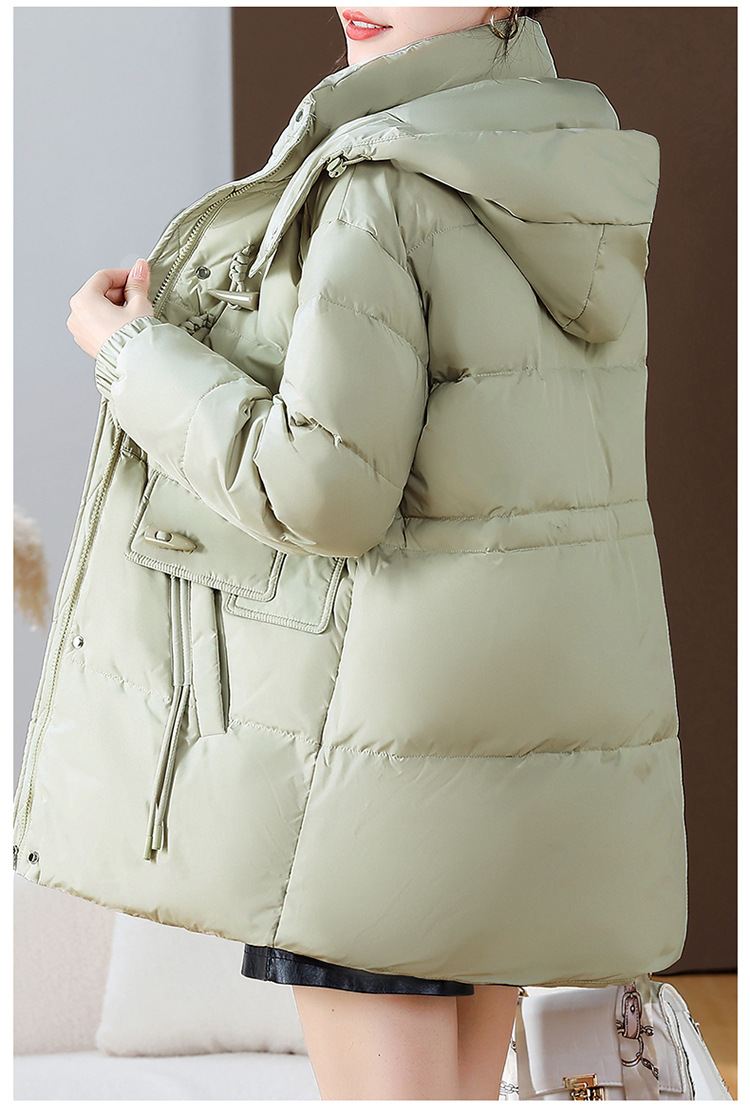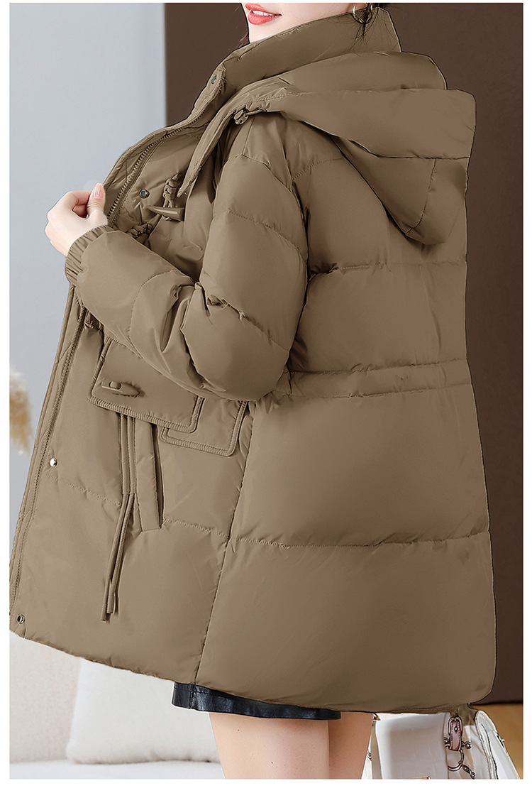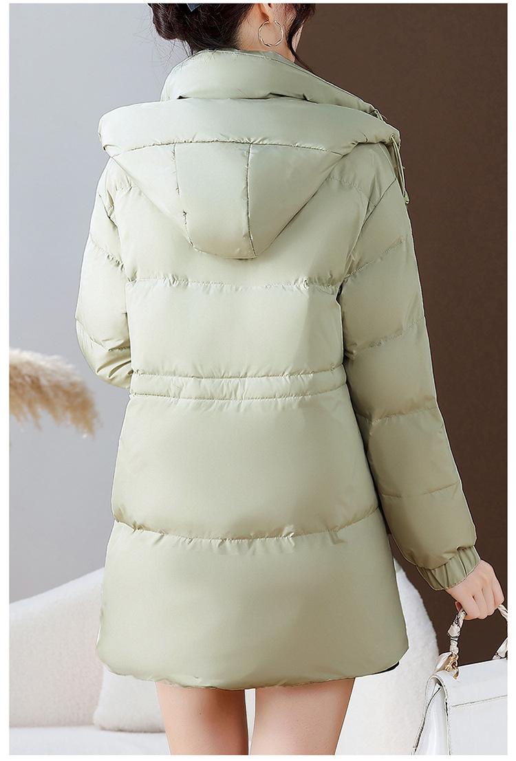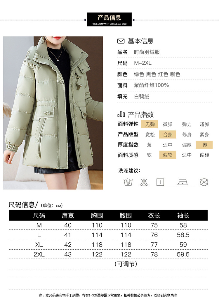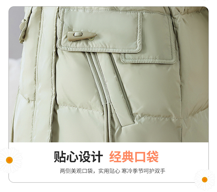 连帽厚款羽绒服,时尚新款拉链牛角扣中长款休闲羽绒服冬季保暖女装QYM-KED-338052-Y