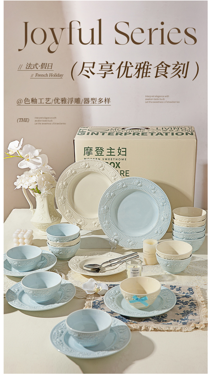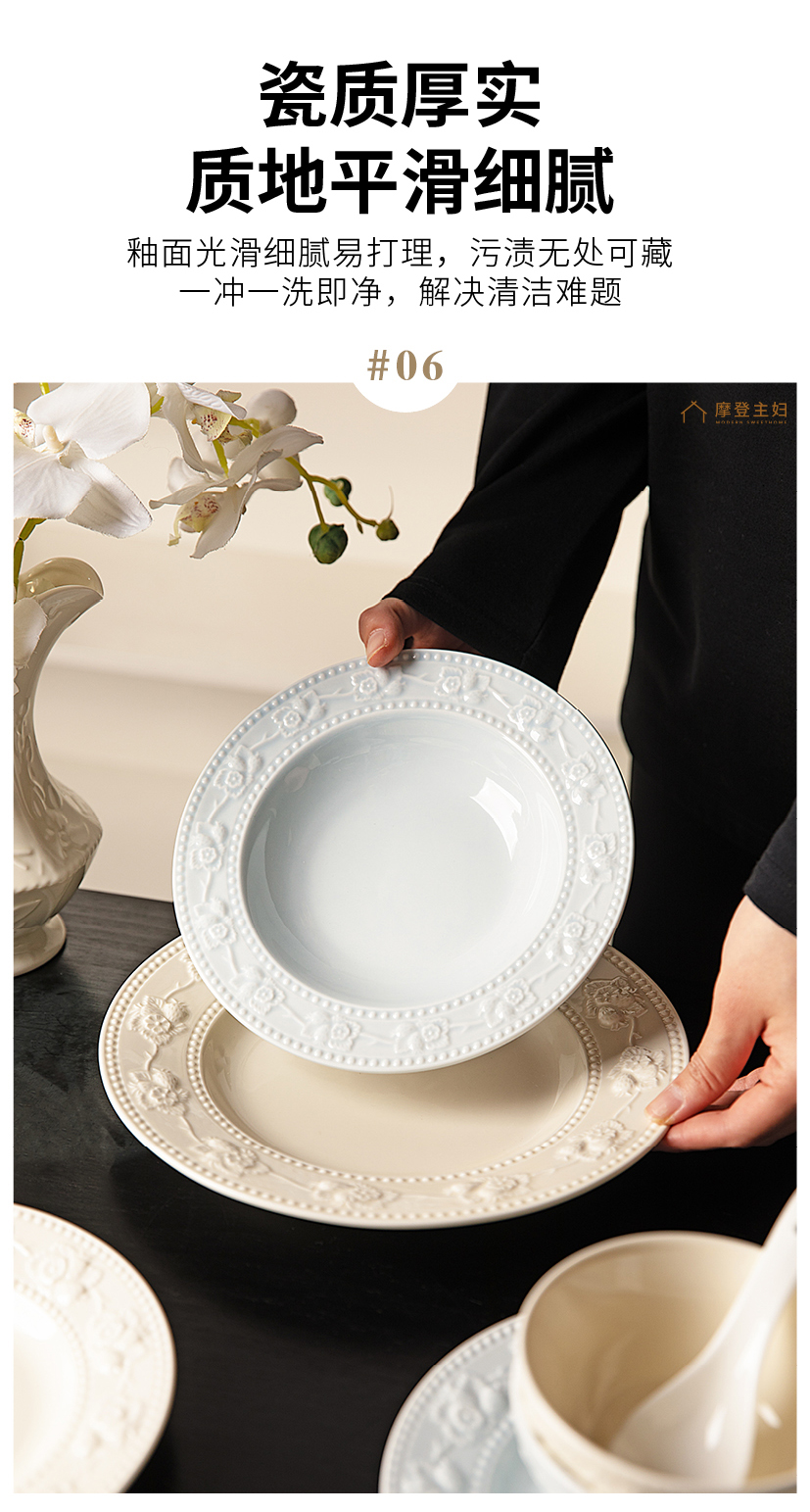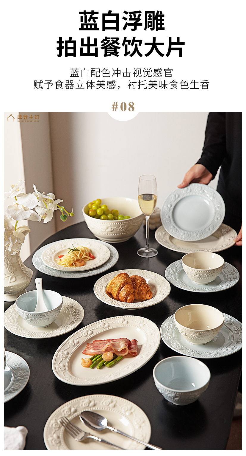摩登主妇浮雕餐具碗碟家用2025新款高颜值碗具盘子特别好看的饭碗