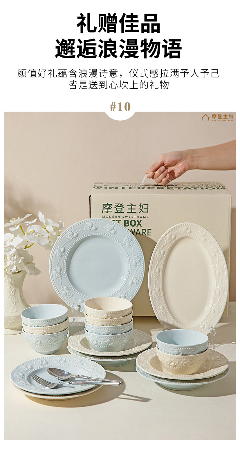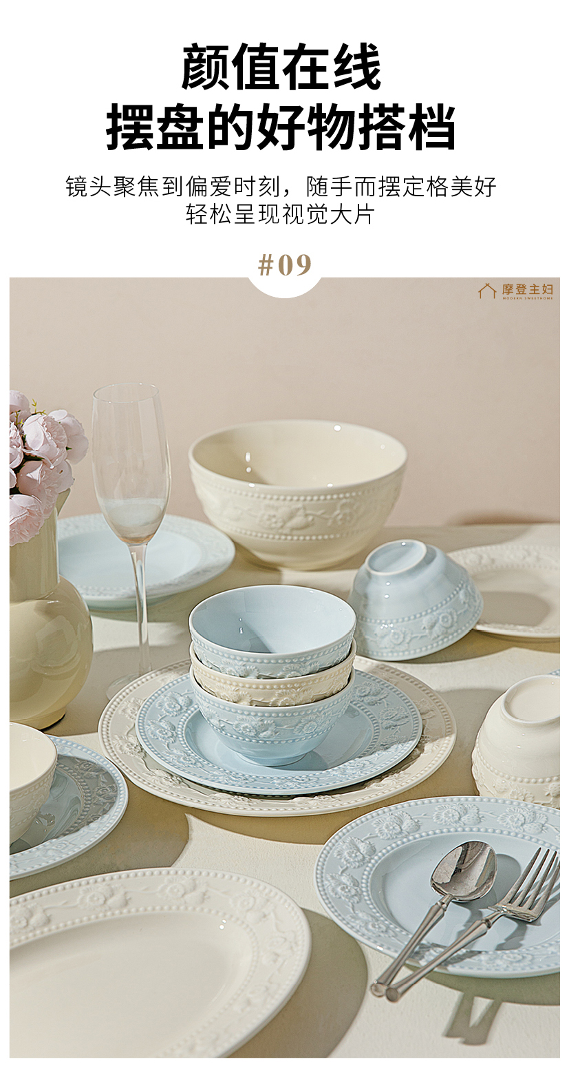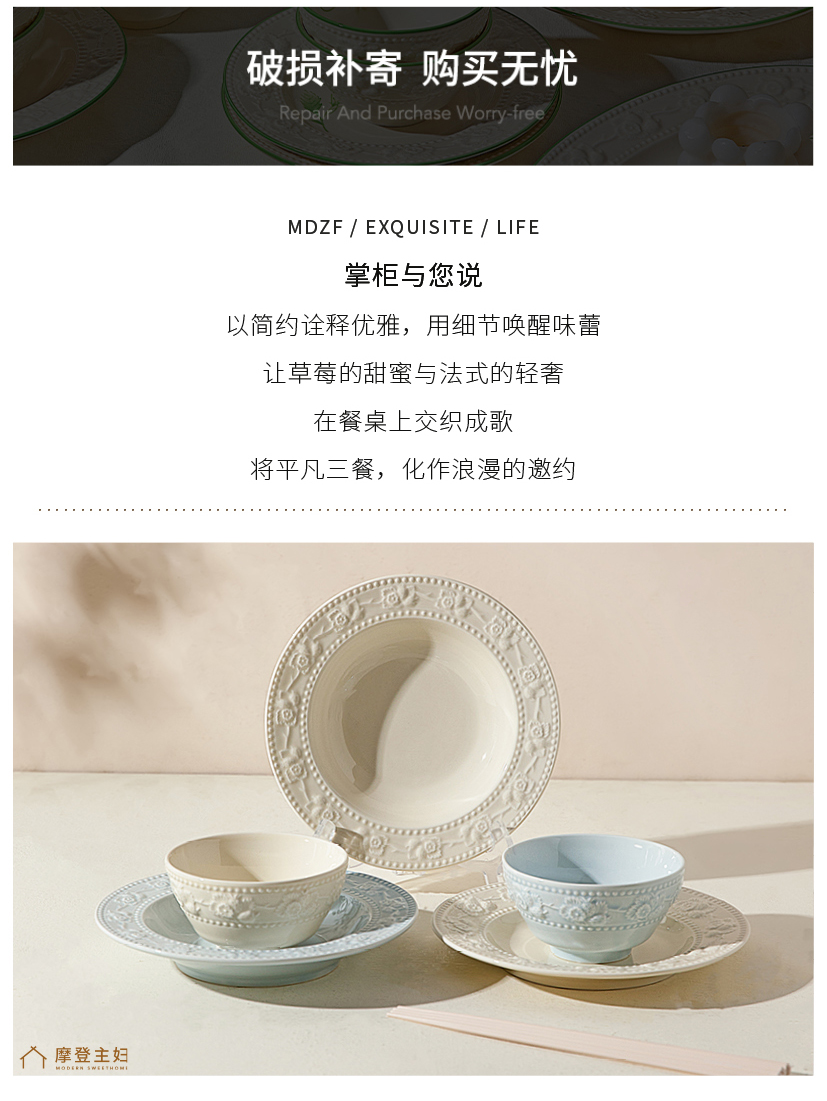 摩登主妇浮雕餐具碗碟家用2025新款高颜值碗具盘子特别好看的饭碗