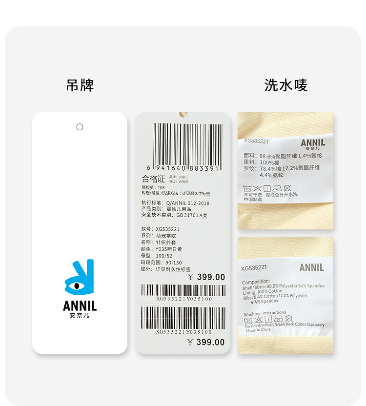 【实体店同款】女童针织外套秋季新款安奈儿童装XG535221