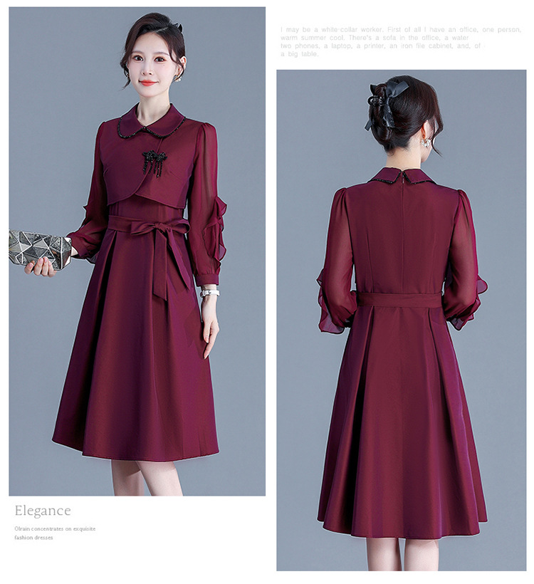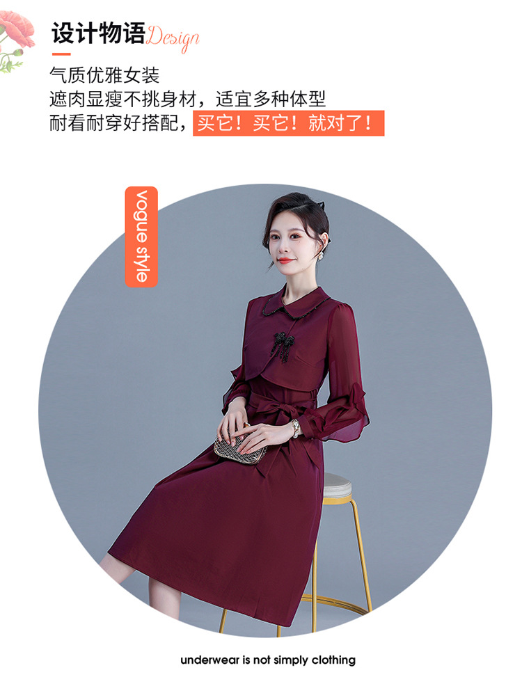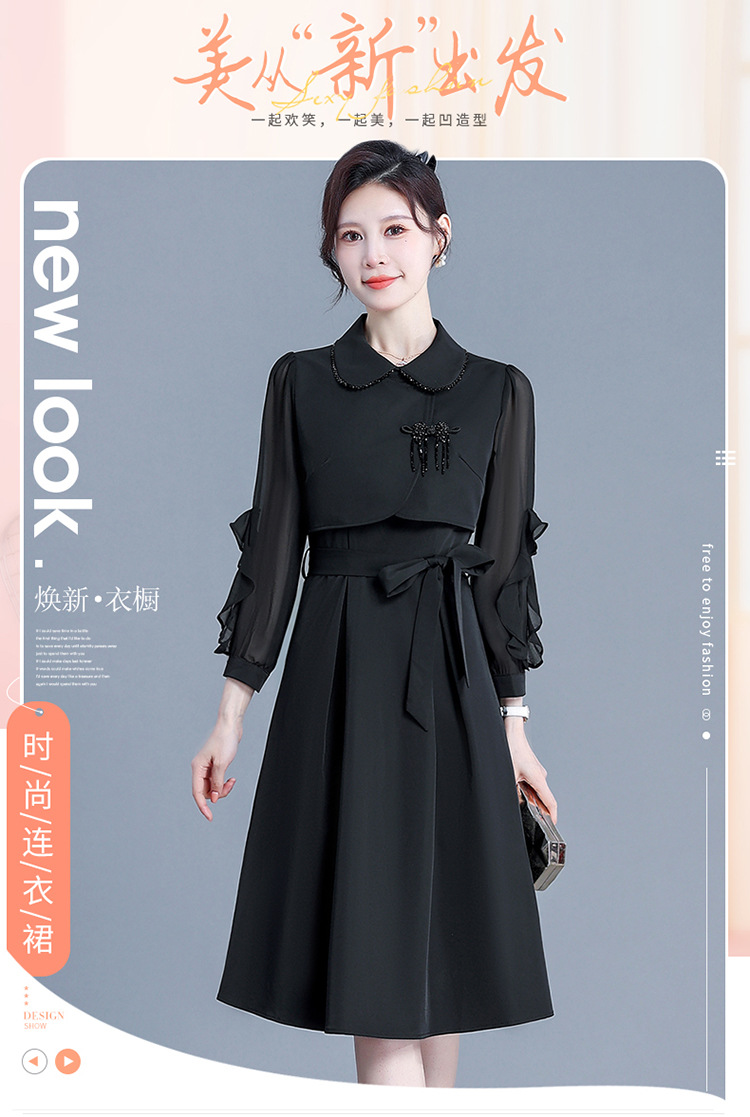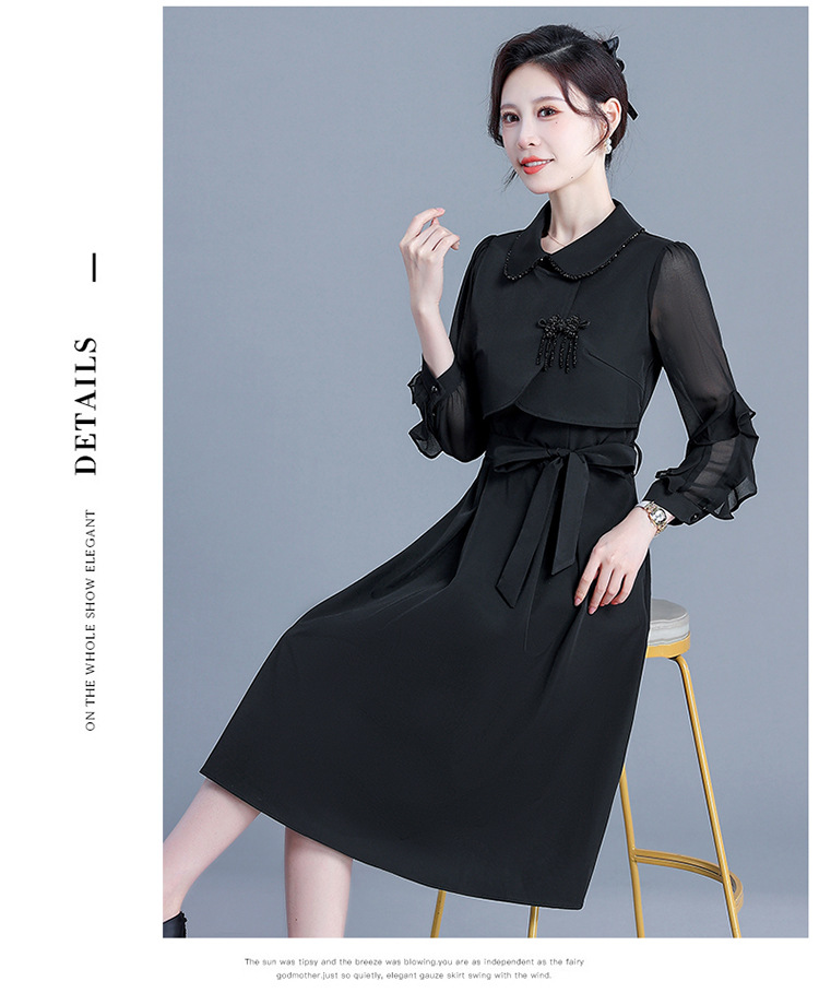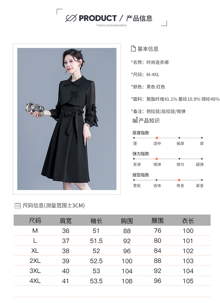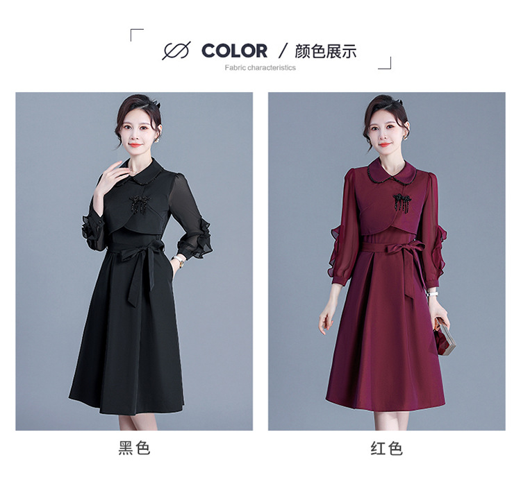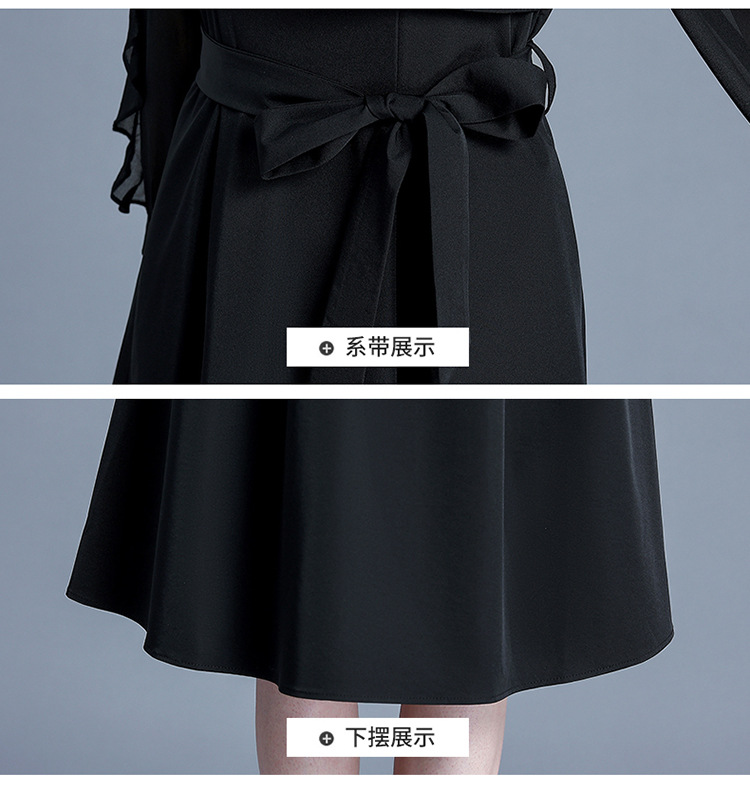 系带修身时尚连衣裙,娃娃领长袖气质A字裙QYM-DFN-A3010-L