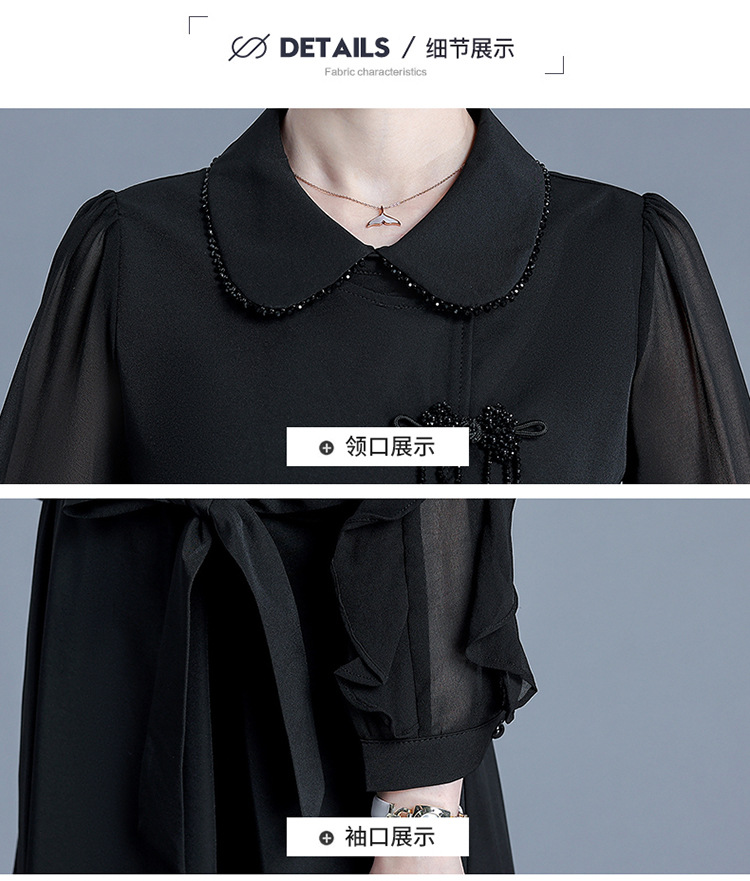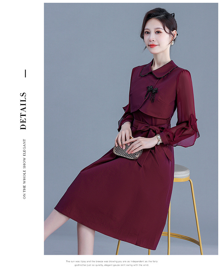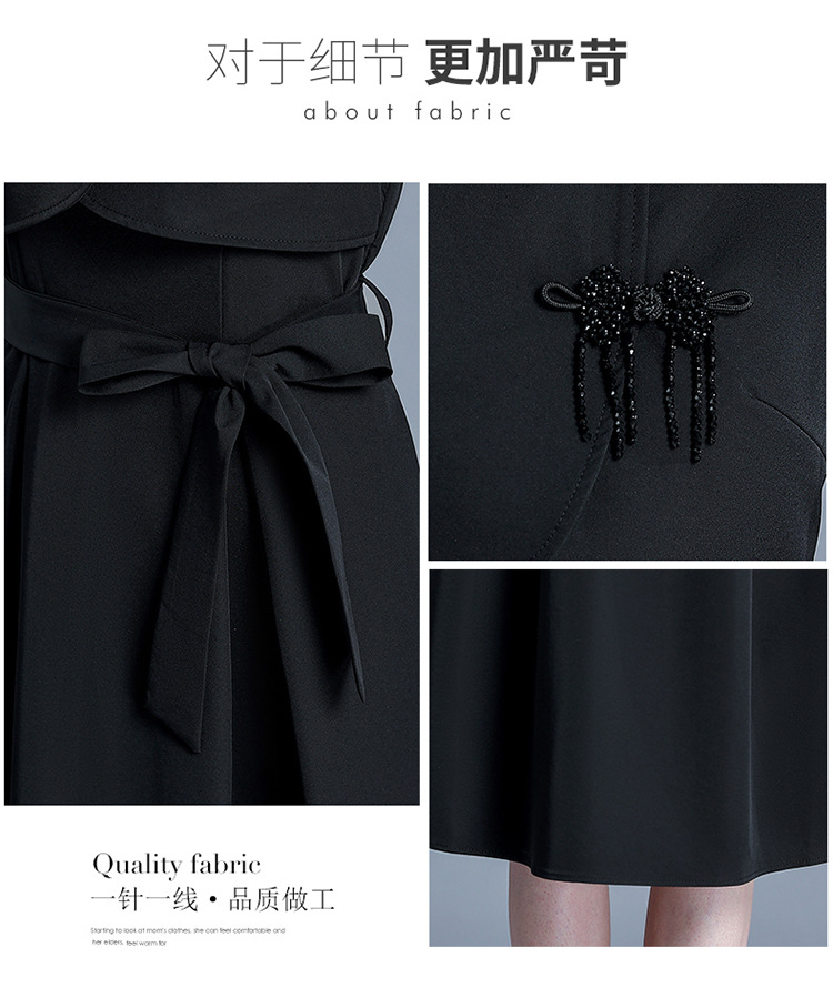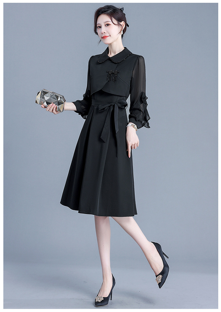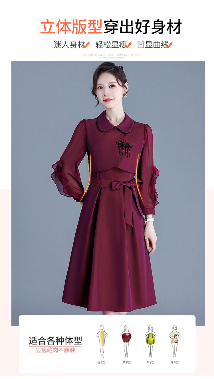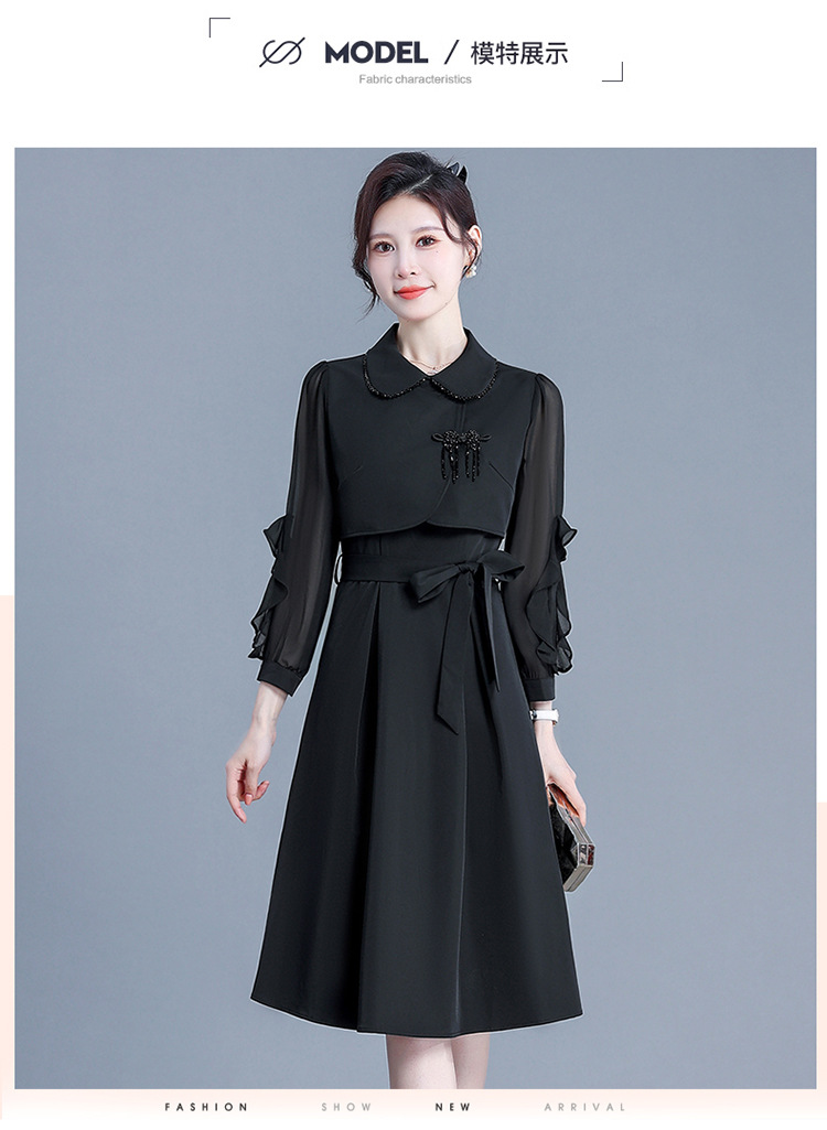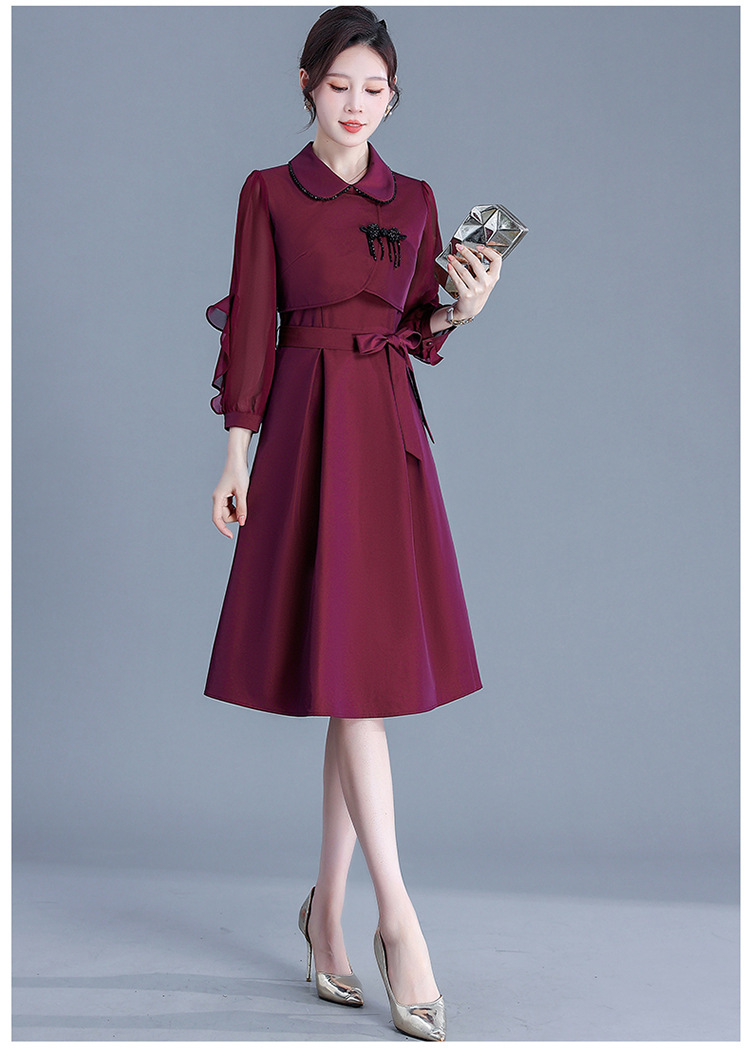 系带修身时尚连衣裙,娃娃领长袖气质A字裙QYM-DFN-A3010-L