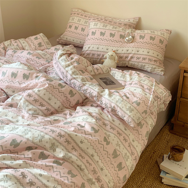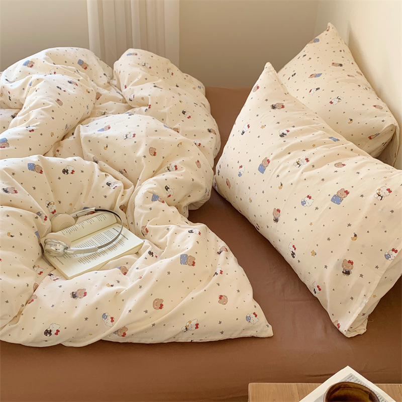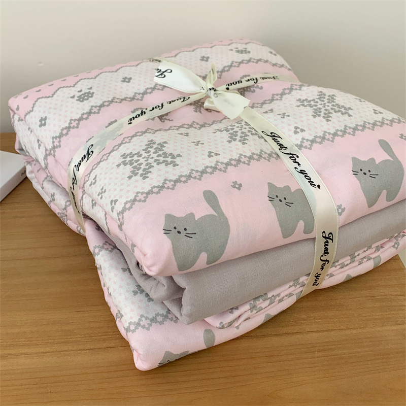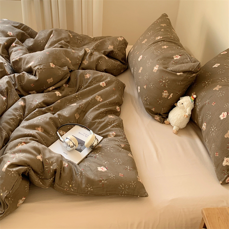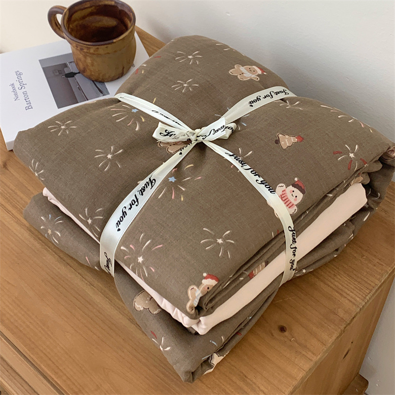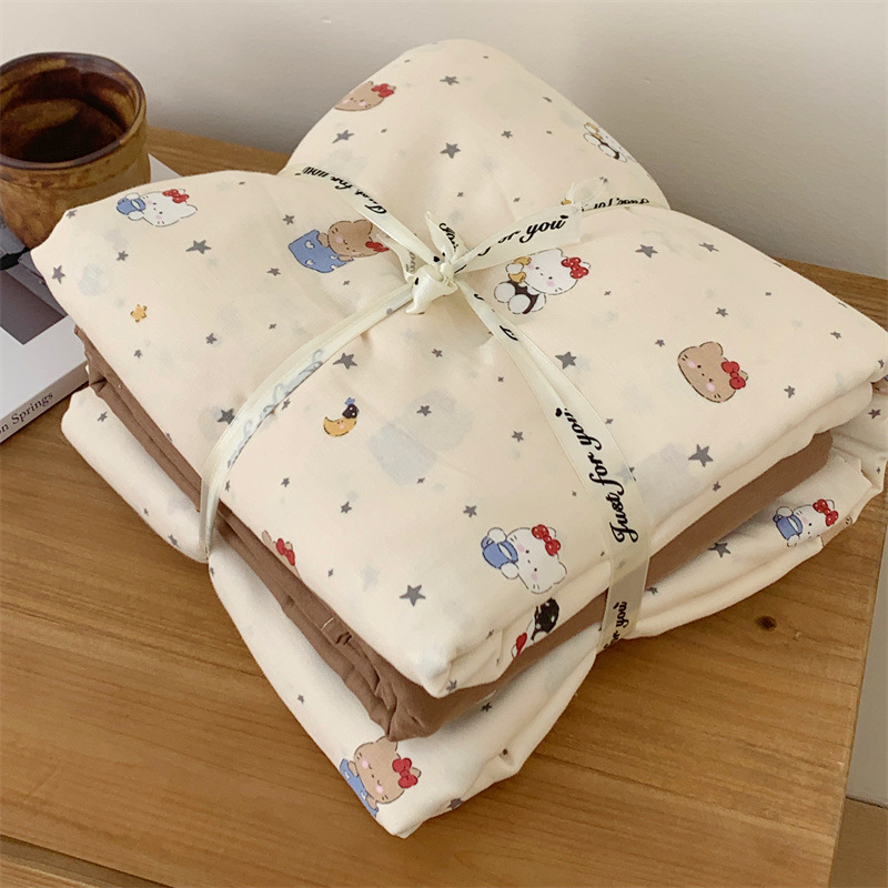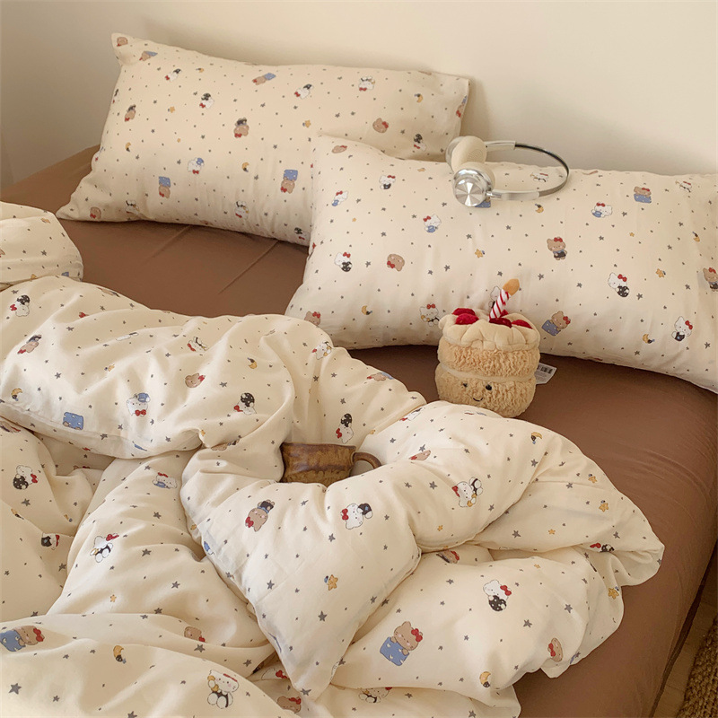 雀说A类韩系全棉双层纱四件套纯棉被套床单床笠款学生宿舍单人三件套ALWTDM