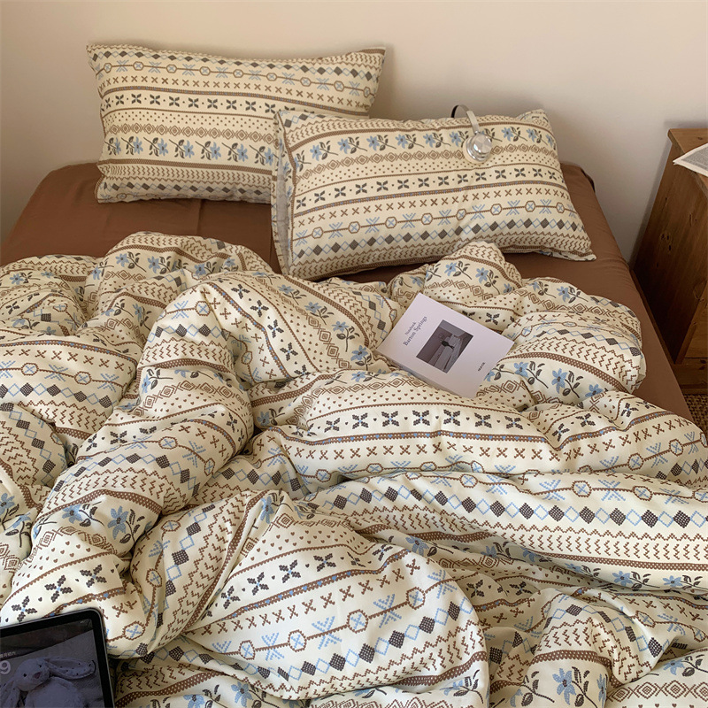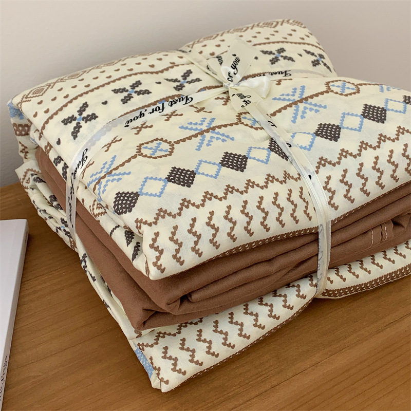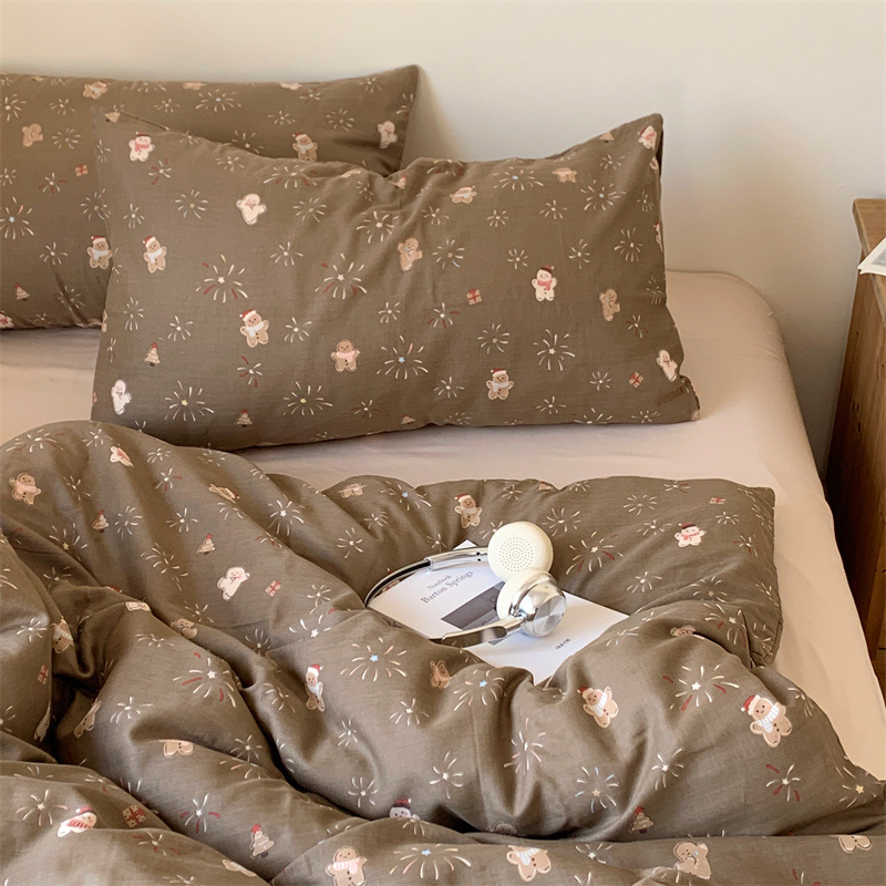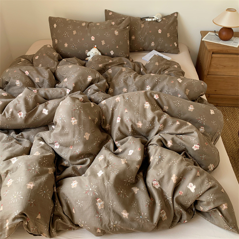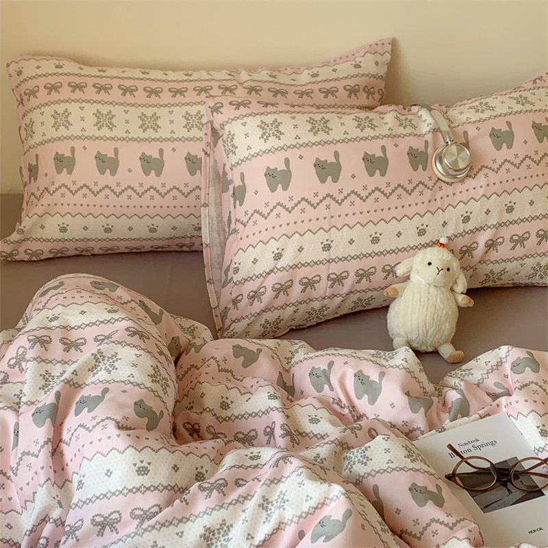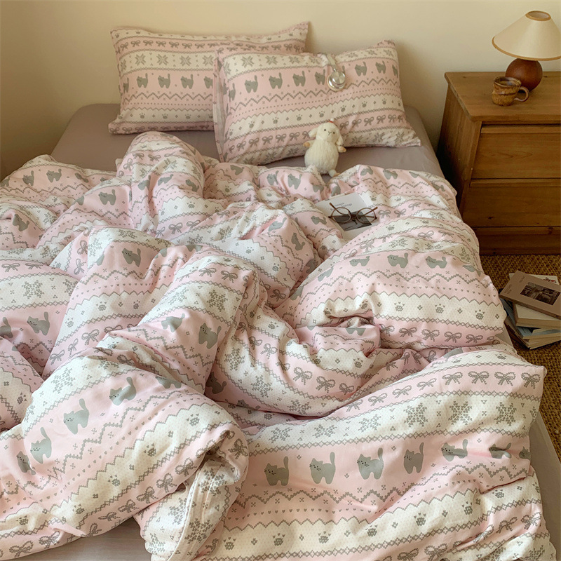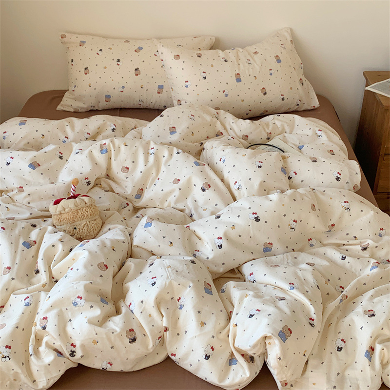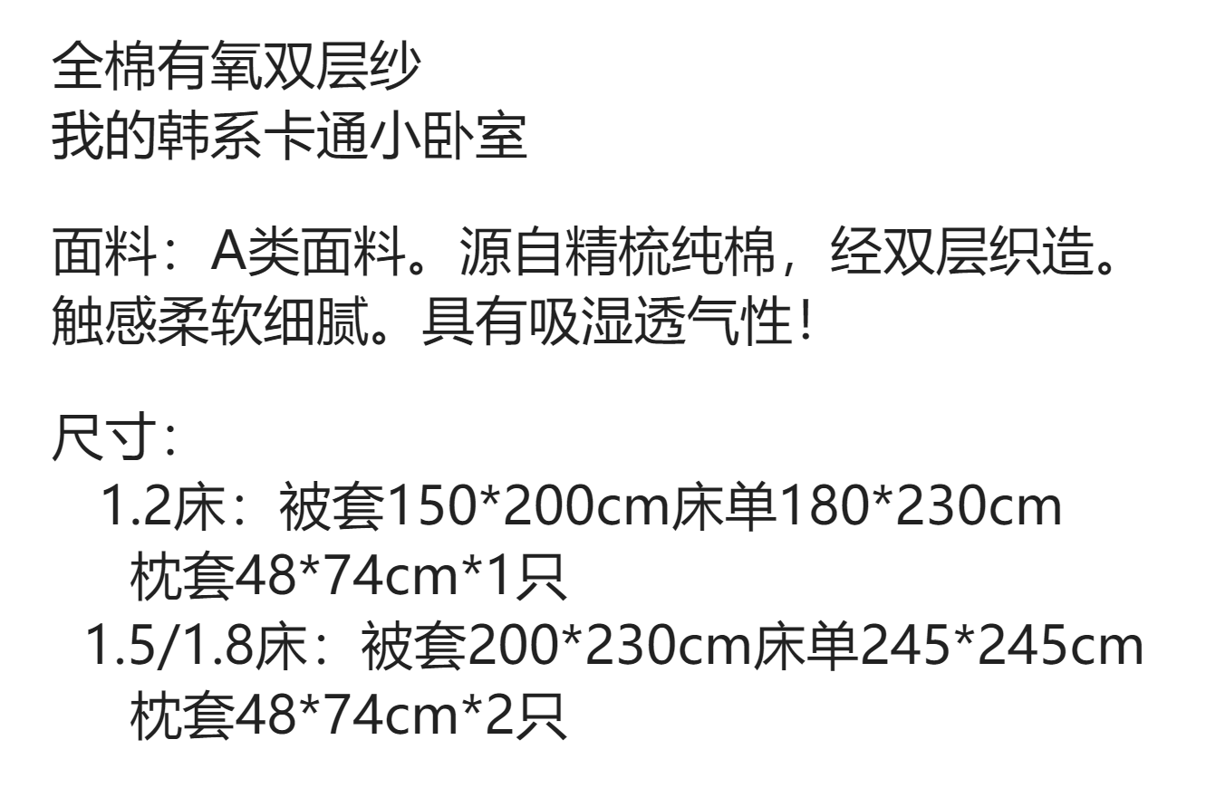 雀说A类韩系全棉双层纱四件套纯棉被套床单床笠款学生宿舍单人三件套ALWTDM