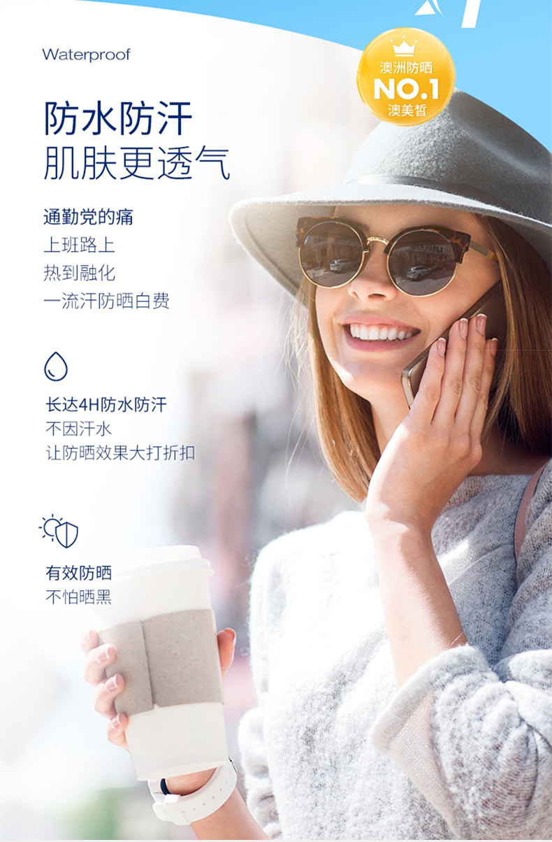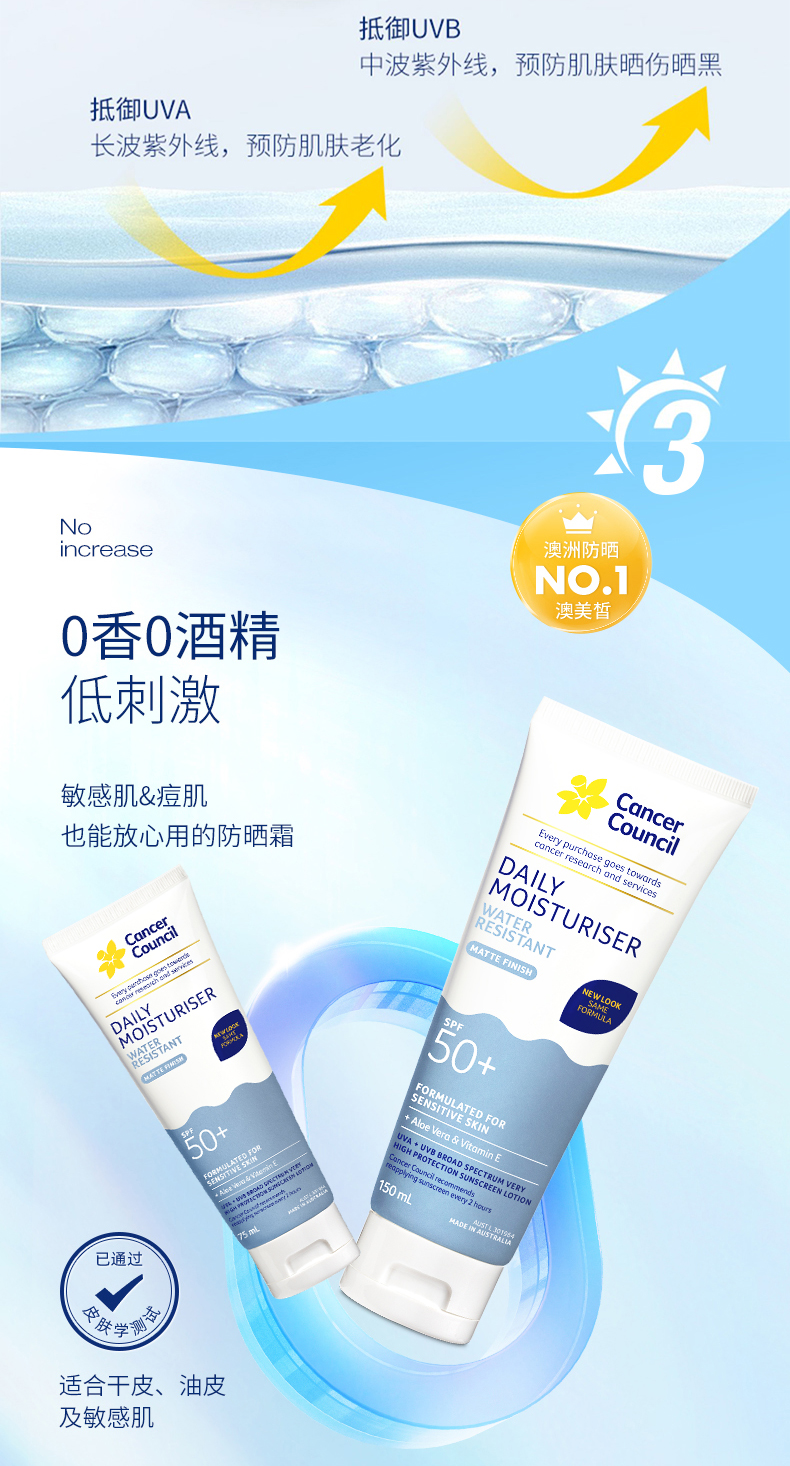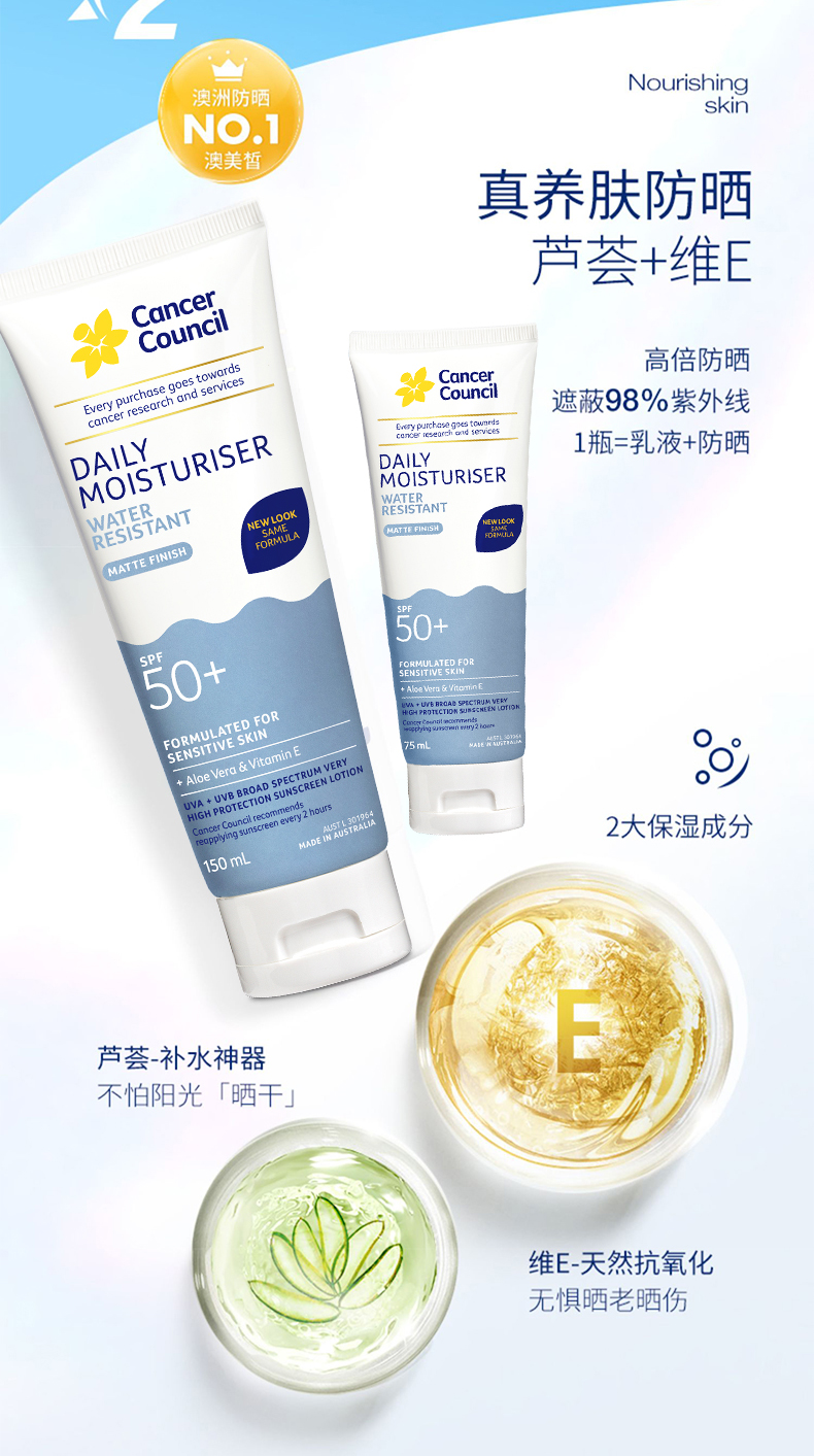 CancerCouncil澳美皙蓝色户外防水防晒霜SPF50+75ml 150m
