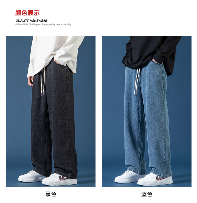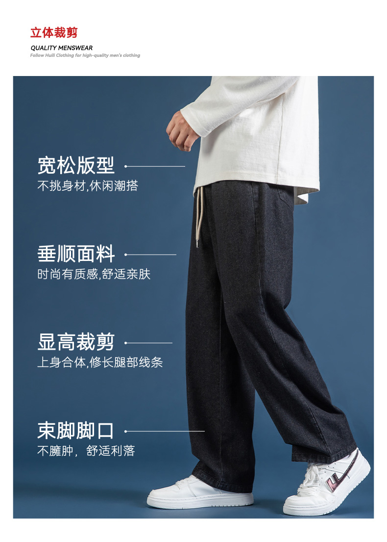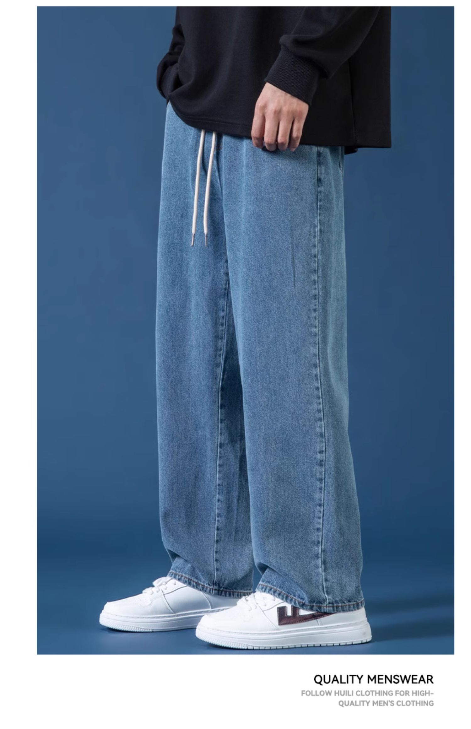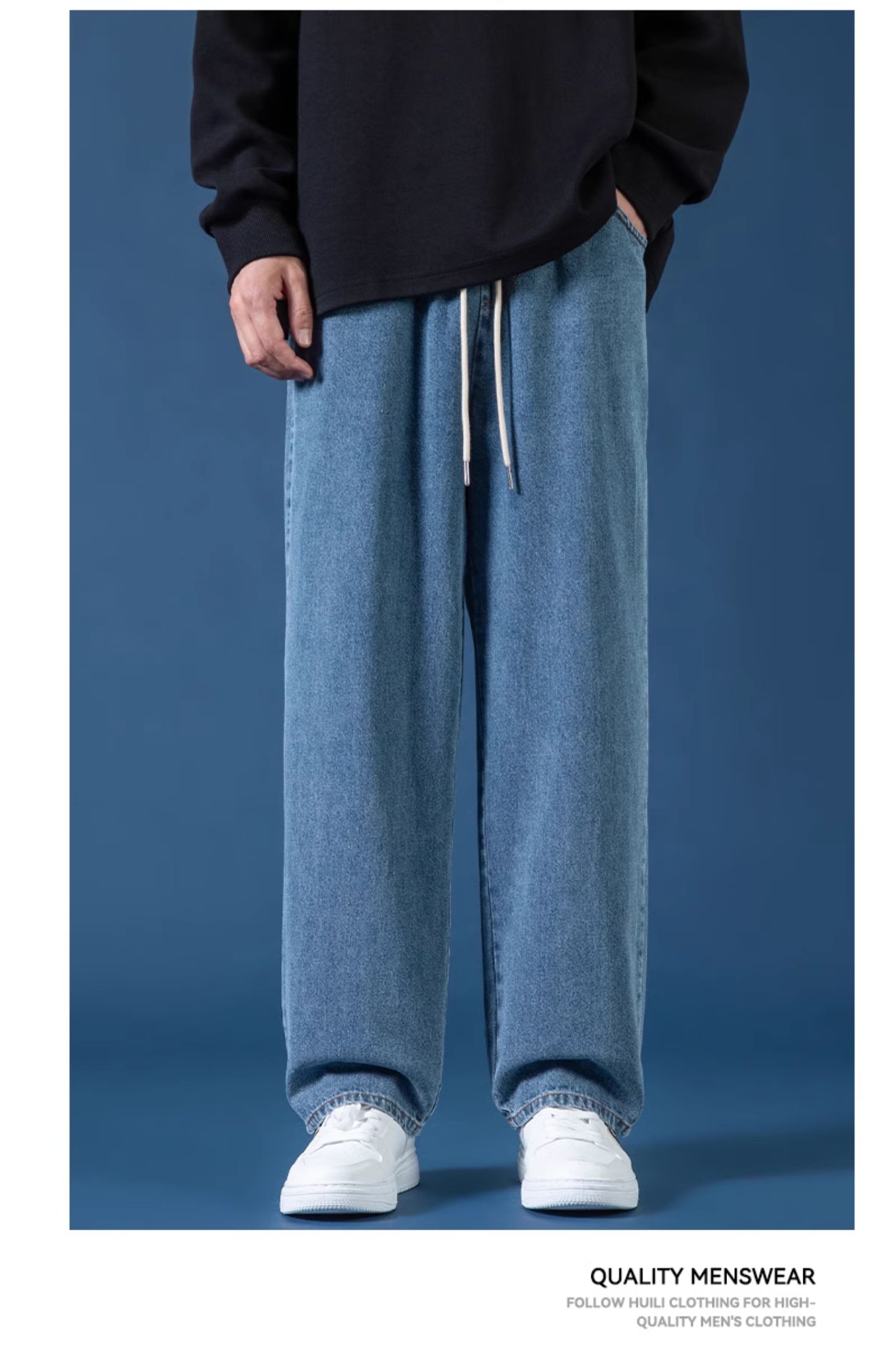 回力牛仔裤男直筒宽松阔腿裤子2025新款秋季潮牌蓝色牛仔加绒长裤