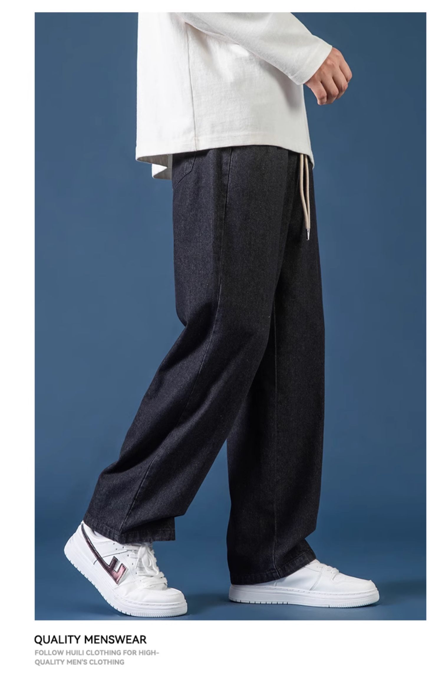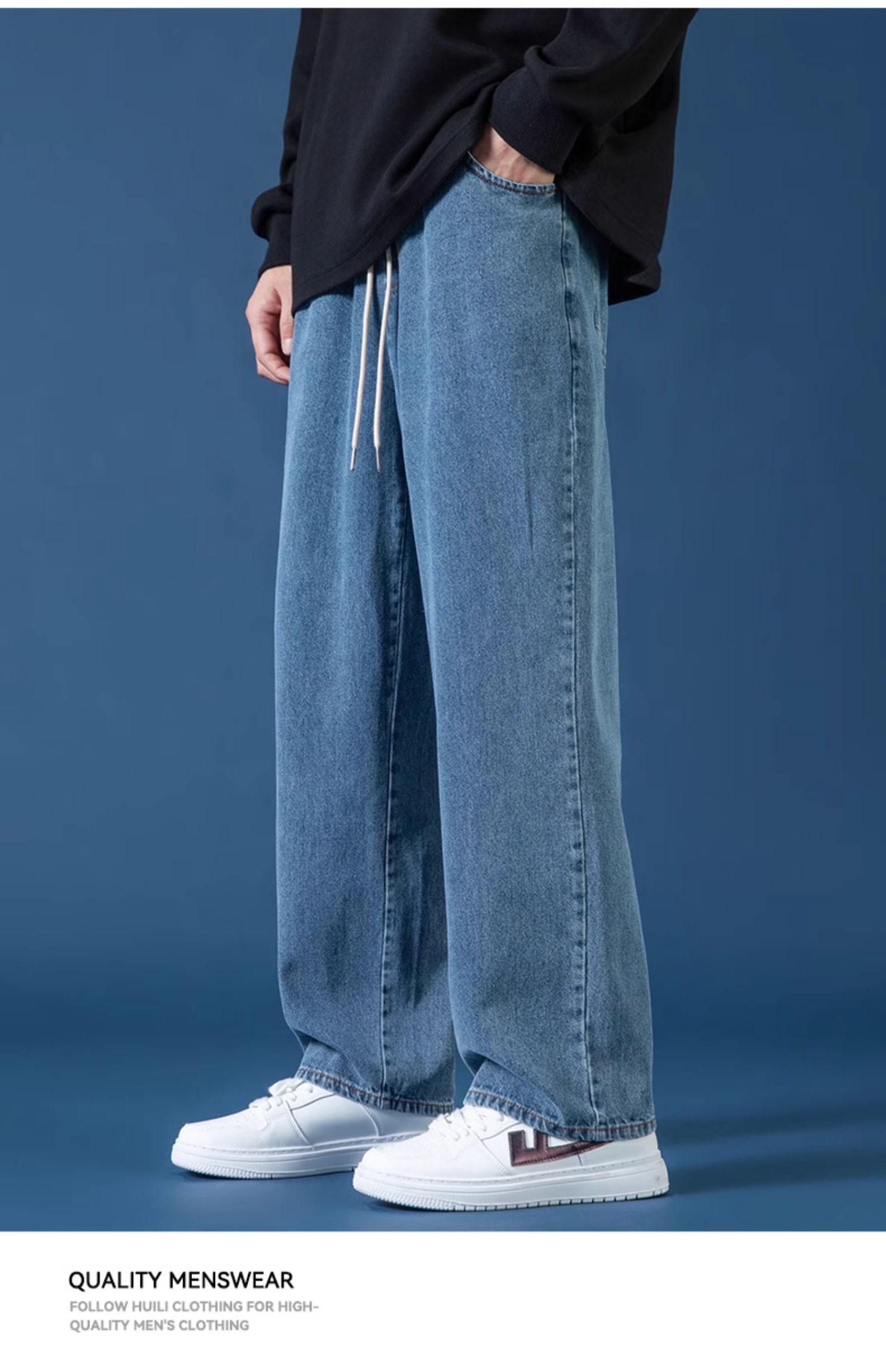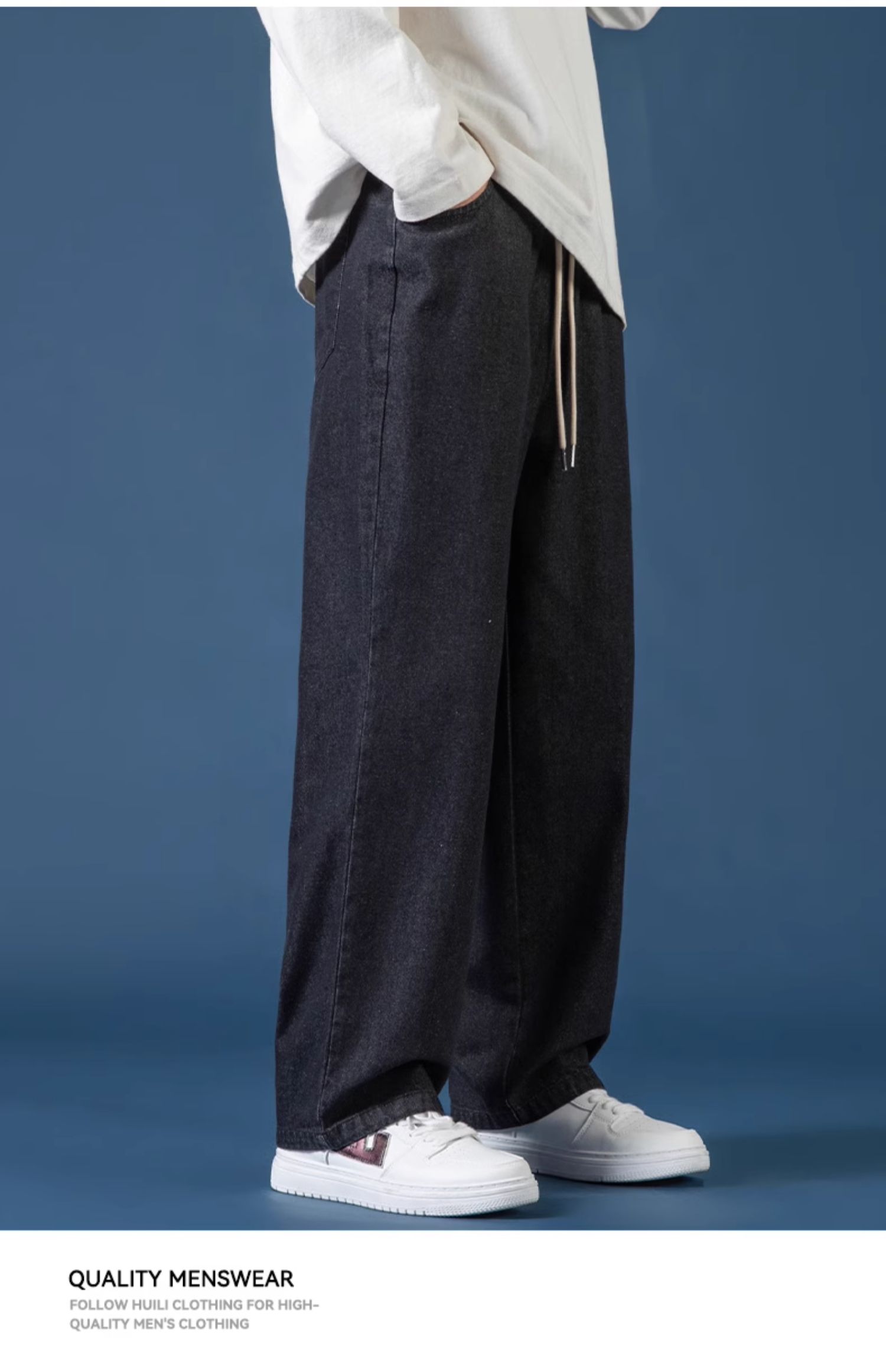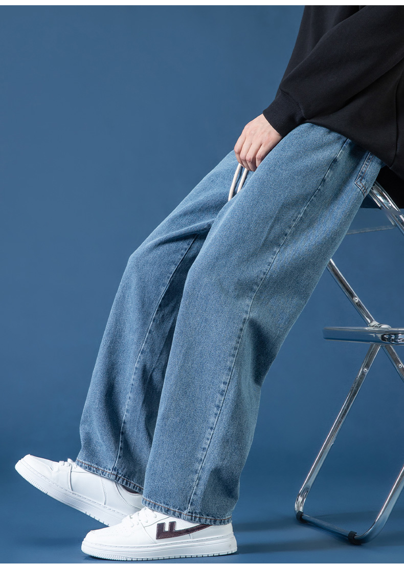 回力牛仔裤男直筒宽松阔腿裤子2025新款秋季潮牌蓝色牛仔加绒长裤