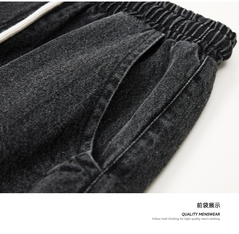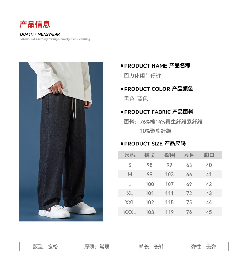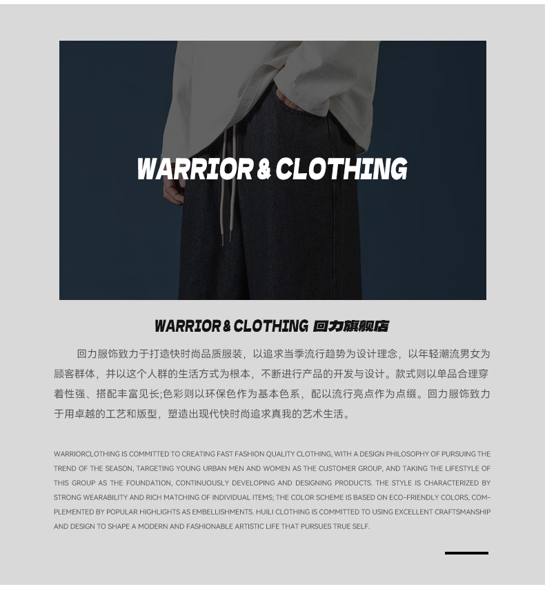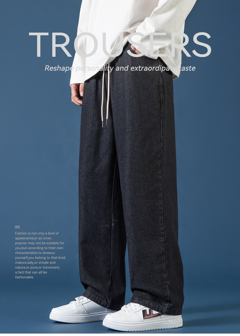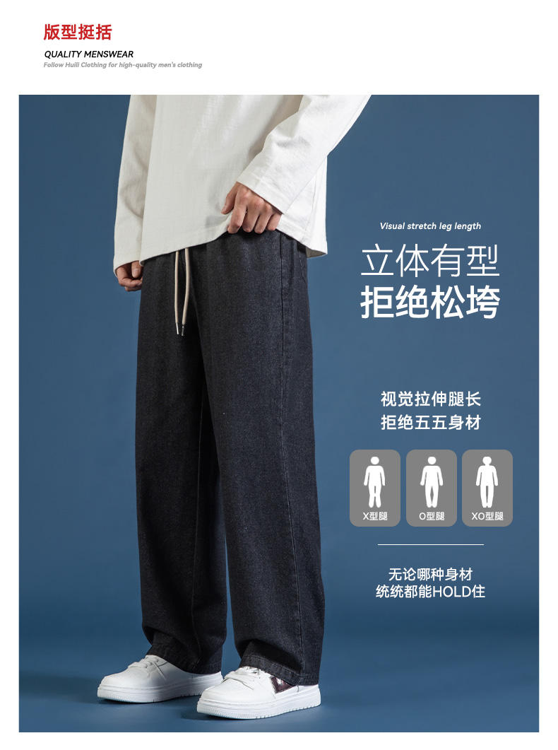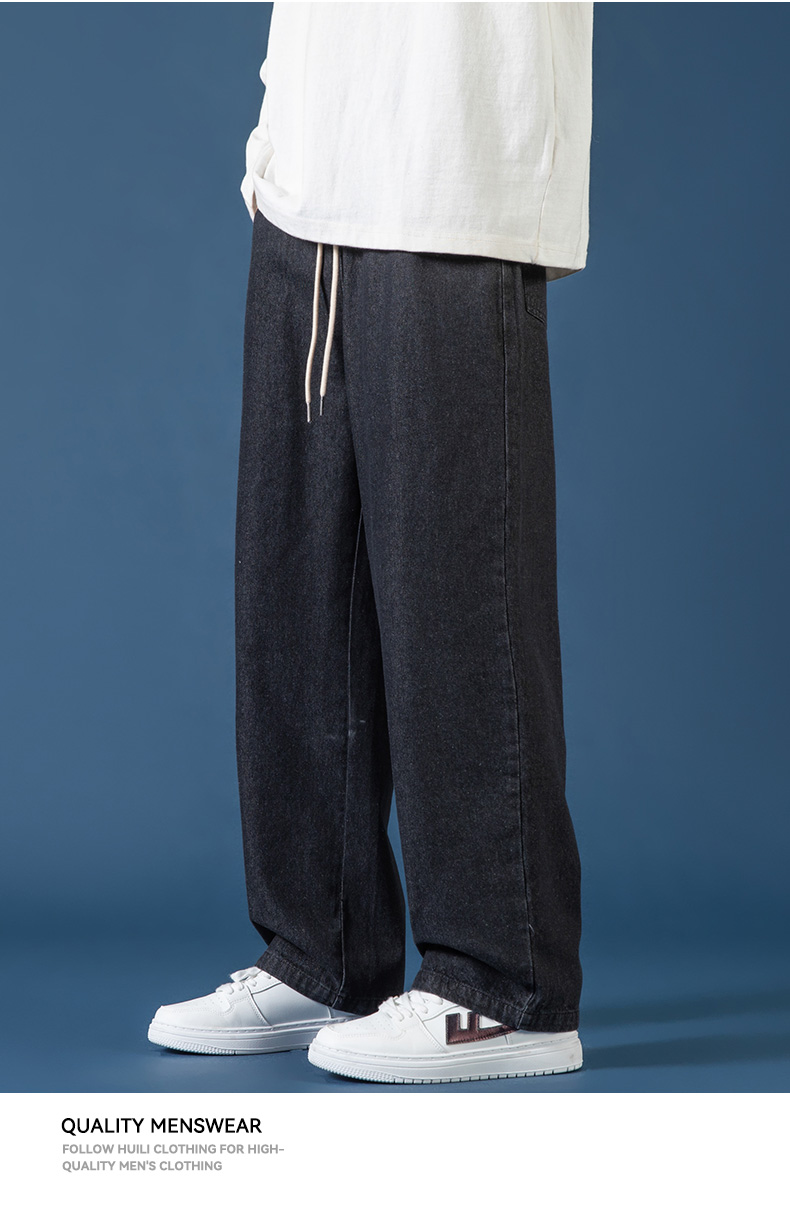 回力牛仔裤男直筒宽松阔腿裤子2025新款秋季潮牌蓝色牛仔加绒长裤