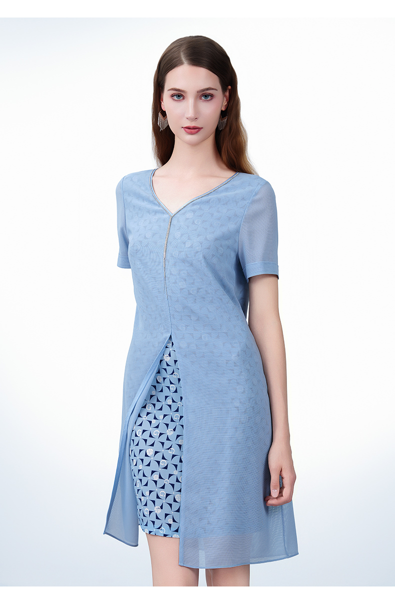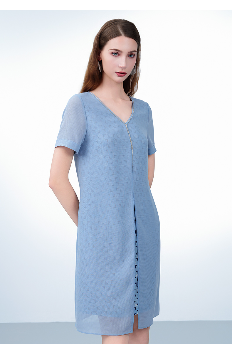 乔万尼新品假两件显瘦V领通勤风连衣裙ED2E429