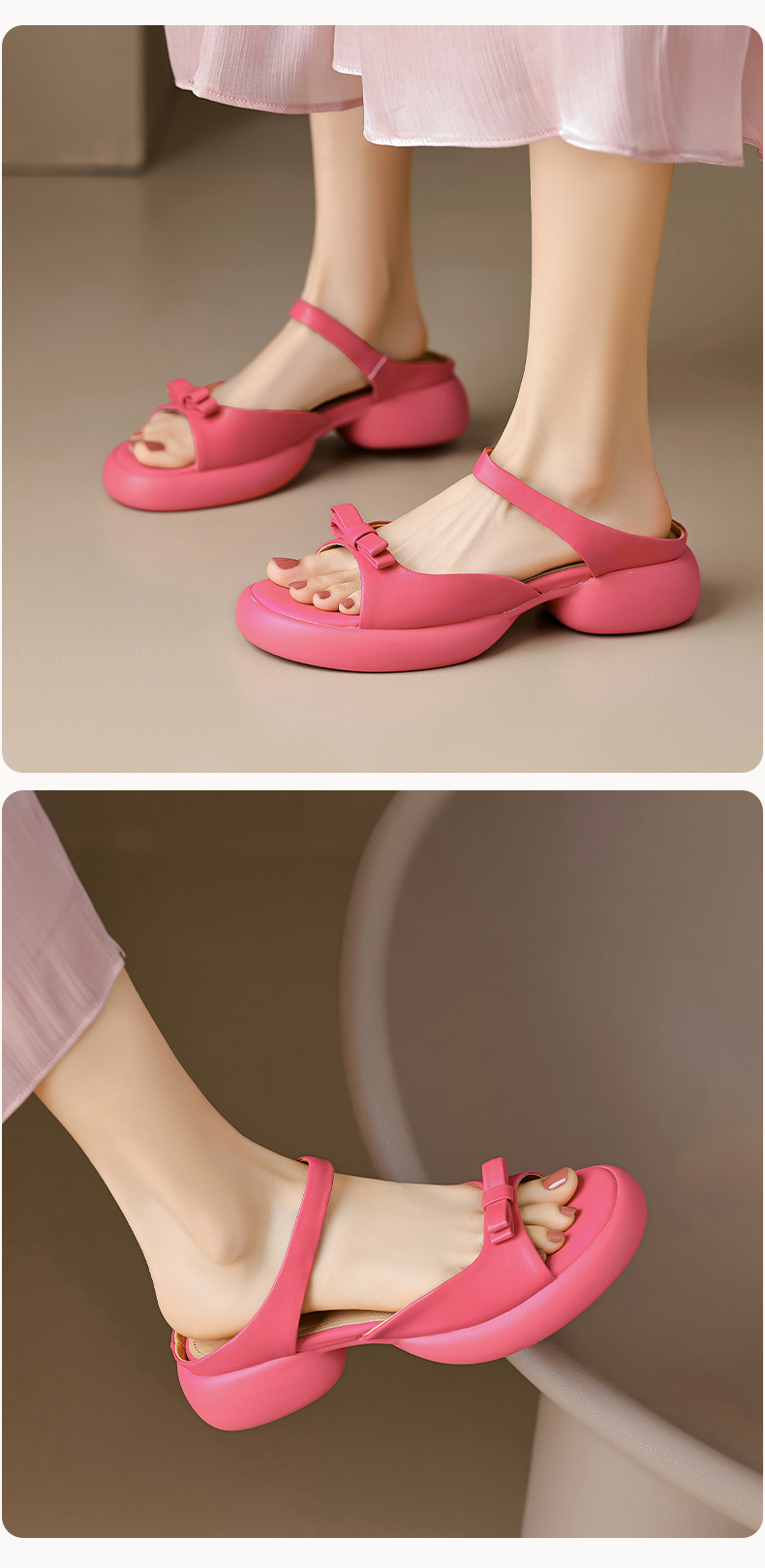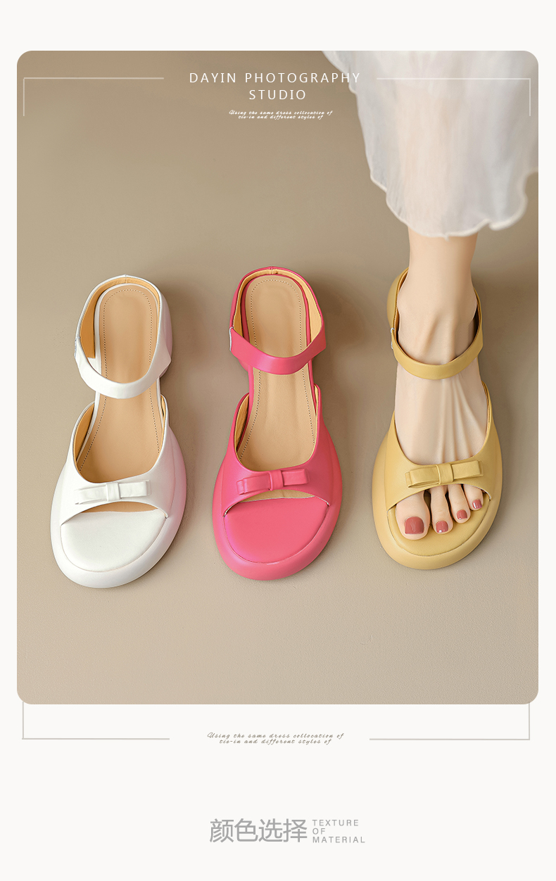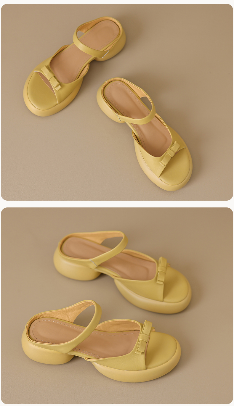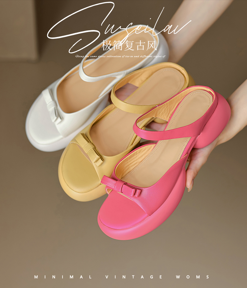 爆款踩屎感,轻便厚底蝴蝶结一字带凉拖鞋MLD-D6060