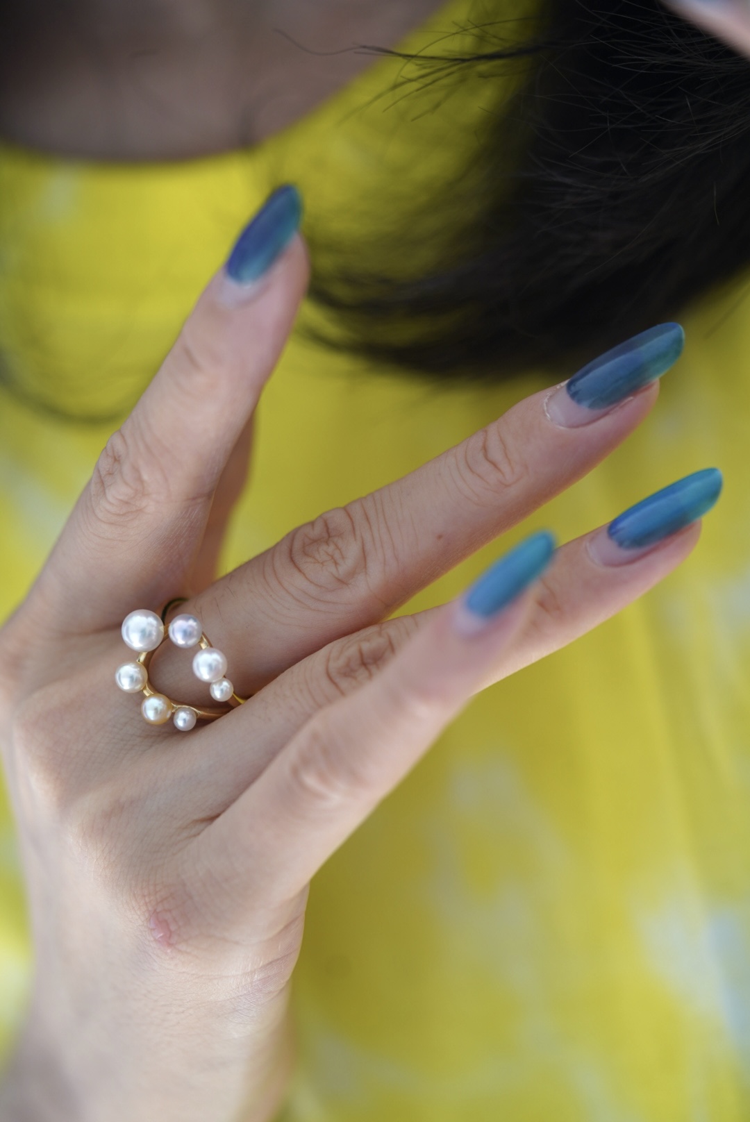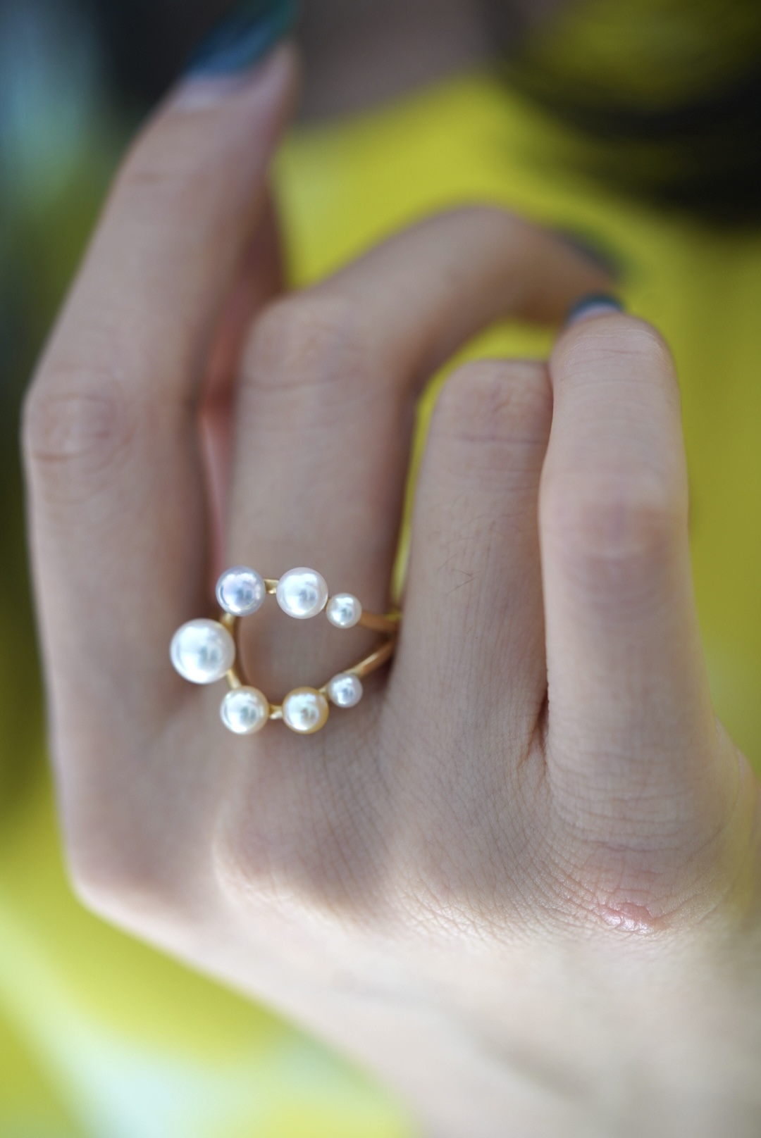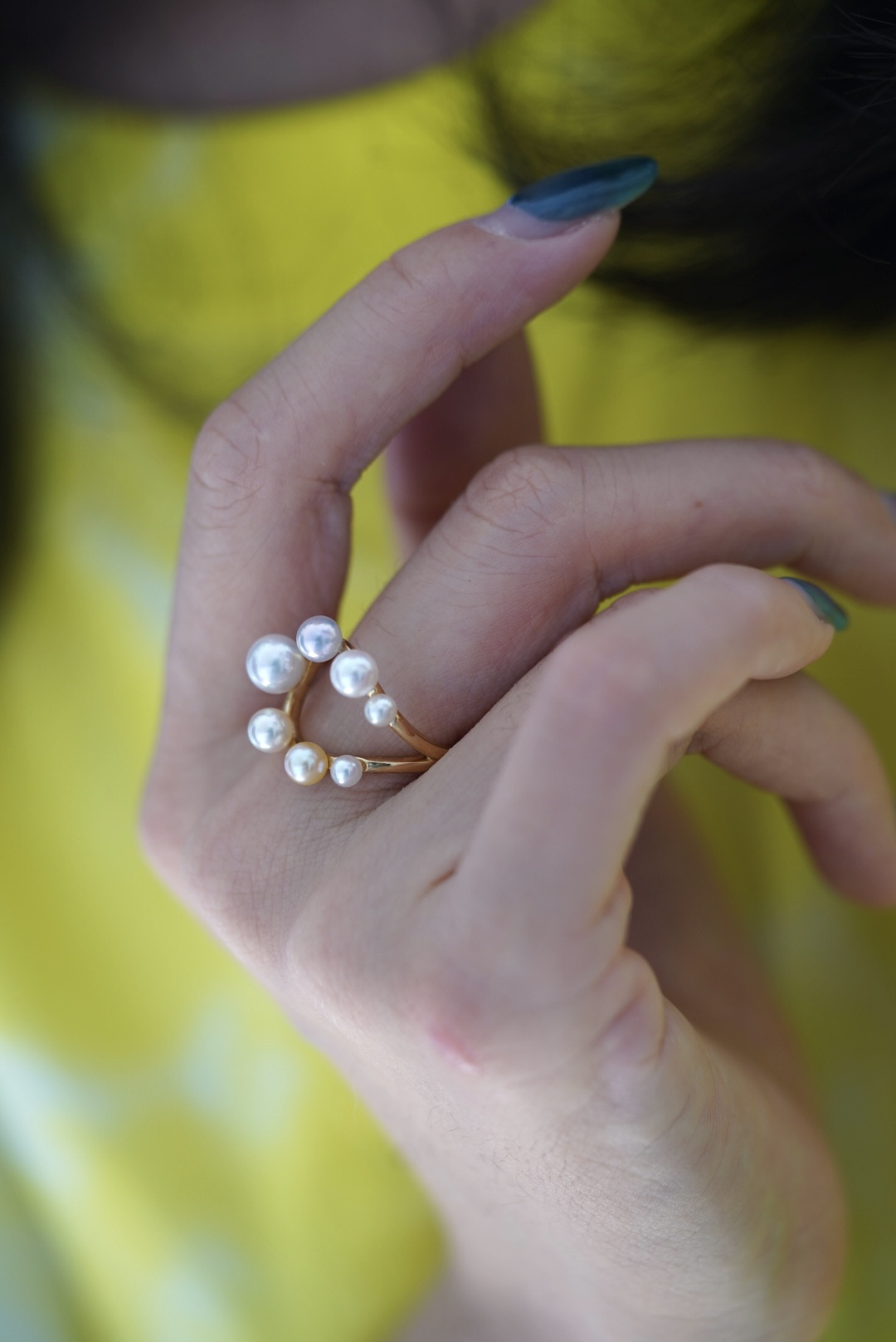 Akoya戒指「马蹄满天星」3-6mm 极美正圆无瑕Akoya糖果珠,颗颗极光风格时尚现代这款设计显手长显手细2999🉐