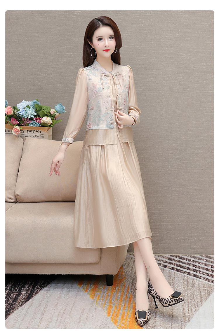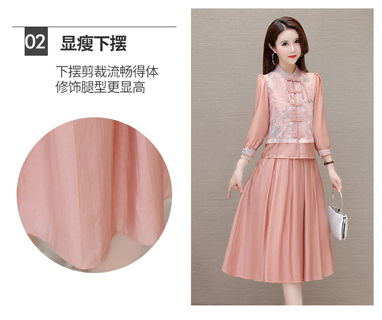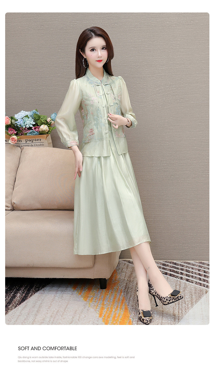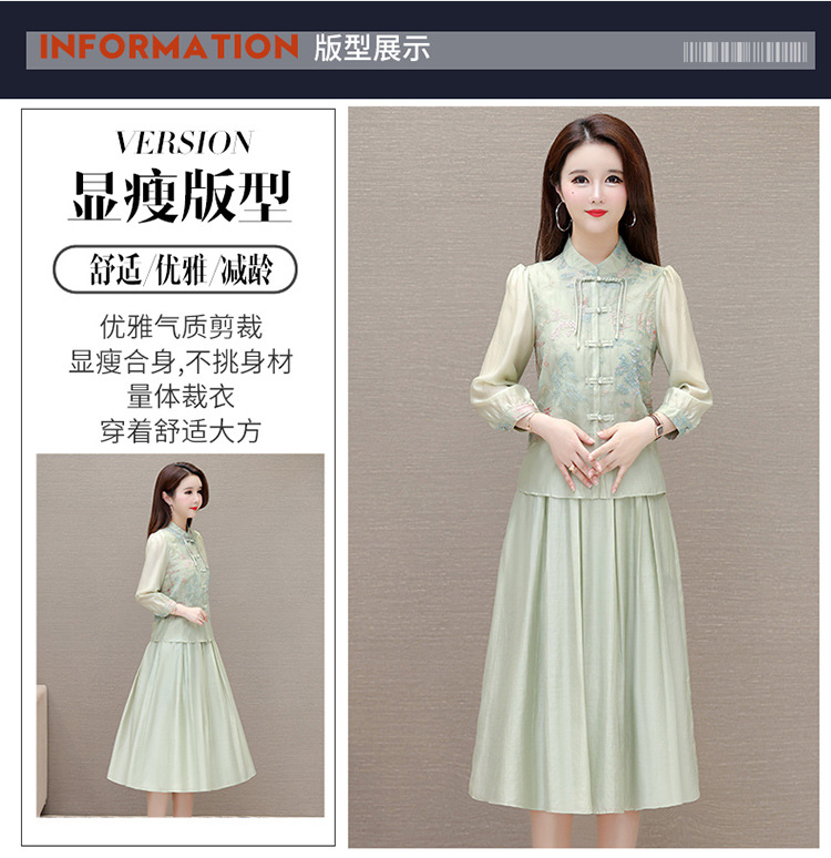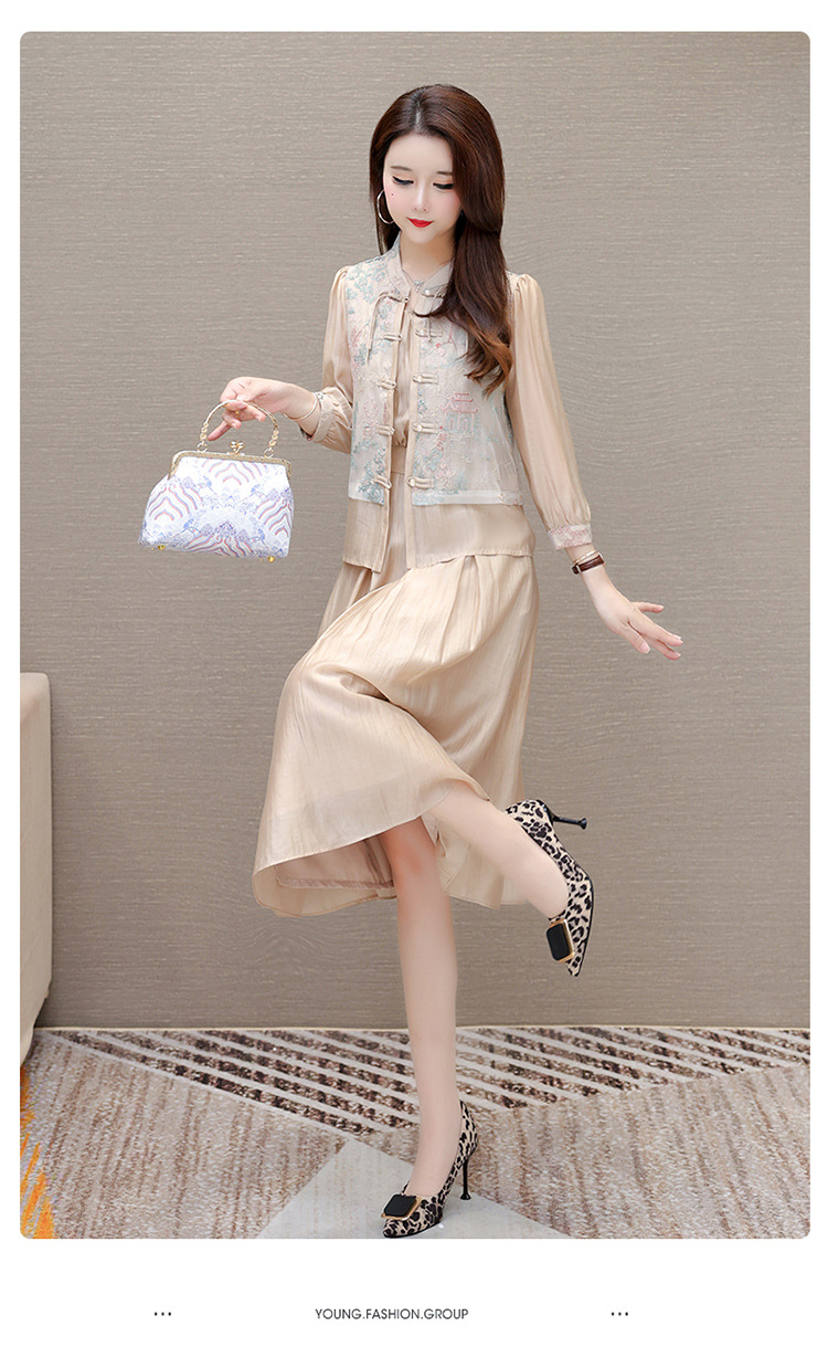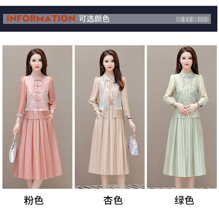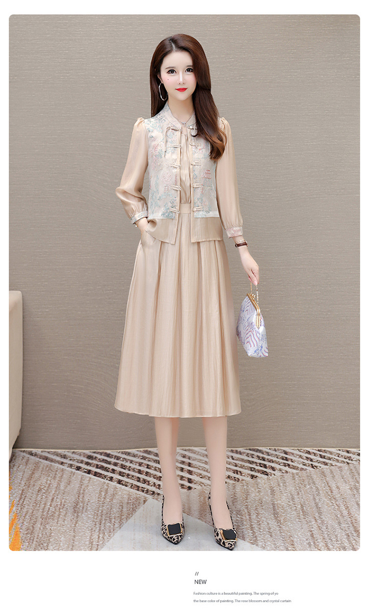 新中式国风盘扣长袖印花,复古外套+内搭无袖中长款连衣裙两件套QYM-JJ-6628163-Y
