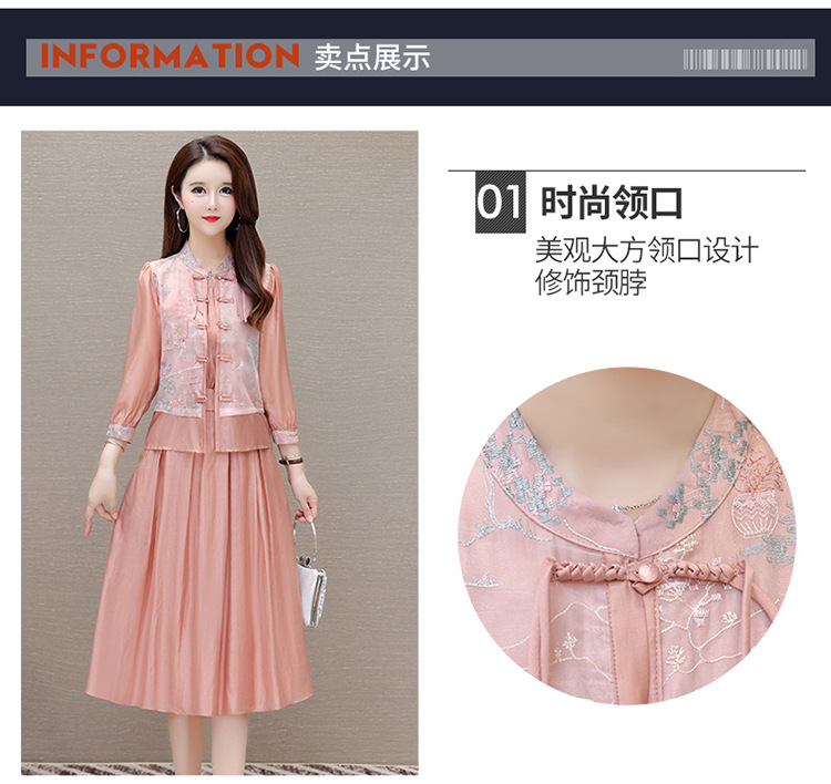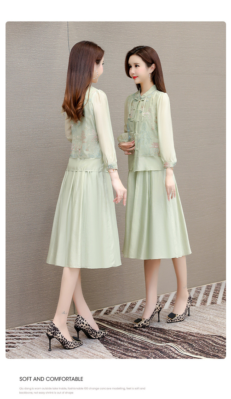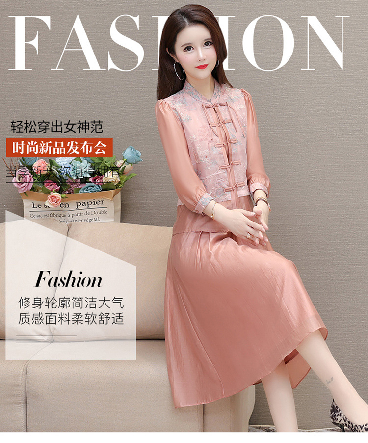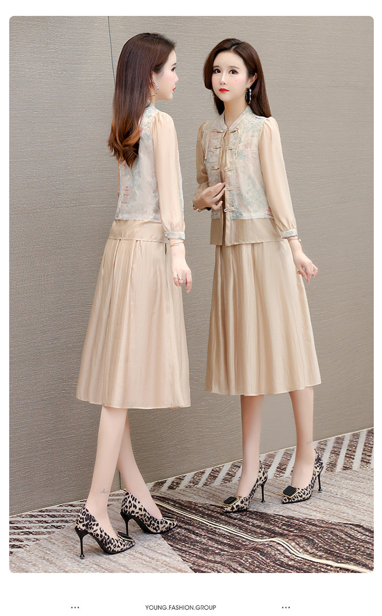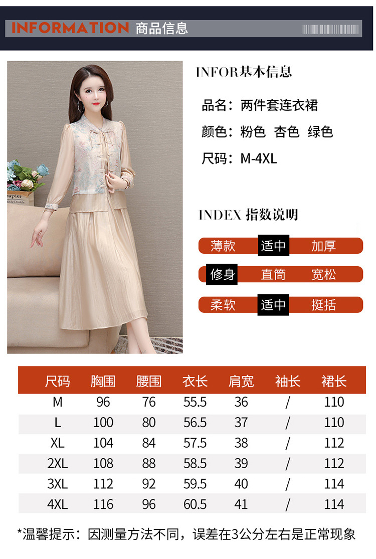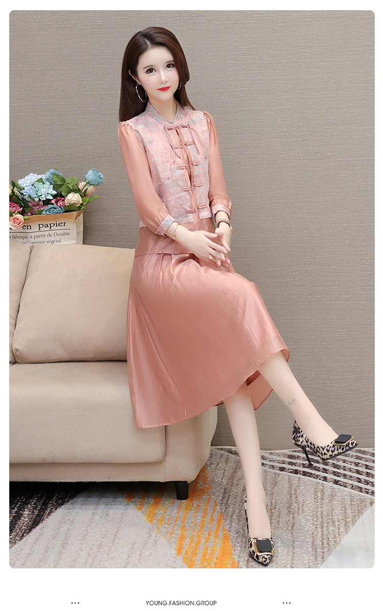 新中式国风盘扣长袖印花,复古外套+内搭无袖中长款连衣裙两件套QYM-JJ-6628163-Y