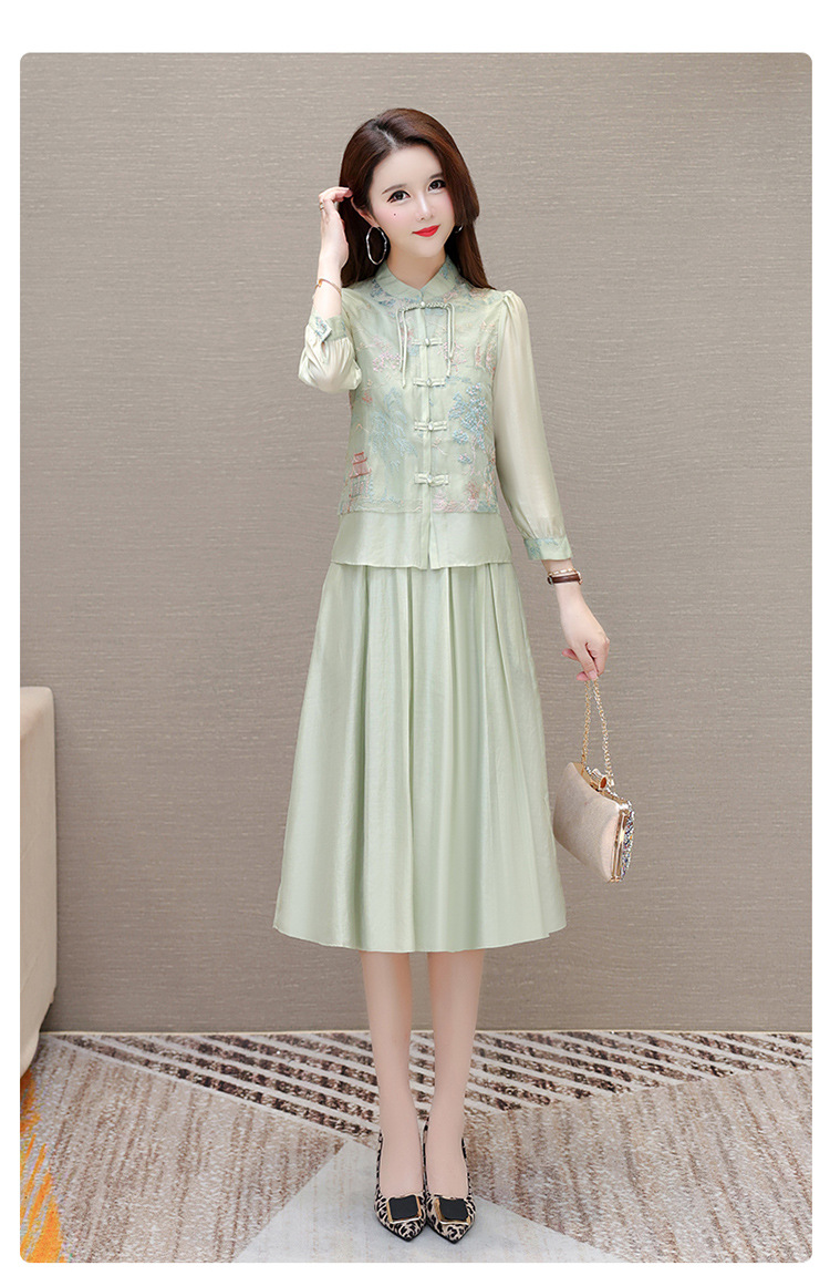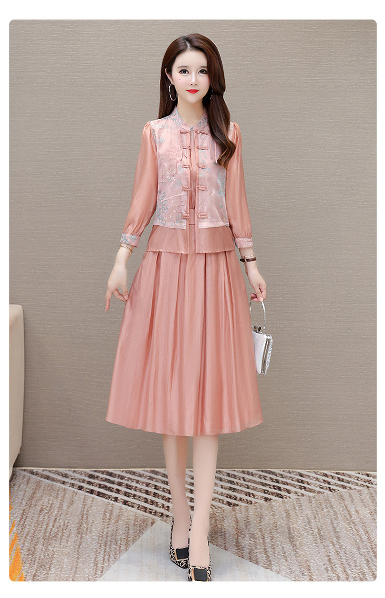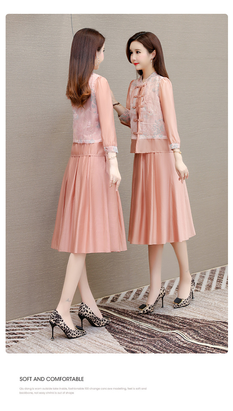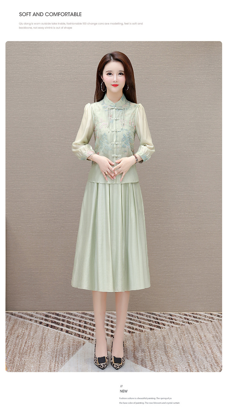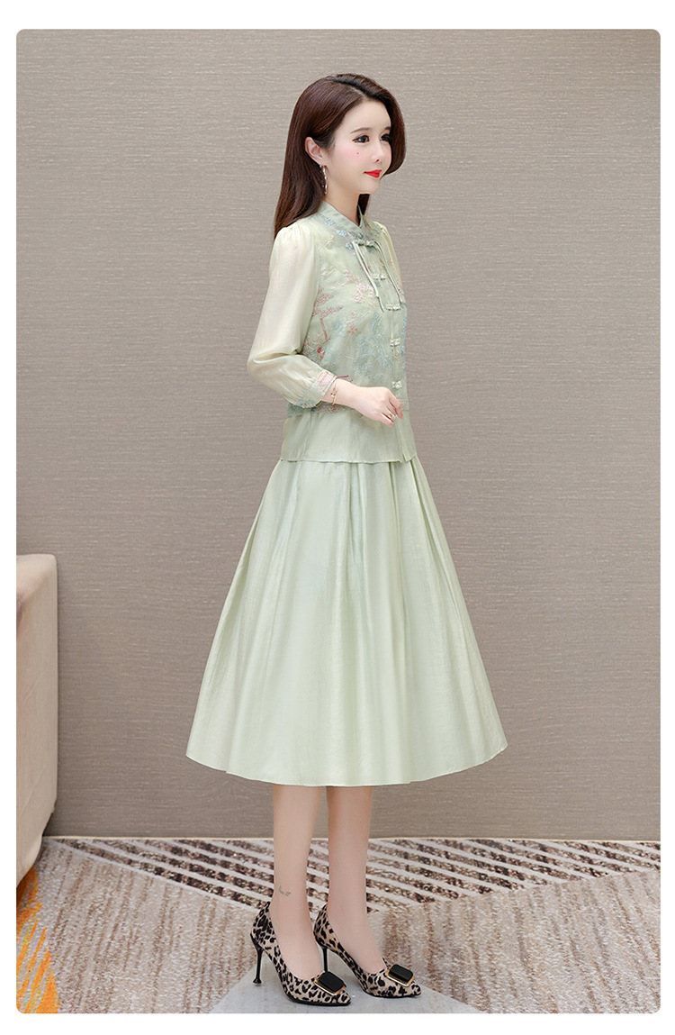 新中式国风盘扣长袖印花,复古外套+内搭无袖中长款连衣裙两件套QYM-JJ-6628163-Y
