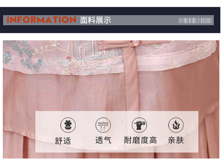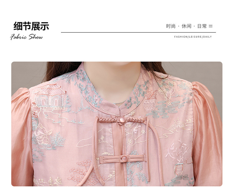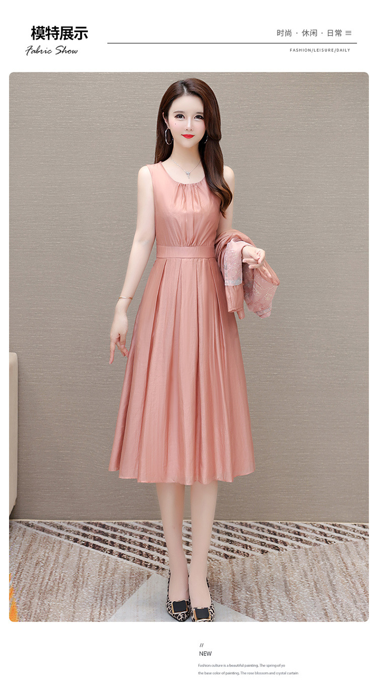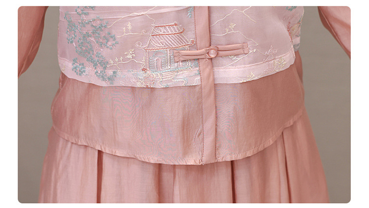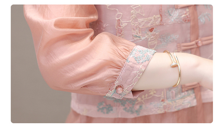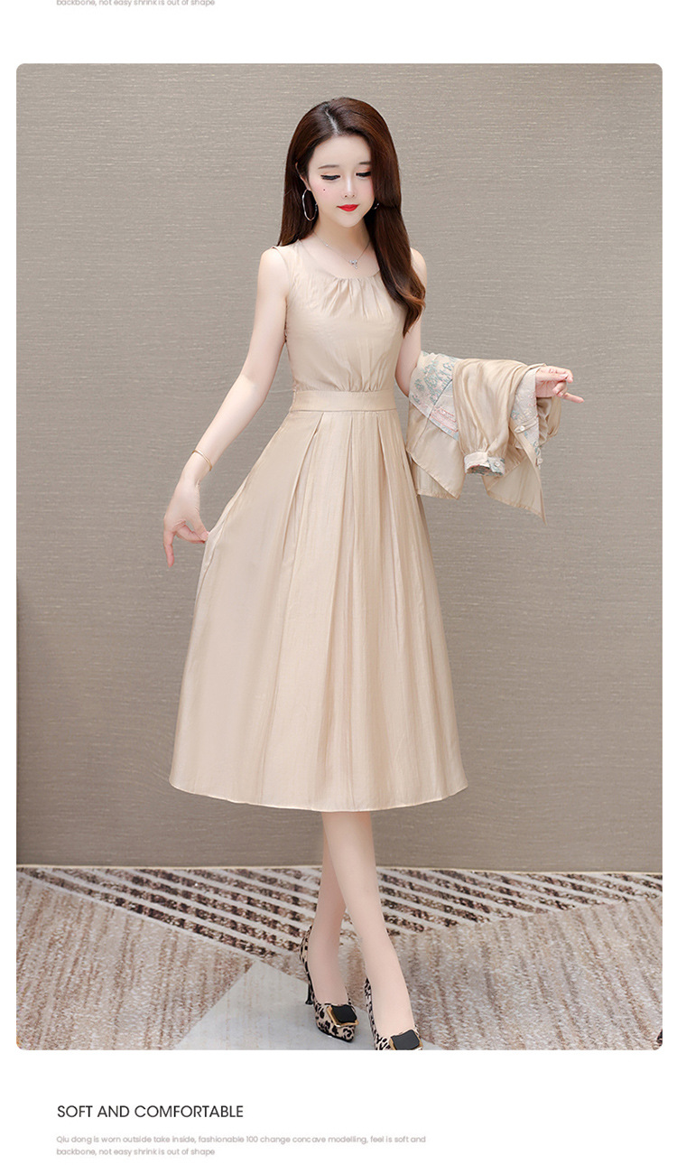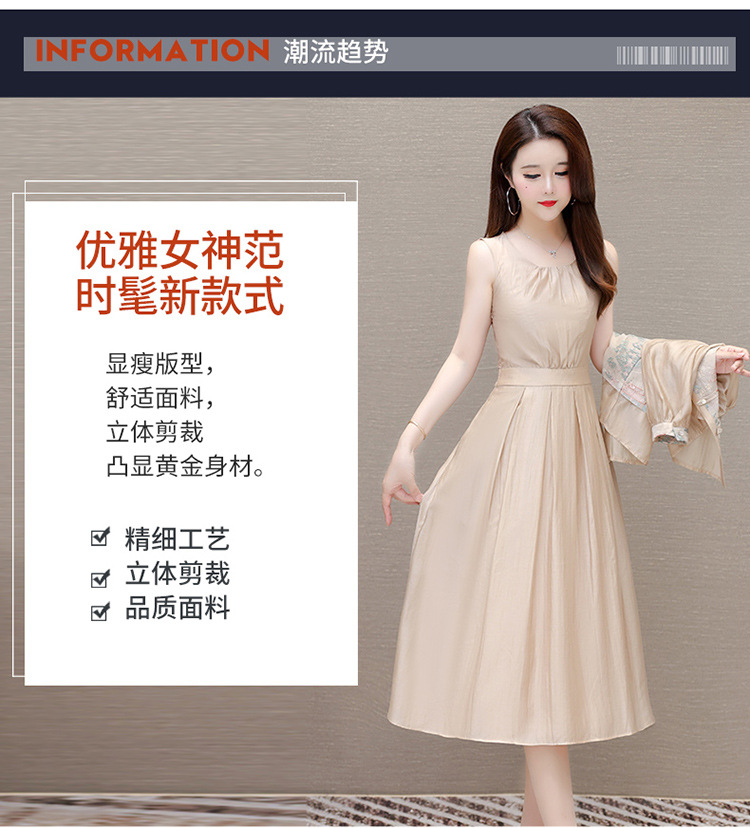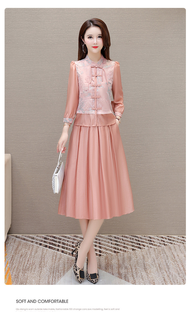 新中式国风盘扣长袖印花,复古外套+内搭无袖中长款连衣裙两件套QYM-JJ-6628163-Y