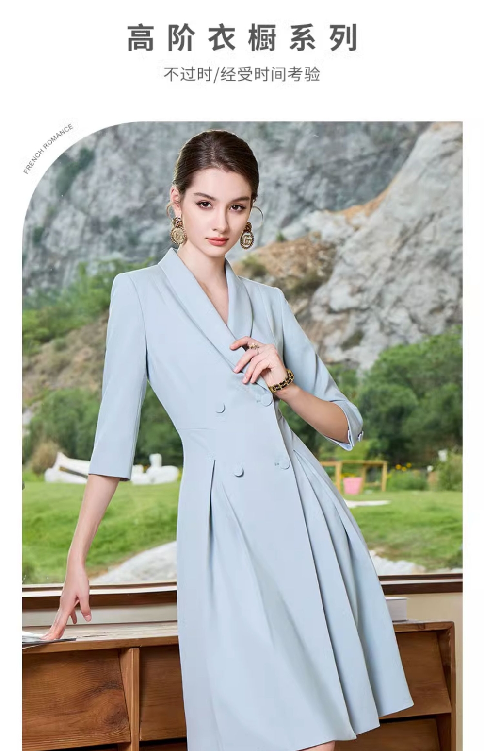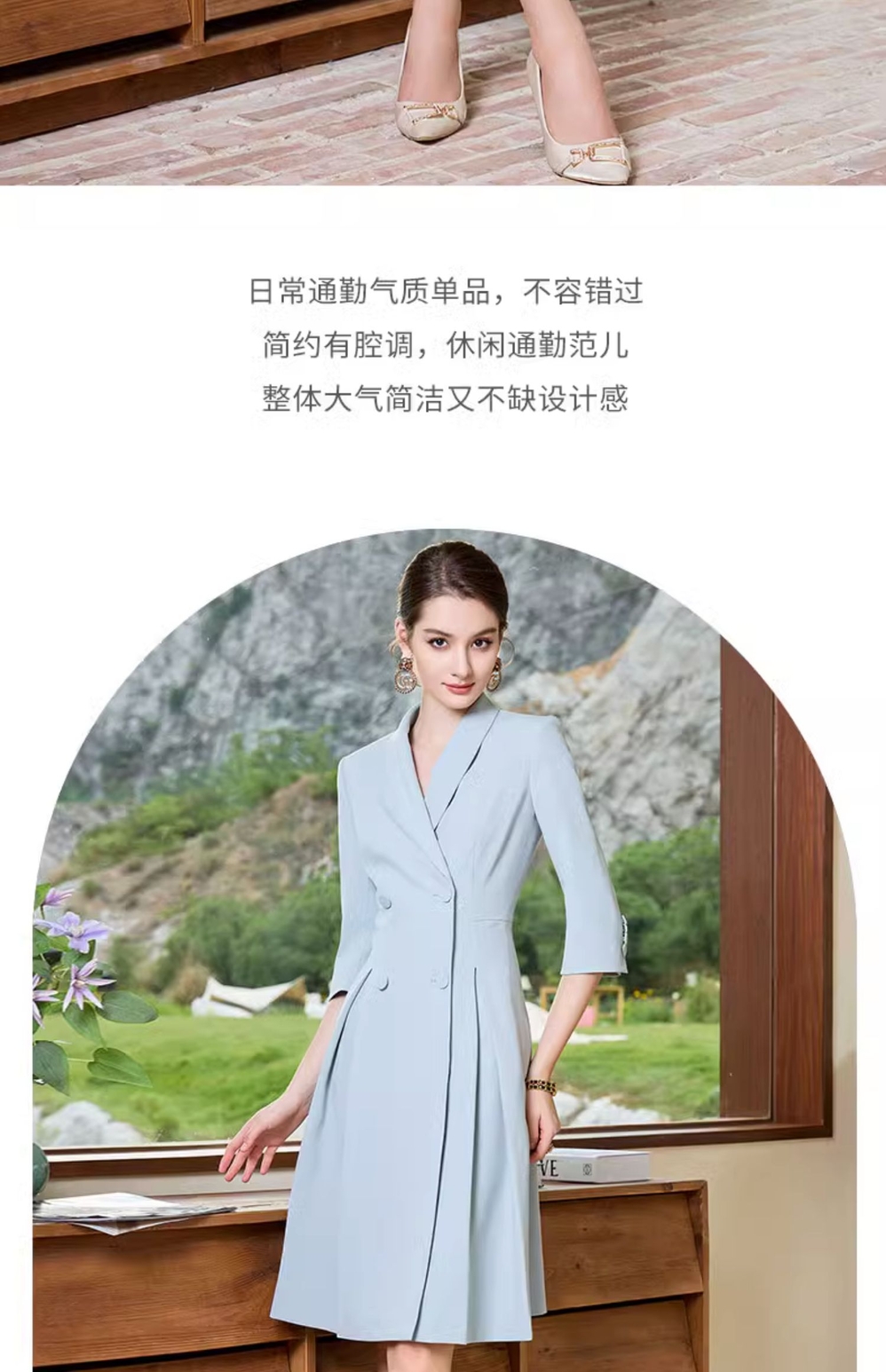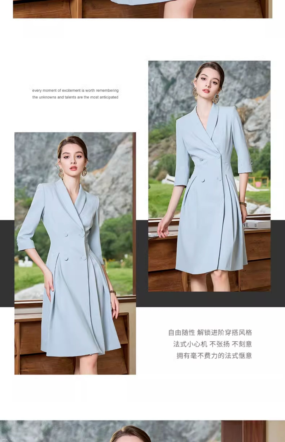 IWY/正式场合职业连衣裙女夏季蓝色美容院西装裙气质高端Q963