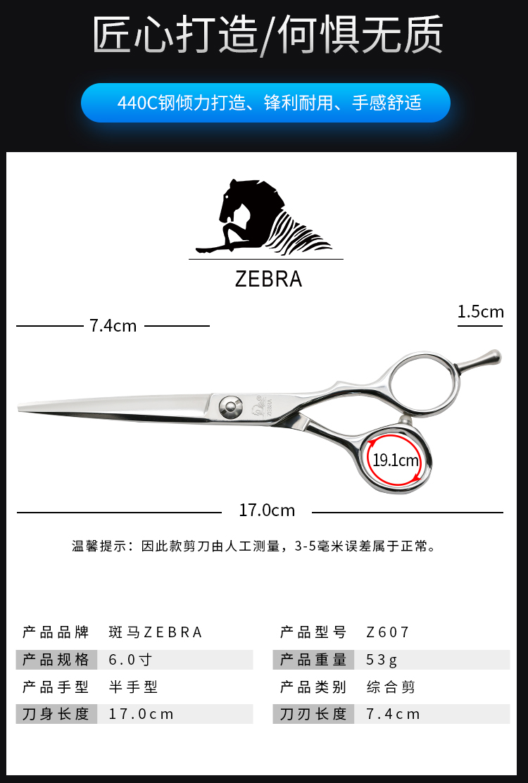 ZEBRA斑马 剪刀 Z607 锋利/直发/刘海/结构剪/线条剪/半手型/平剪/6.0寸