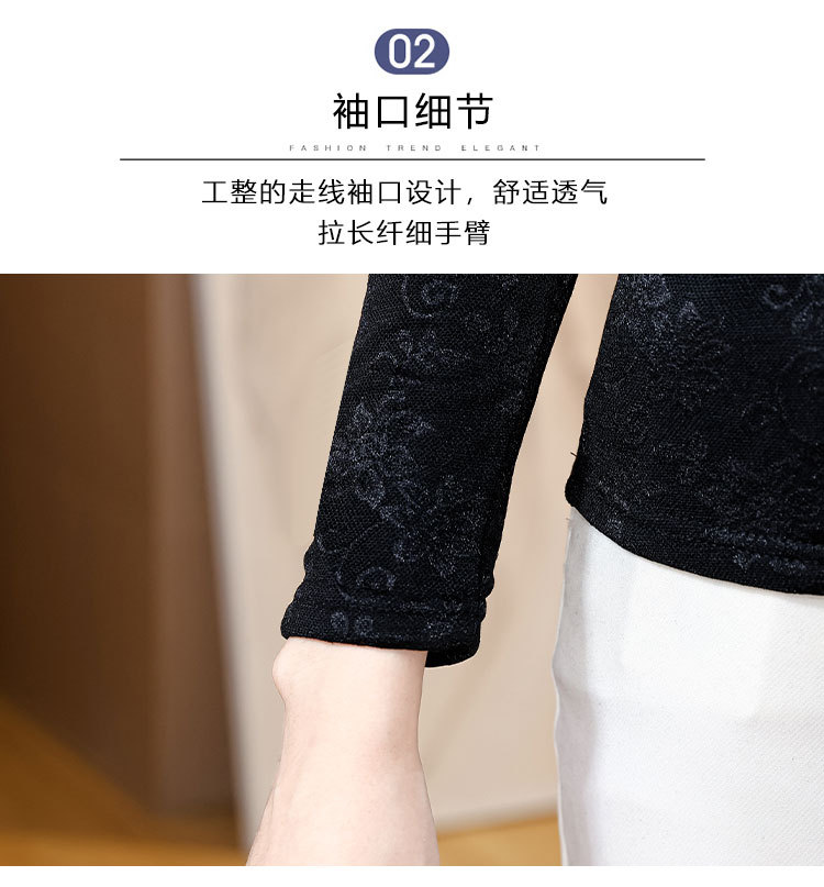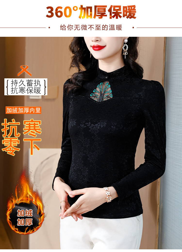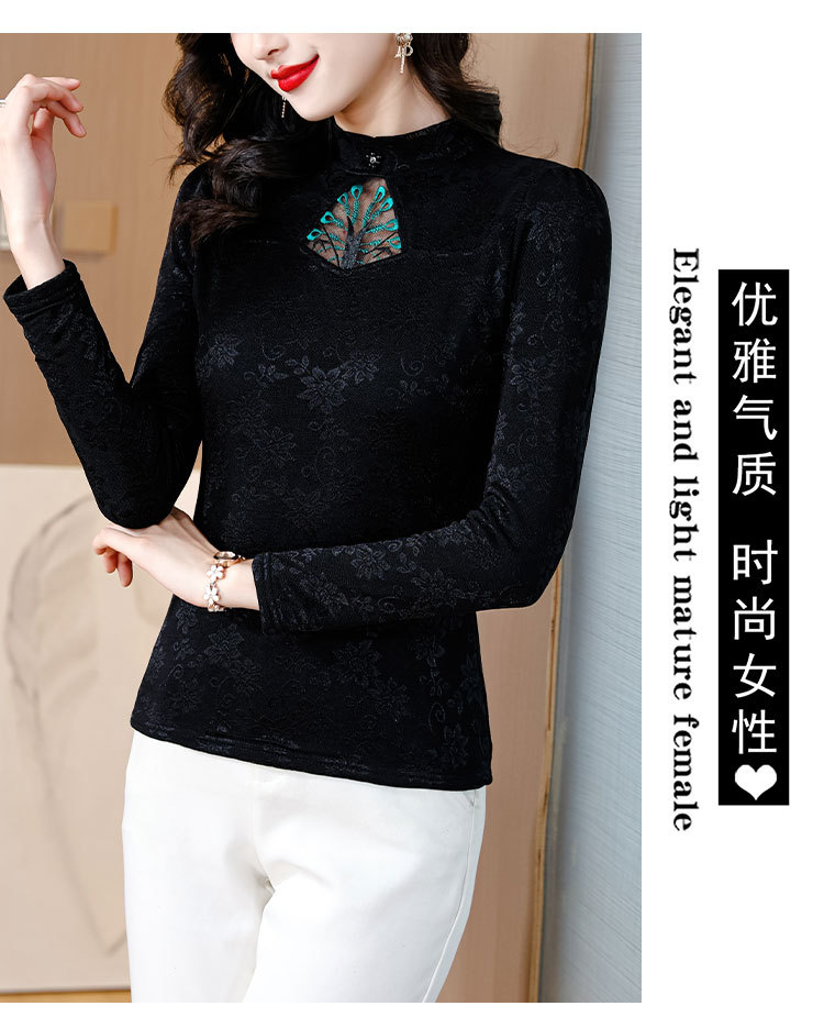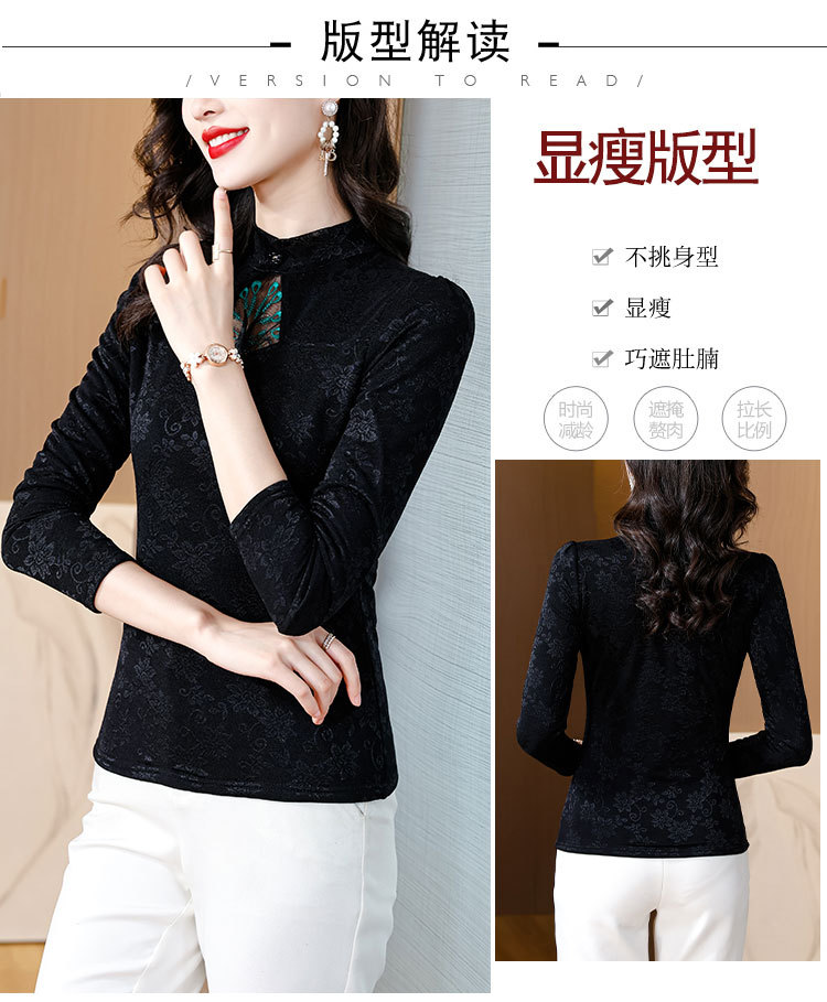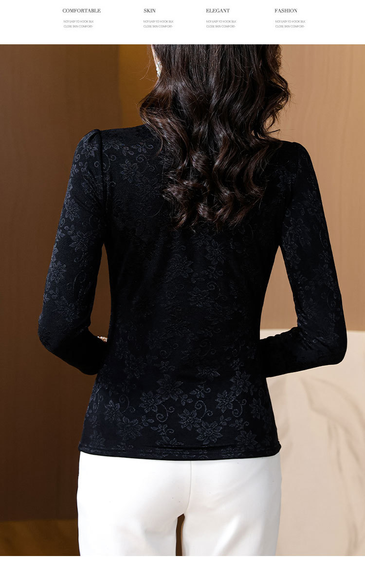 蕾丝打底衫内搭,新款气质黑色打底衣长袖上衣加绒保暖小衫KQL-B41N6274