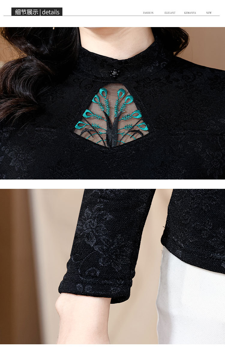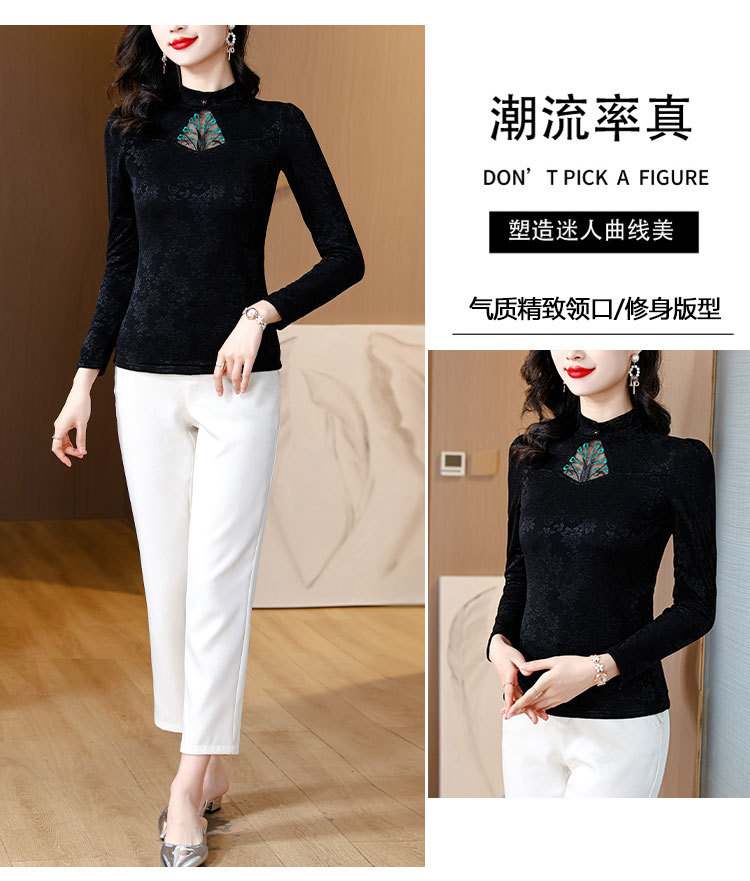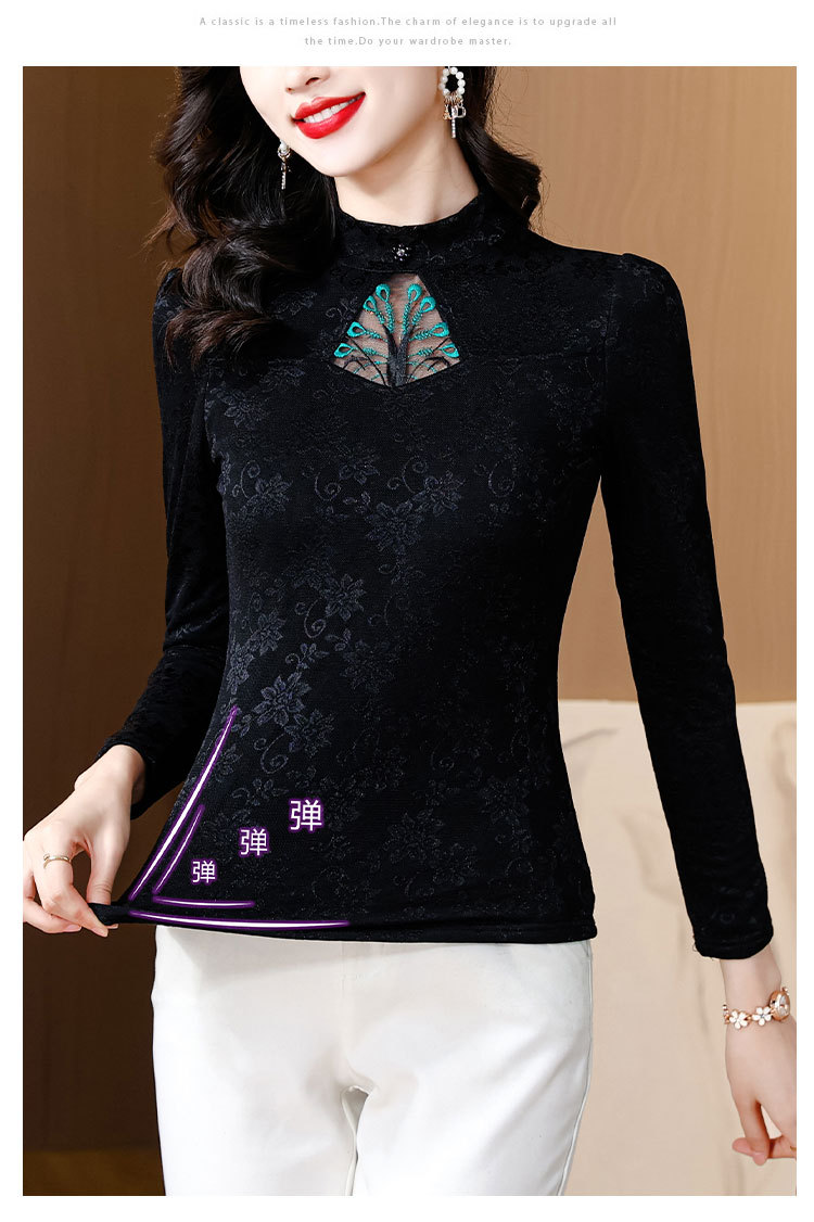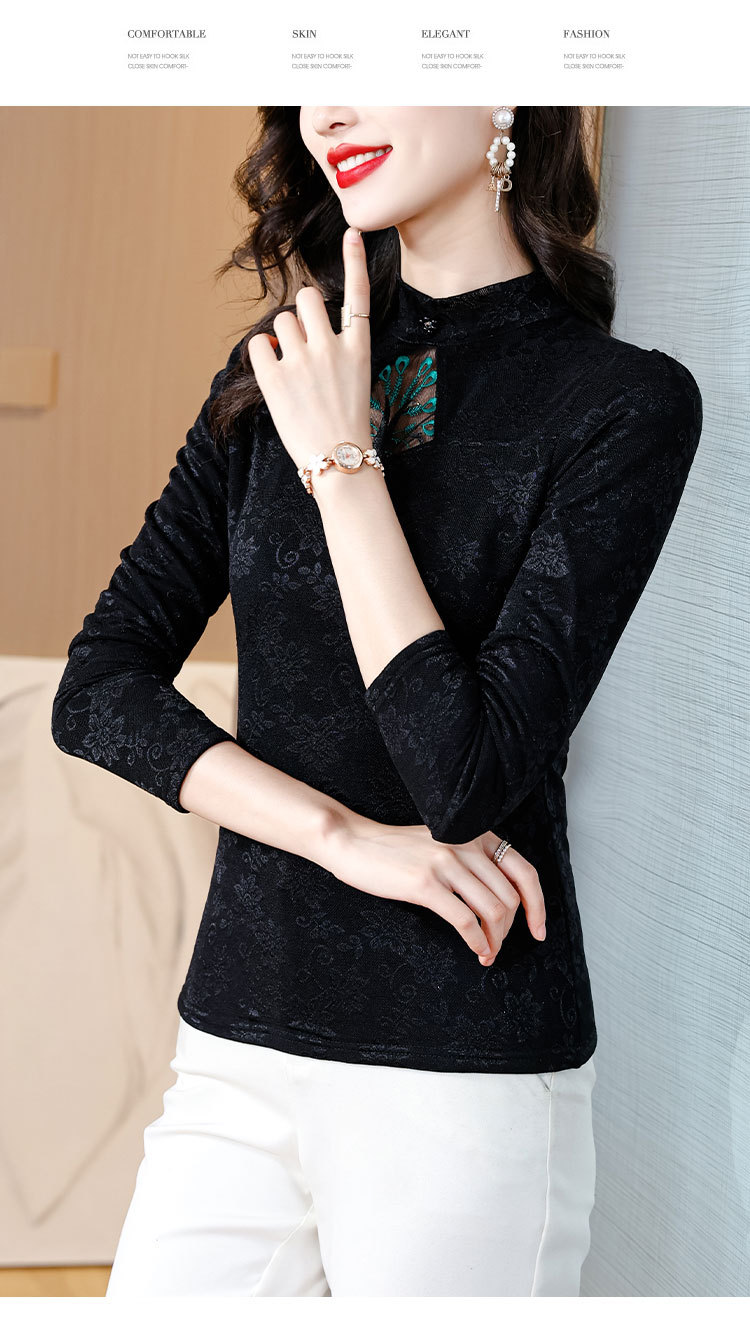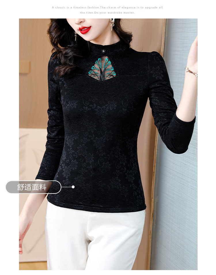 蕾丝打底衫内搭,新款气质黑色打底衣长袖上衣加绒保暖小衫KQL-B41N6274