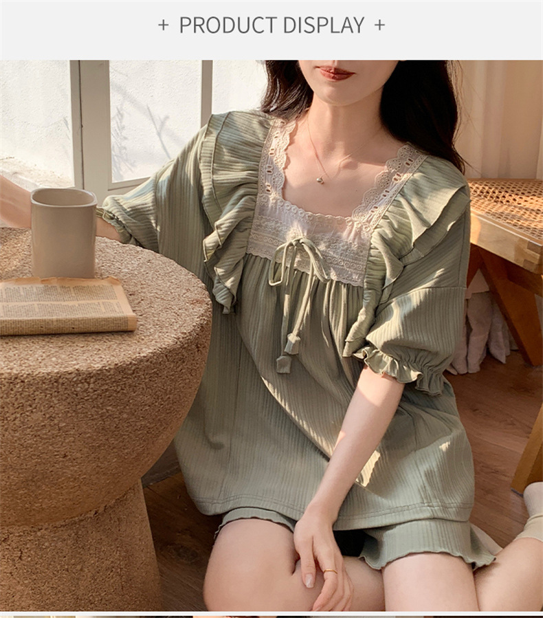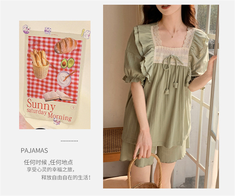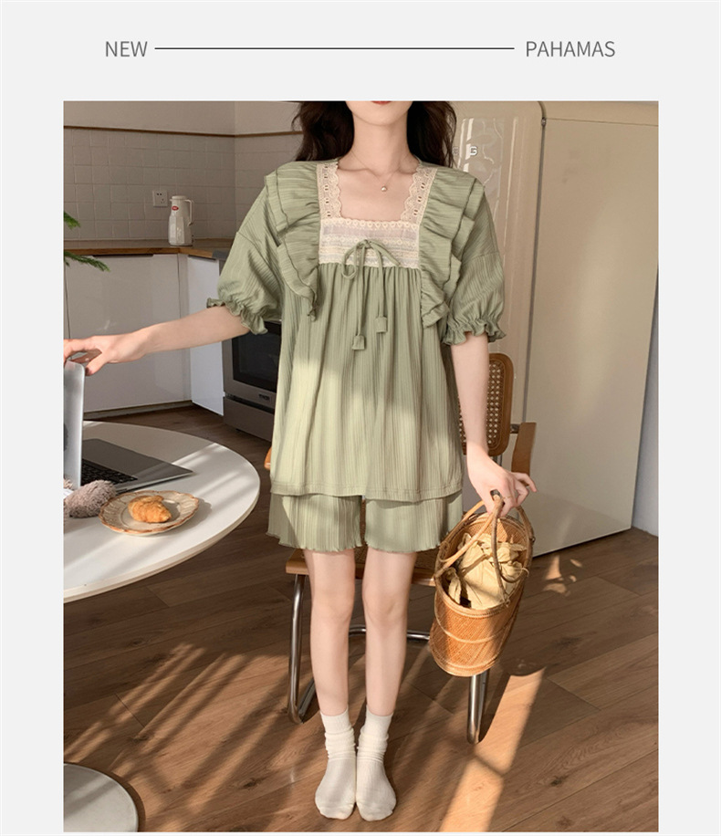 新款夏季【女士睡衣 带胸垫短袖短裤】高颜值少女两件套家居服 可外穿睡衣