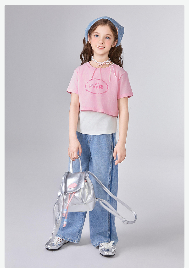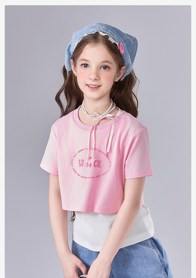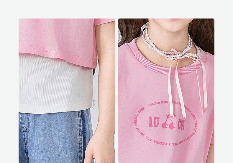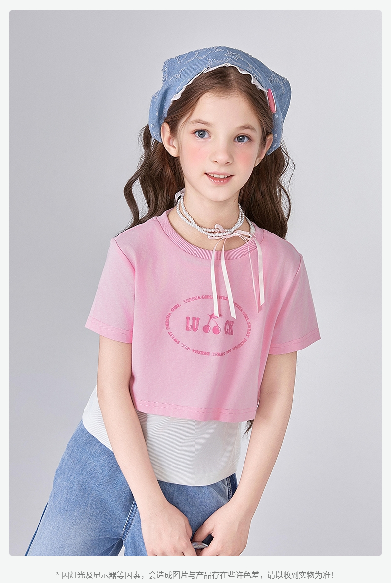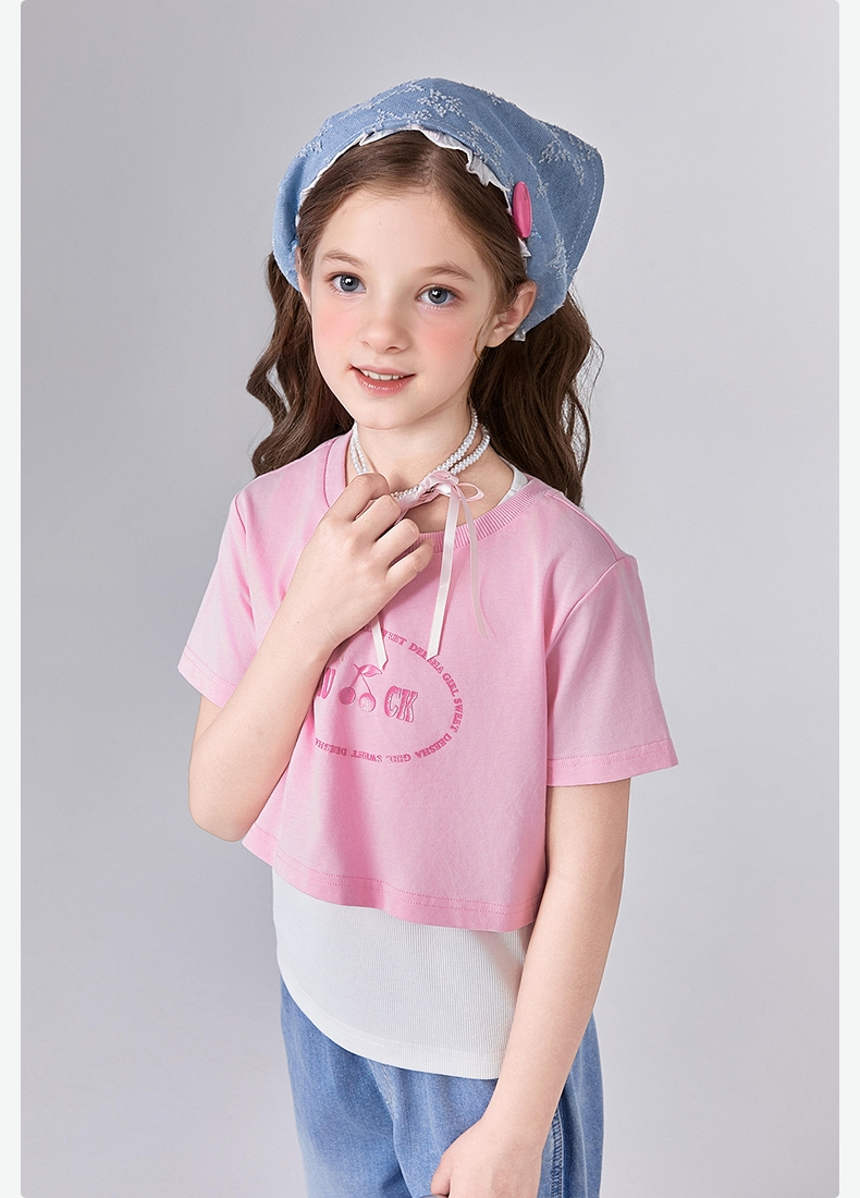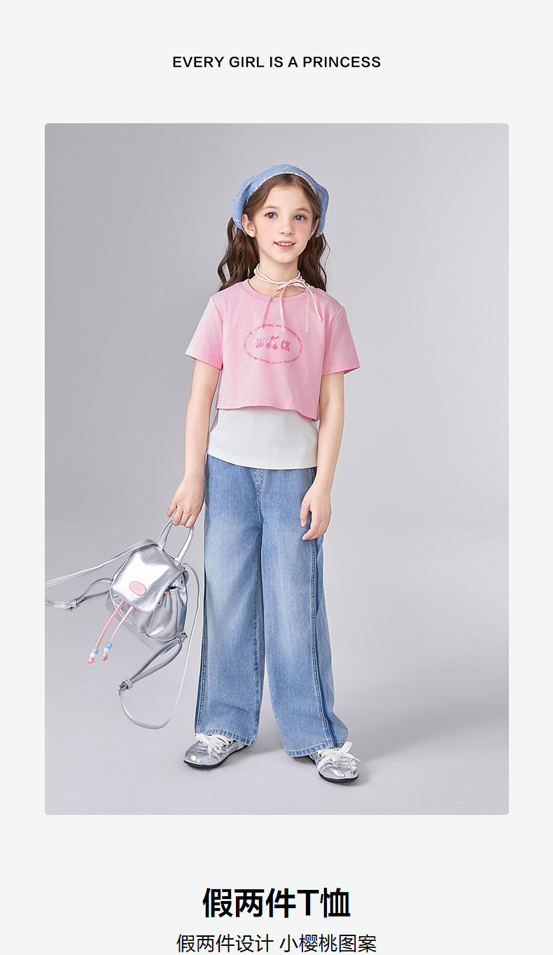 笛莎Deesha 童装女童T恤2025夏新款女童假两件T恤