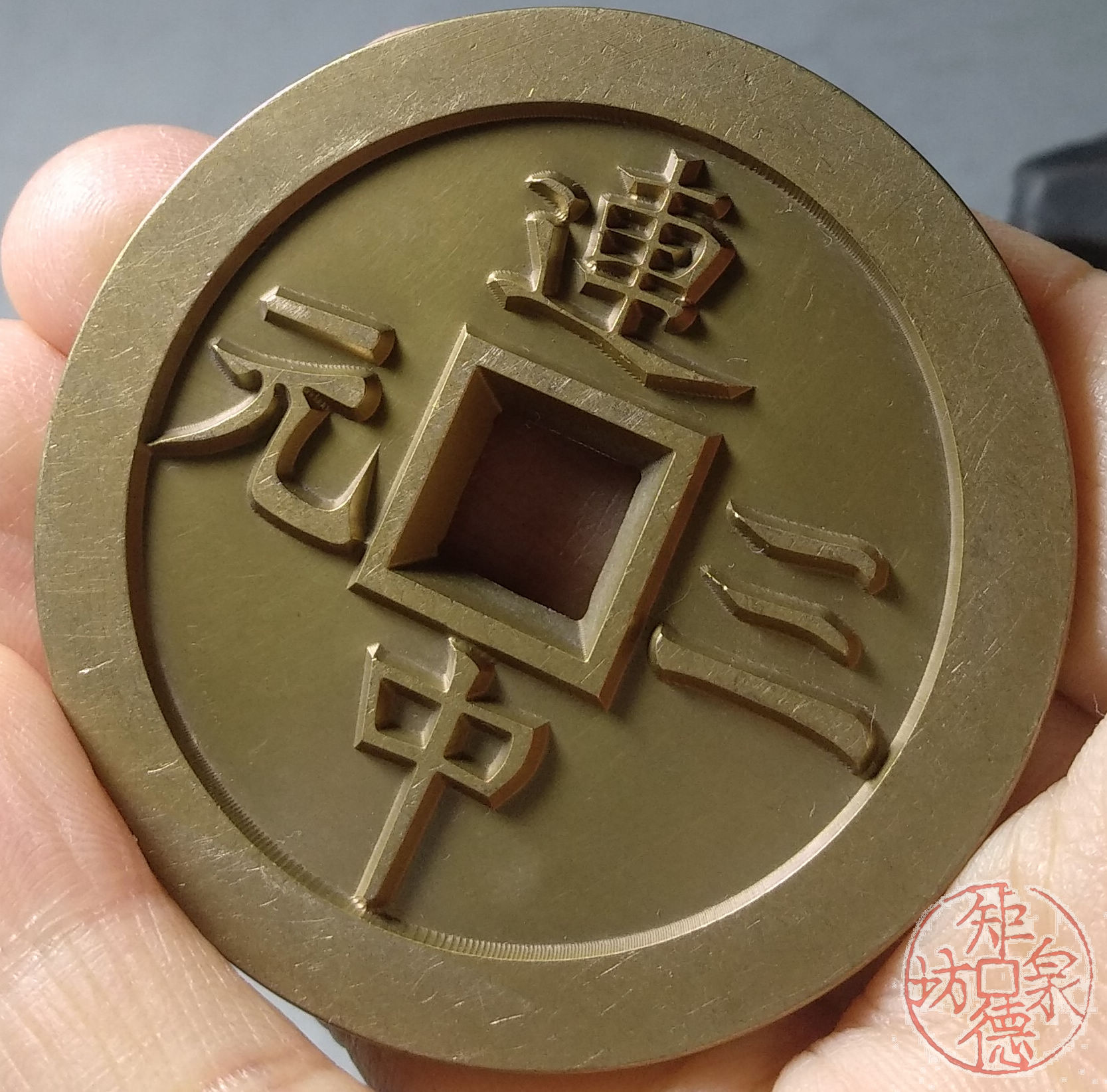 纯铜古法母钱翻砂铸造而成,容易上包浆。可用于文房镇纸、茶宠、杯子托、文玩垫、手把件……