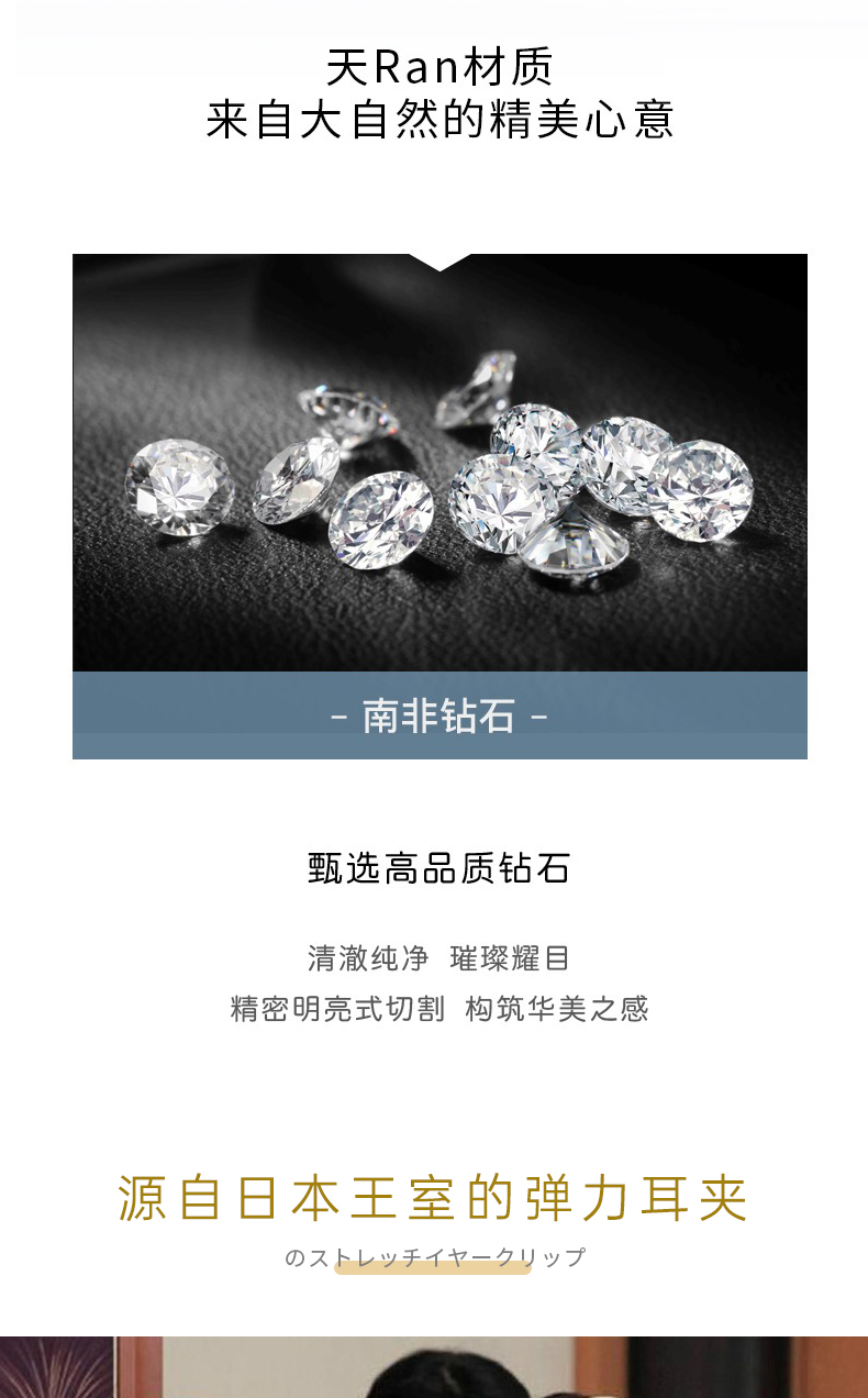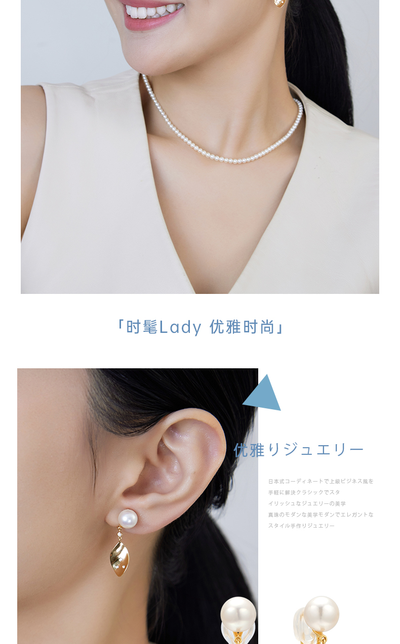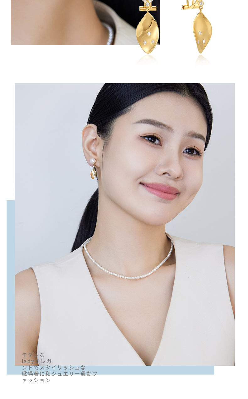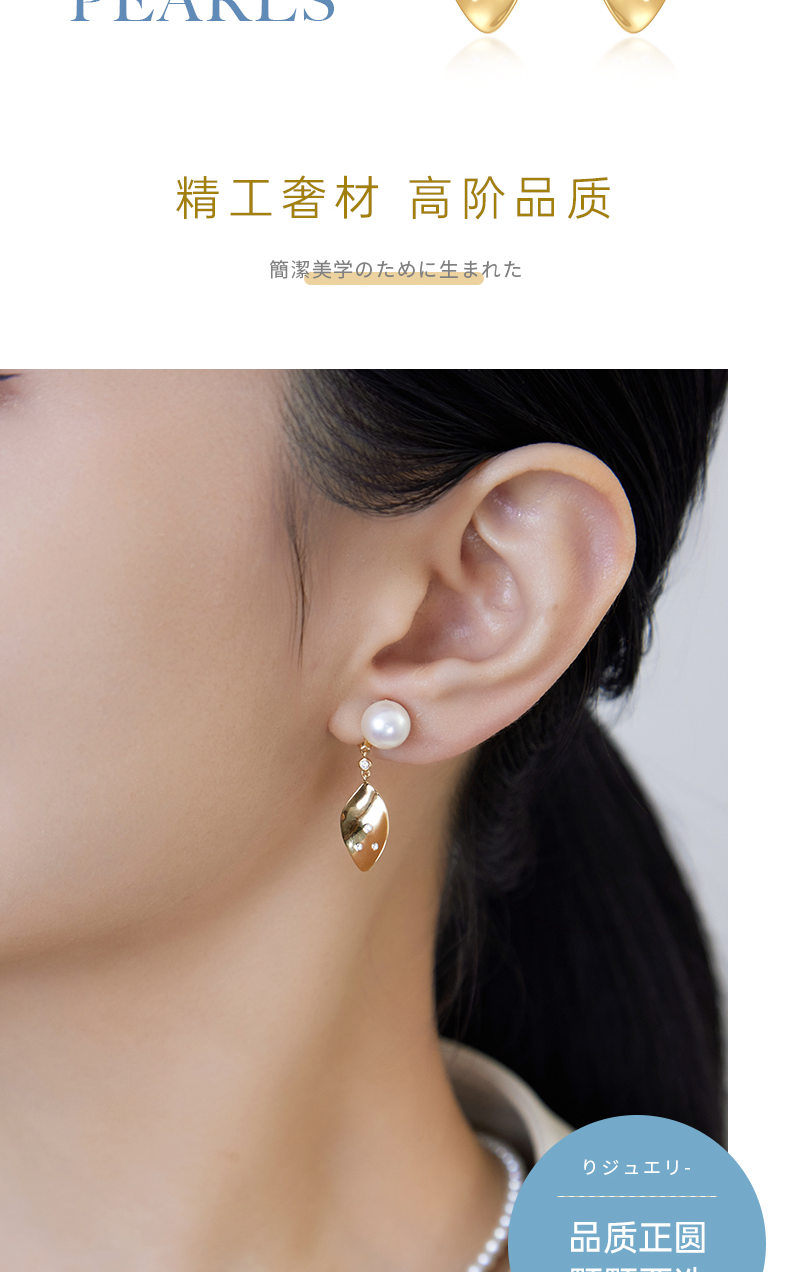 【天猫同款】悦甄18K金Akoya珍珠钻石耳夹 金叶