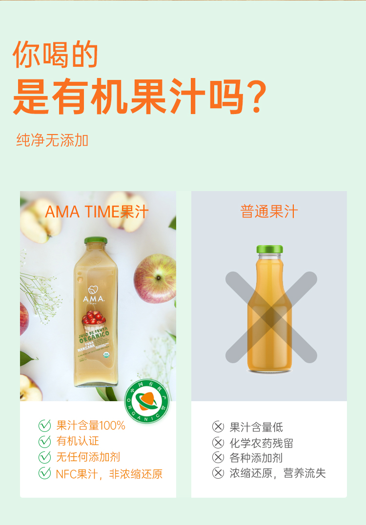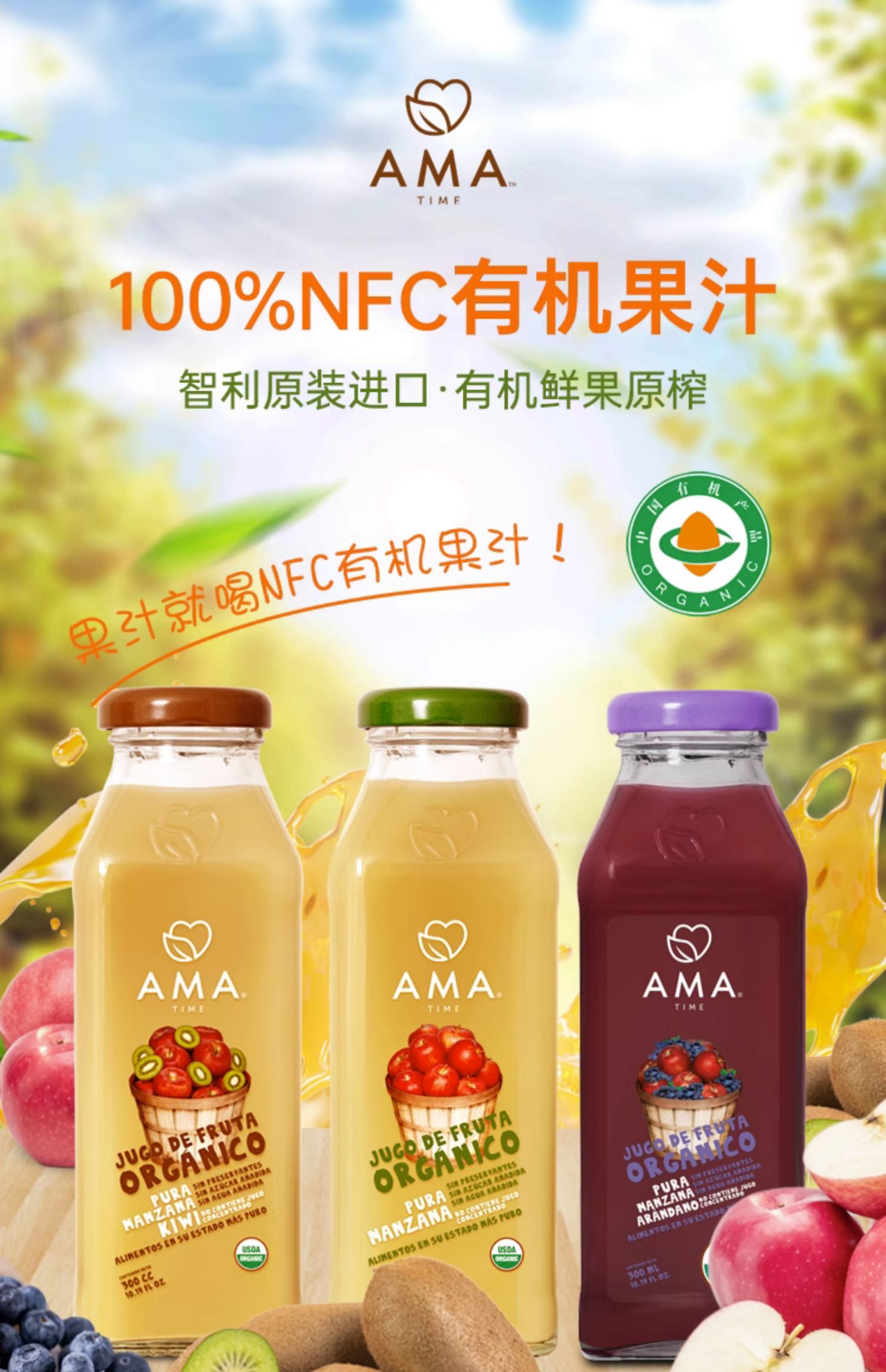 AMATIME有机蓝莓苹果混合果汁/猕猴桃苹果汁300ml 有机NFC果汁不加糖不加水 025584/025583