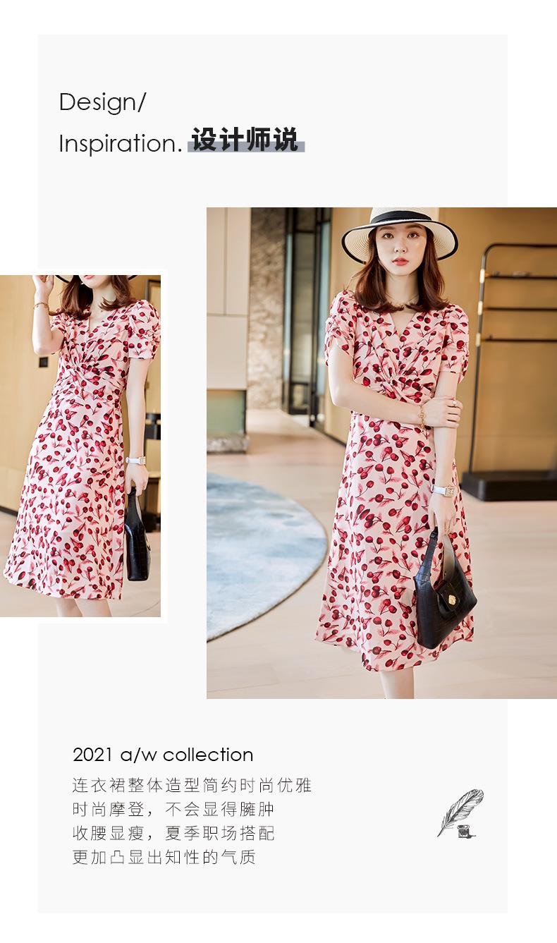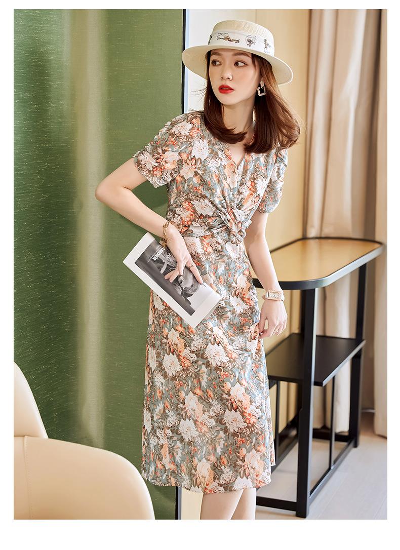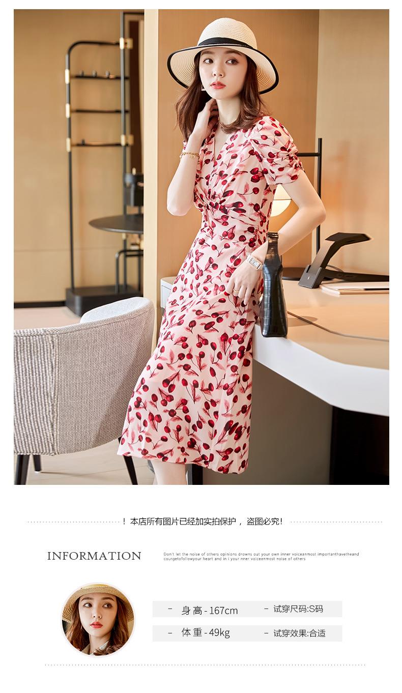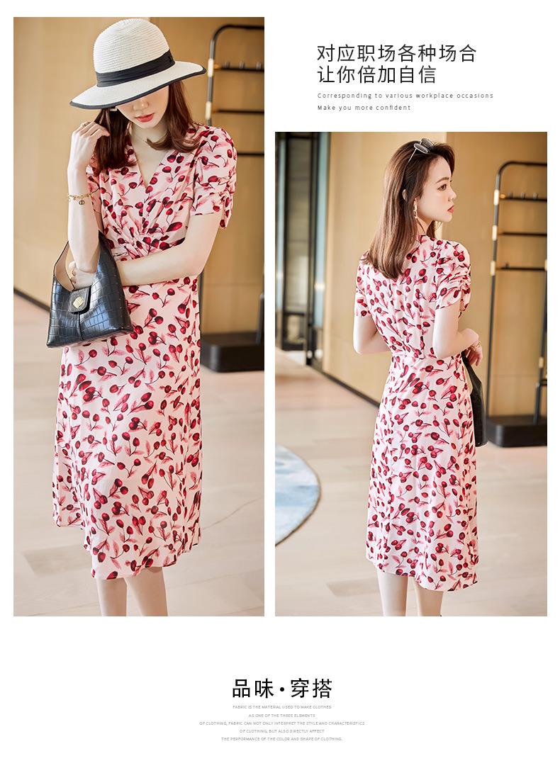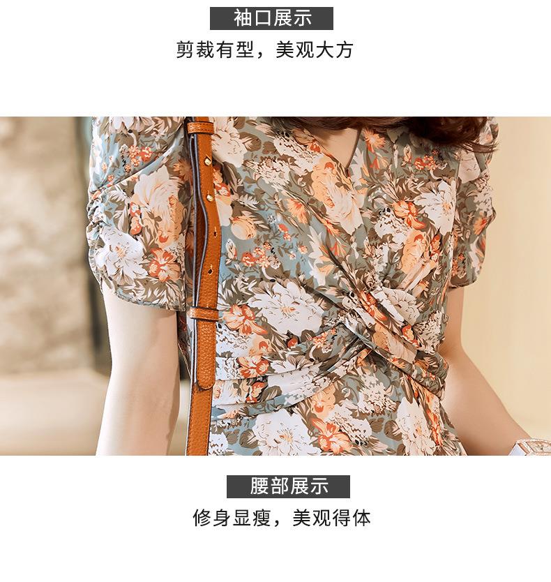 娜璐多 法式碎花连衣裙女2023夏季收腰显瘦遮肉气质小清新中长款雪纺裙