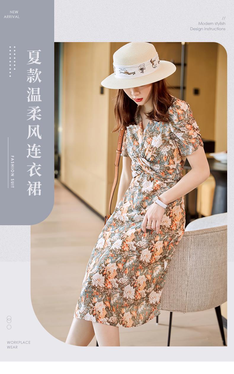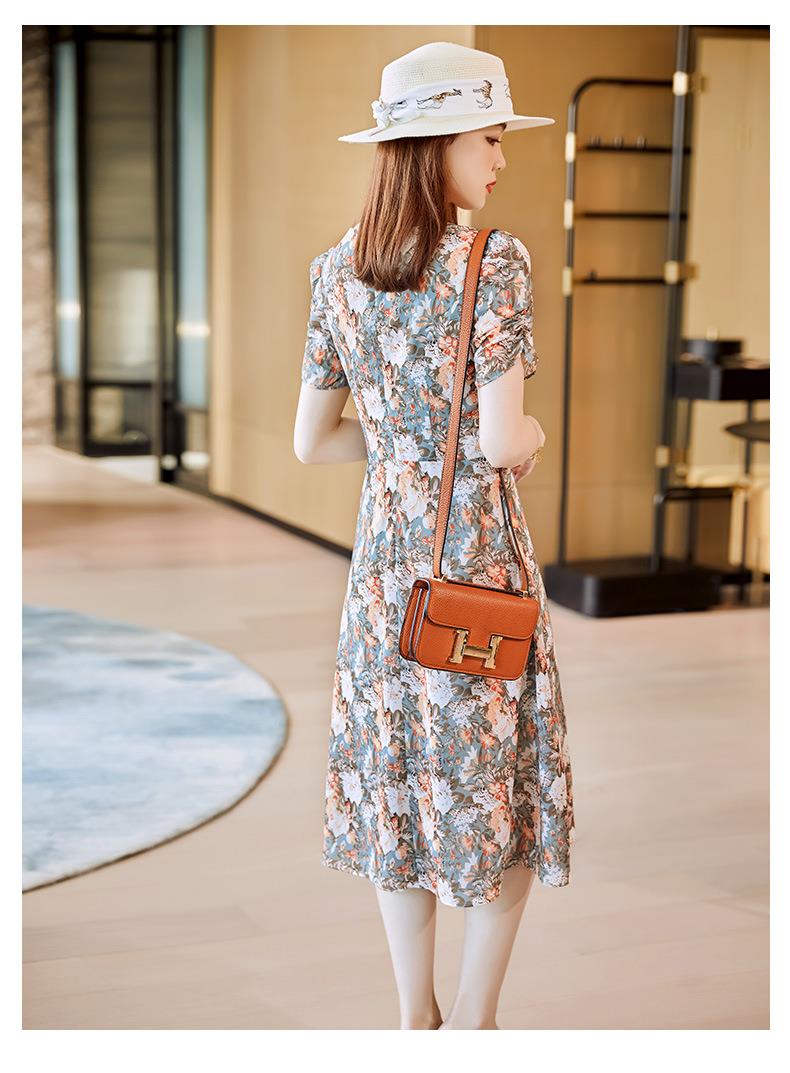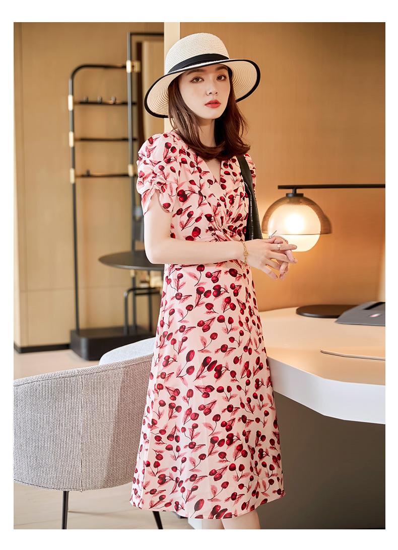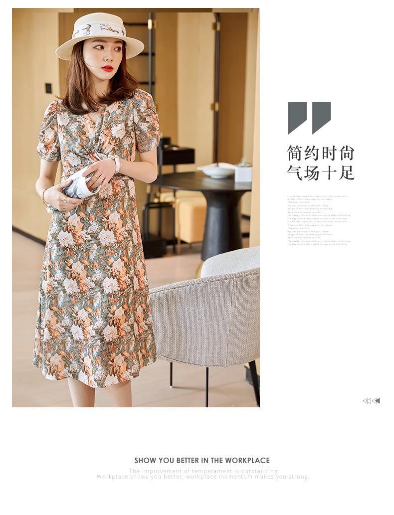娜璐多 法式碎花连衣裙女2023夏季收腰显瘦遮肉气质小清新中长款雪纺裙