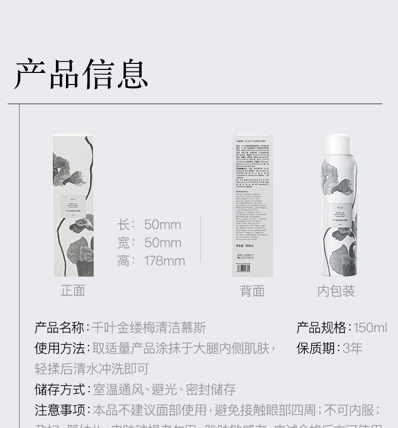 羽心堂 千叶金缕梅清洁慕斯 150ml/瓶
