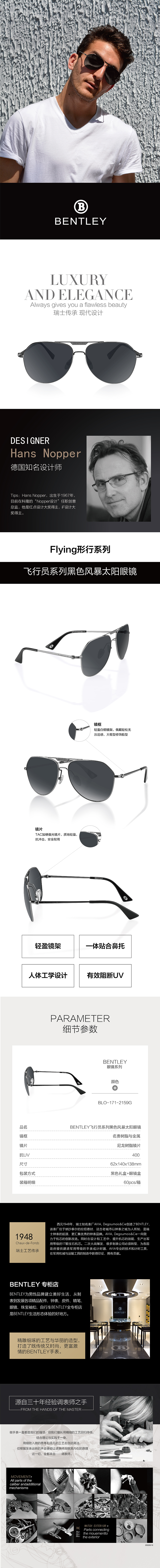 BLO-171-2159G BENTLEY飞行员系列黑色风暴太阳眼镜