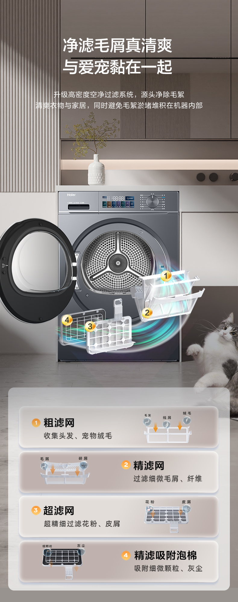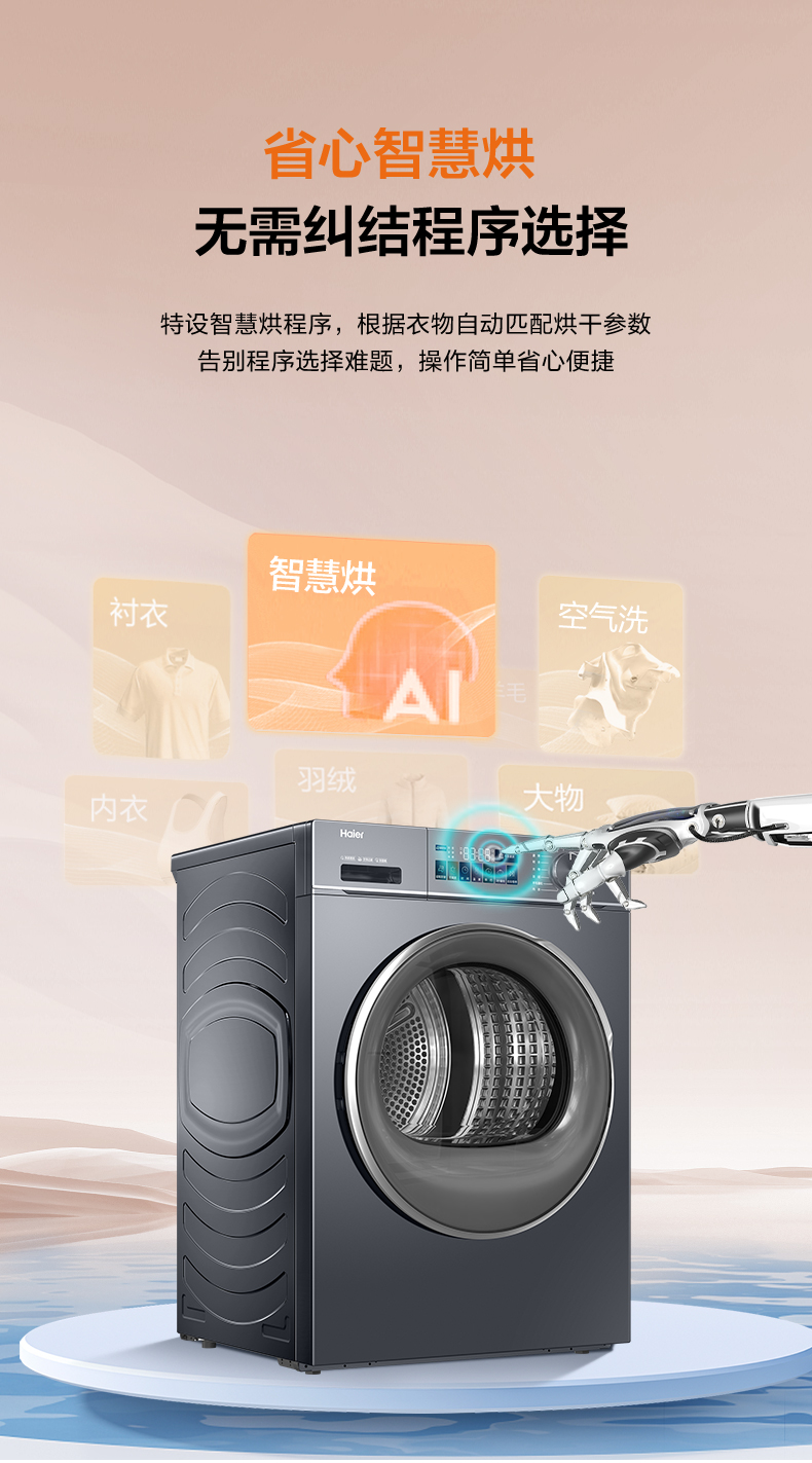 海尔洗烘一体洗衣机 智能全自动 10KG大容量滚筒 微蒸空气洗 智能柔烘洗护XQG100-HB106C