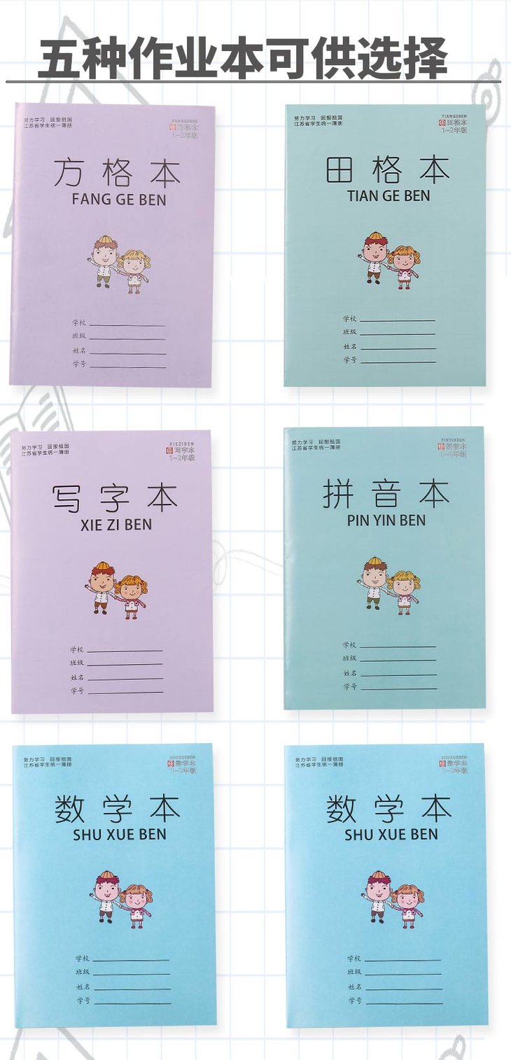 幼儿园、小学一二年级 拼音本 写字本 方格本 田字格本 数学本(共50本)