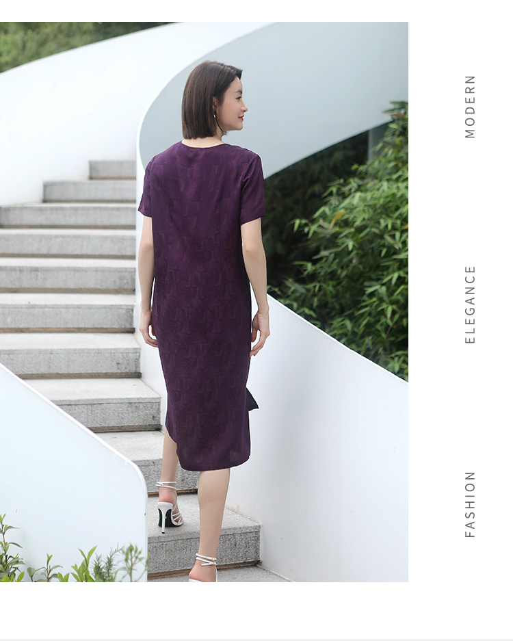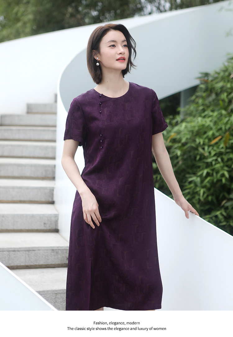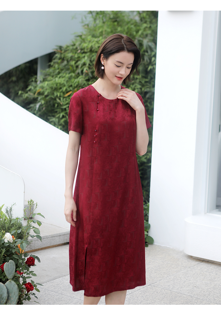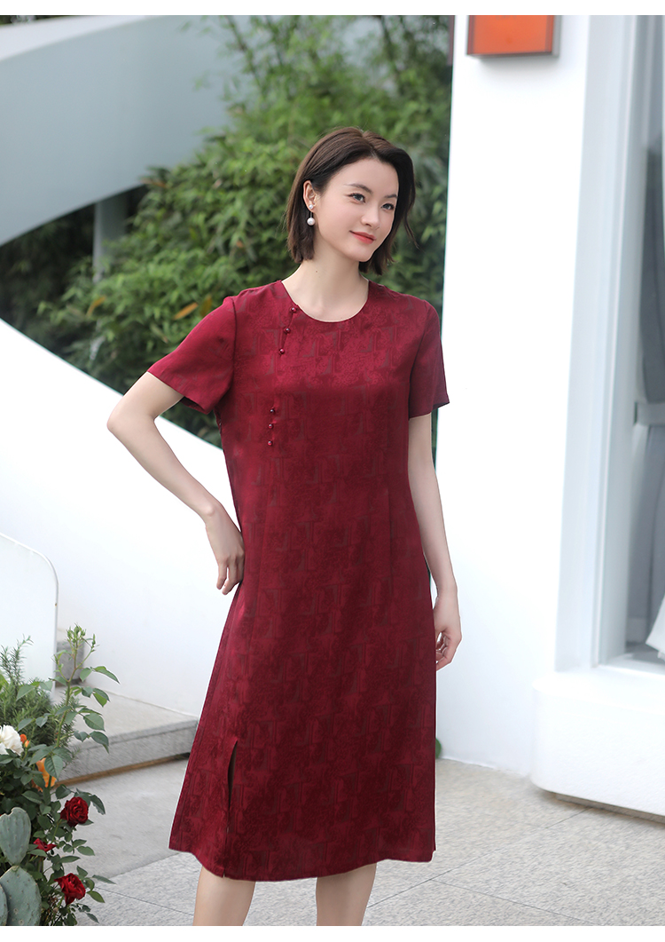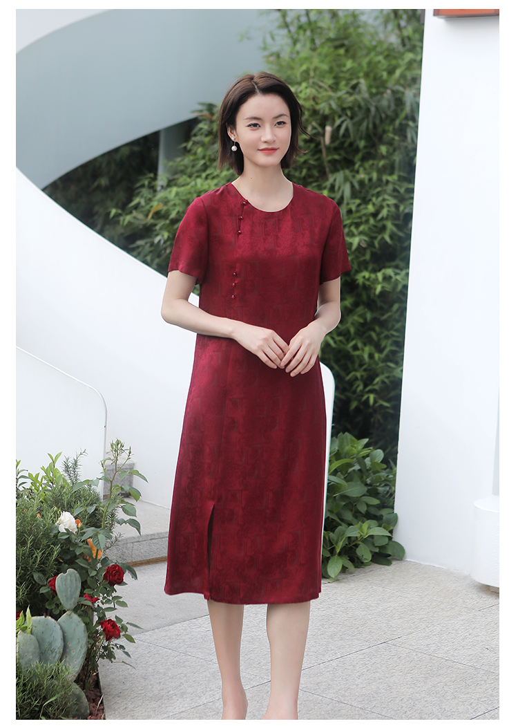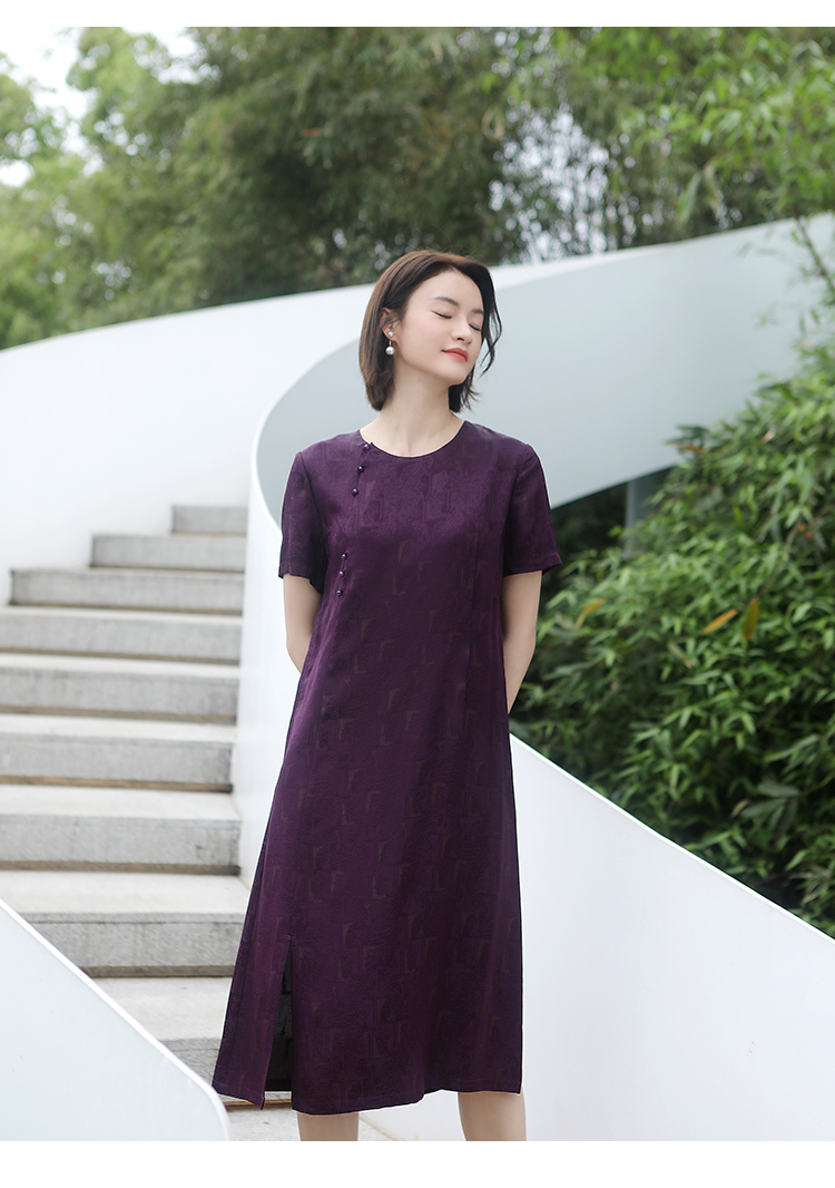 佐尔美夏季新款 国风优雅气质圆领桑蚕丝中长连衣裙女E32LS34