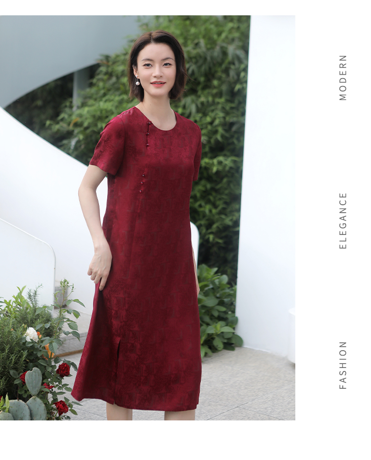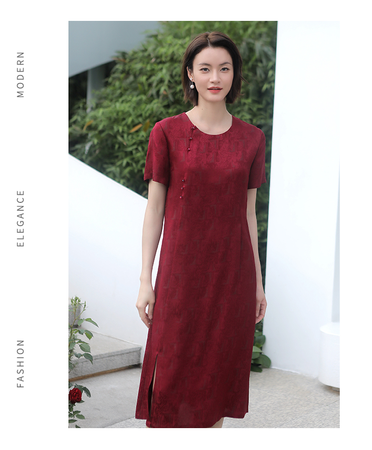 佐尔美新品春秋新品纯色修身中国风婚庆喜宴妈妈装连衣裙E73LL33