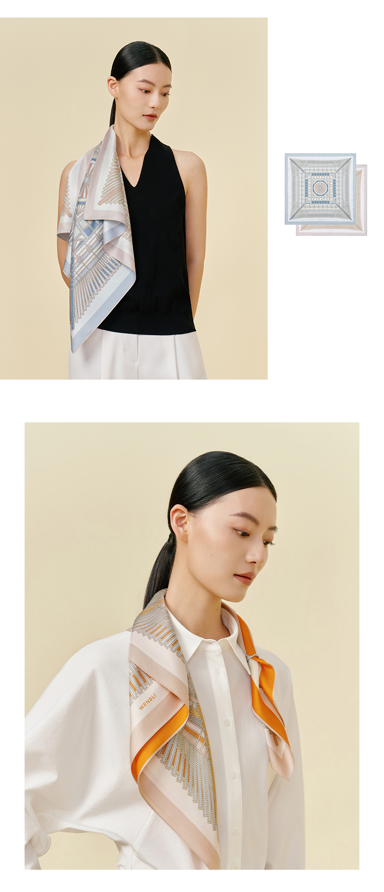 万事利双面印花中方巾-穹结