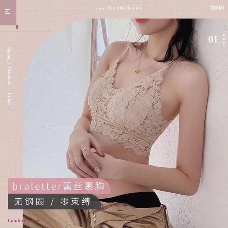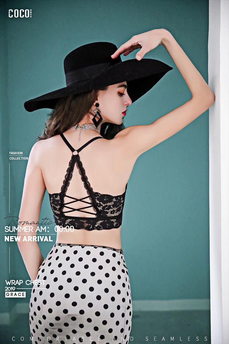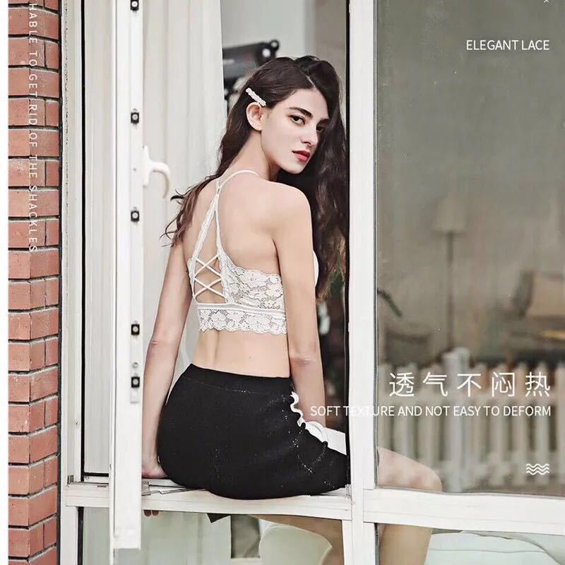 火爆朋友圈 无钢圈美背内衣女蕾丝性感聚拢裹胸少女网红爆款交叉吊带文胸