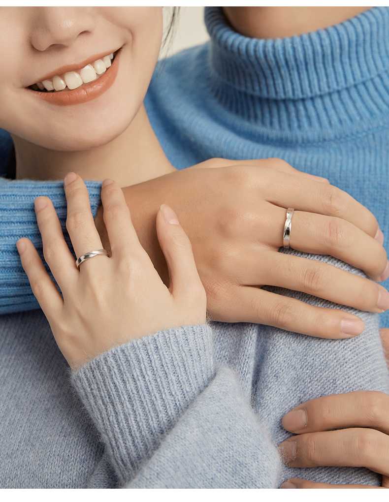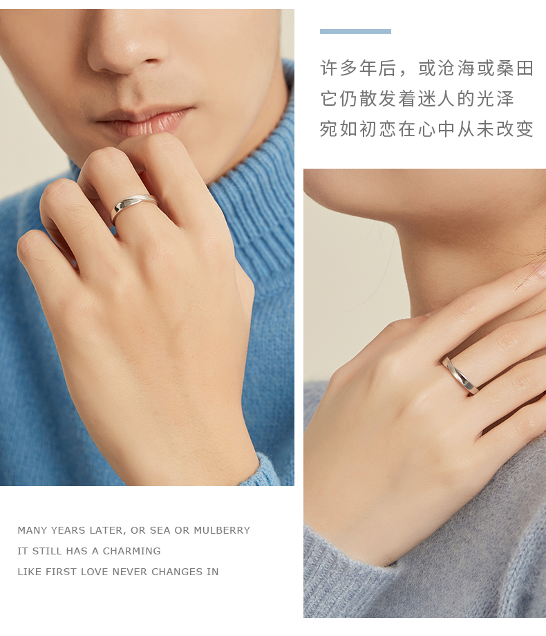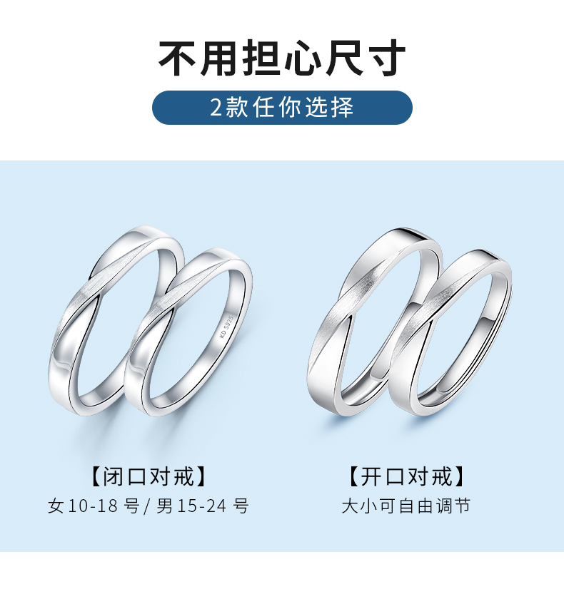 KADER情侣款对戒925银男女一对开口戒指素圈简约小众设计指环