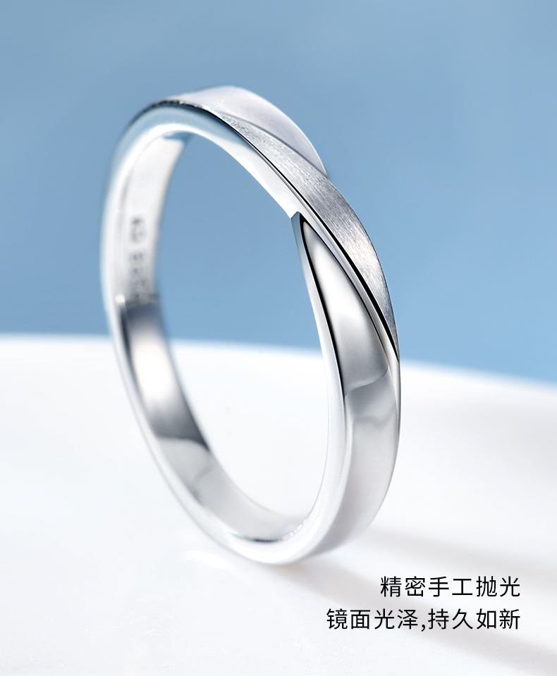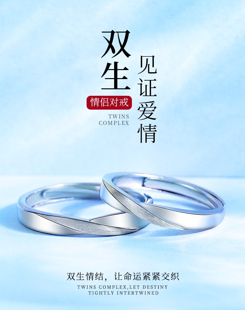卡蒂罗/KADER 【纯银999|爆闪莫桑钻】永恒之心情侣对戒 爱意交织镂空设计开口可调节素圈一对 钟爱久久求婚