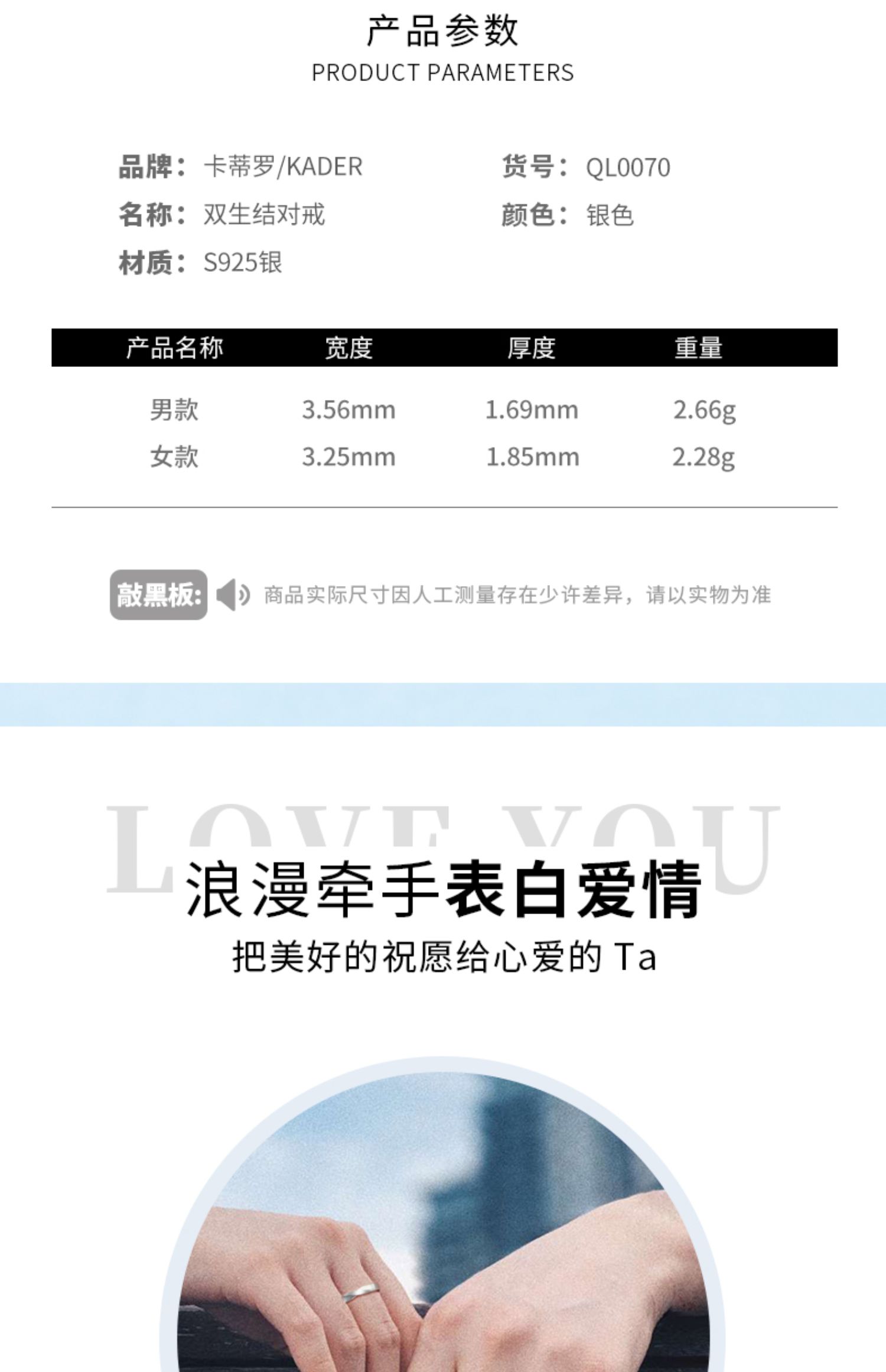 KADER卡蒂罗双生对戒情侣纯银一对刻字礼物送男友戒指女设计小众