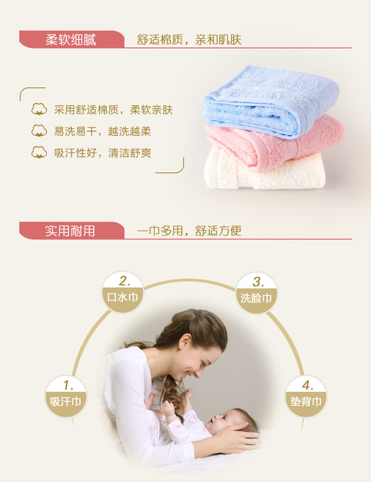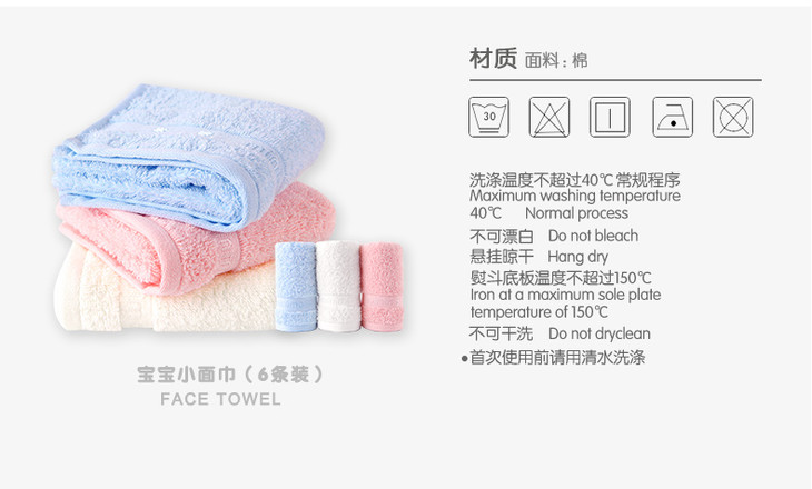 香港小米米宝宝洗脸毛巾面巾6条装50x25cm