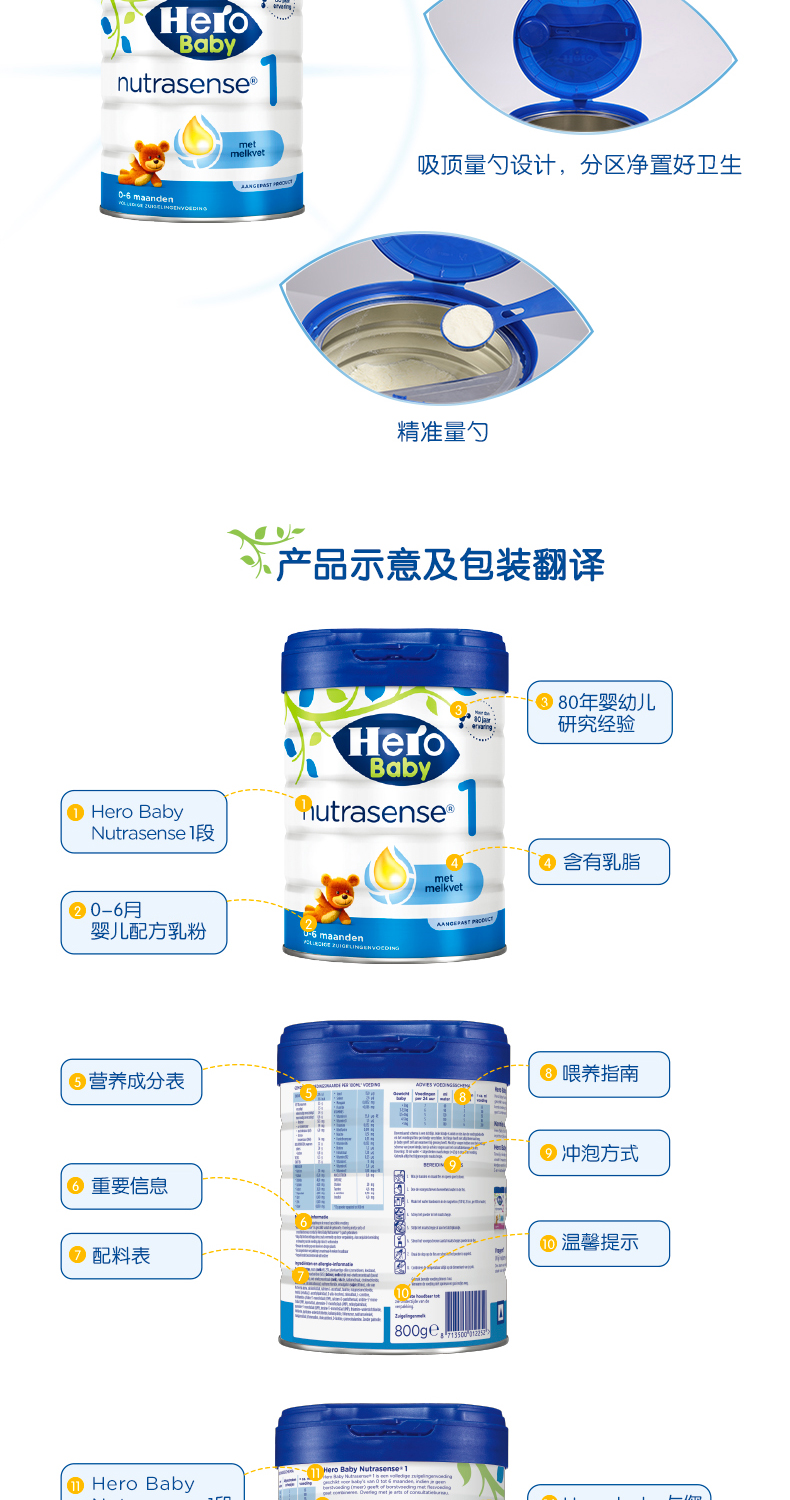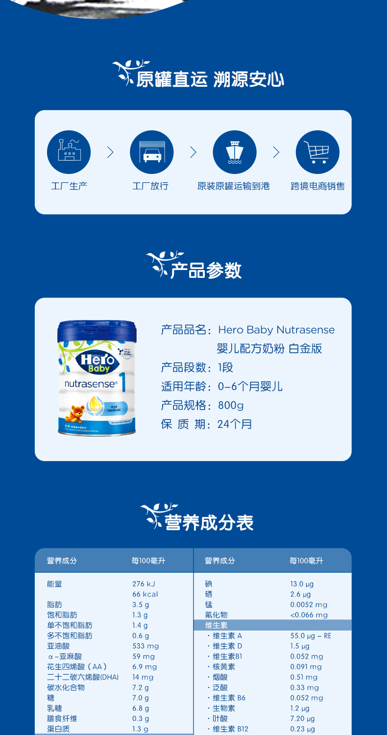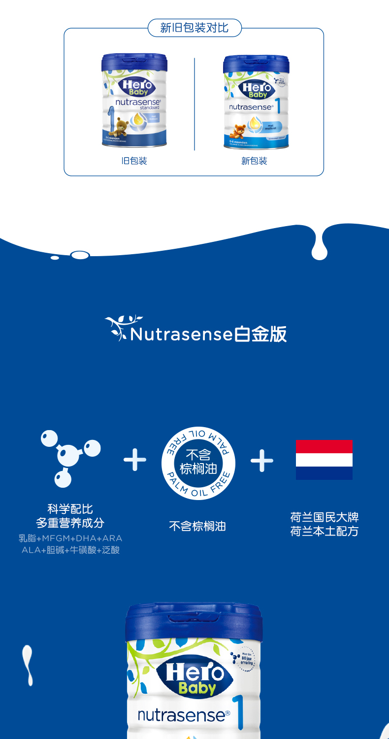 HNMG 荷兰美素Hero Baby白金版婴幼儿配方牛奶粉1段(0-6月)800g