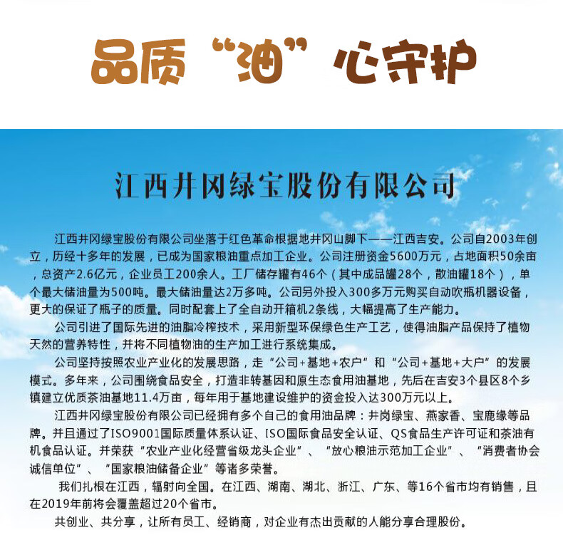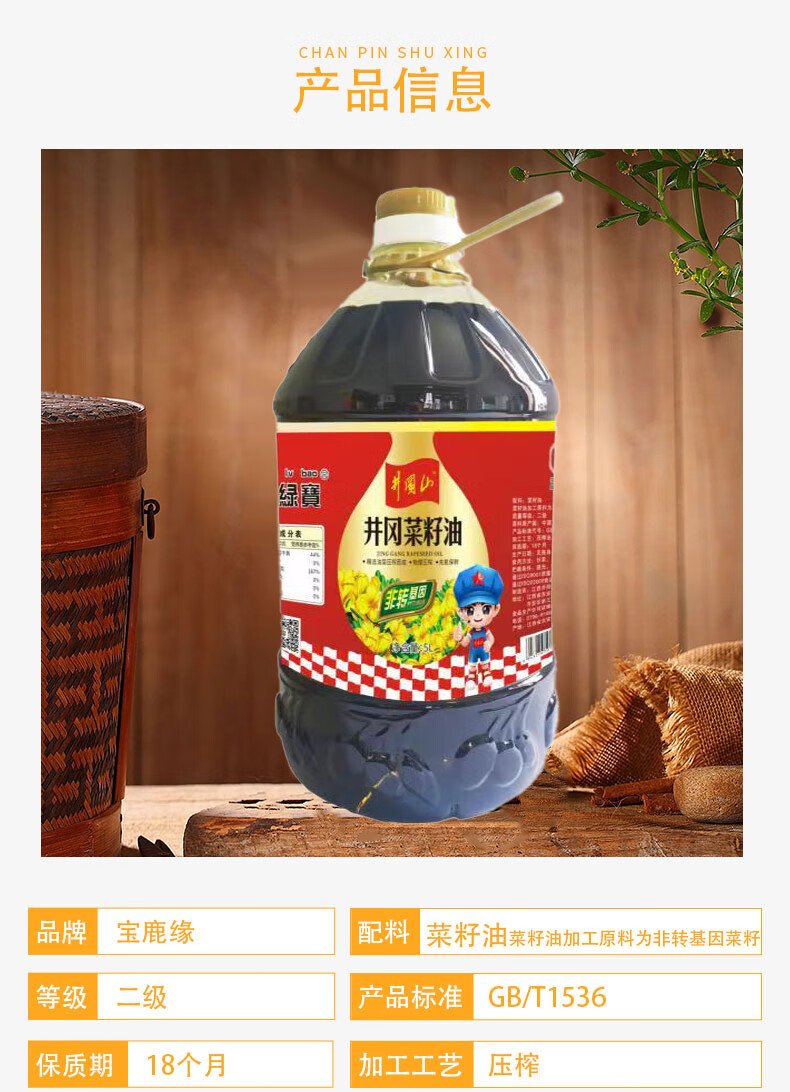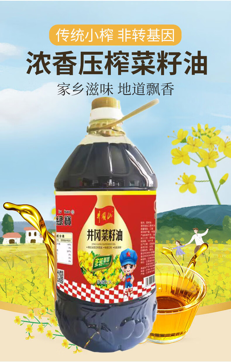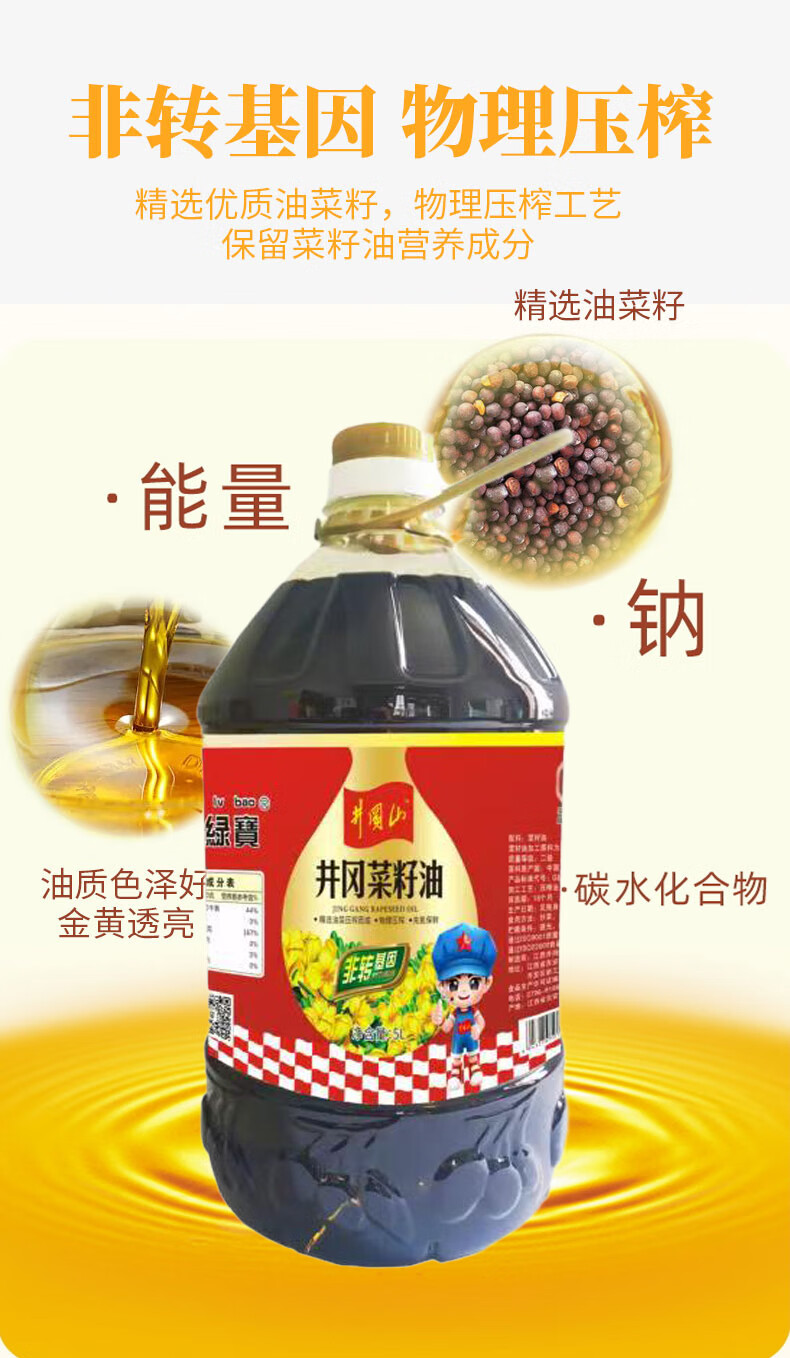 【两山优品】井冈绿宝5L浓香菜籽油非转压榨二级(圆瓶)